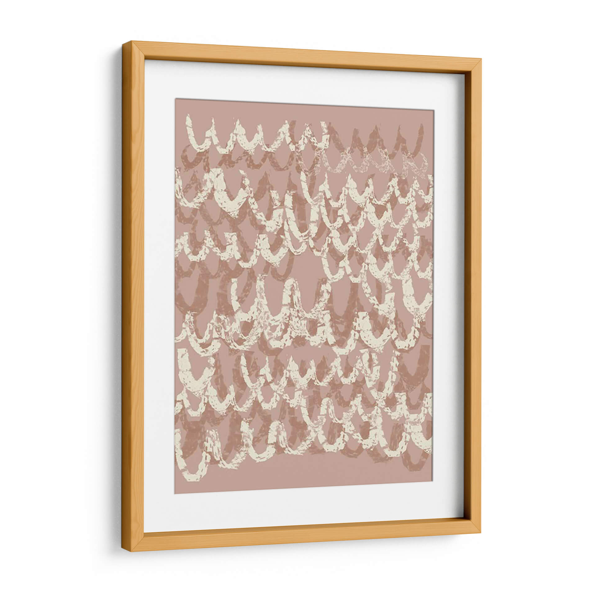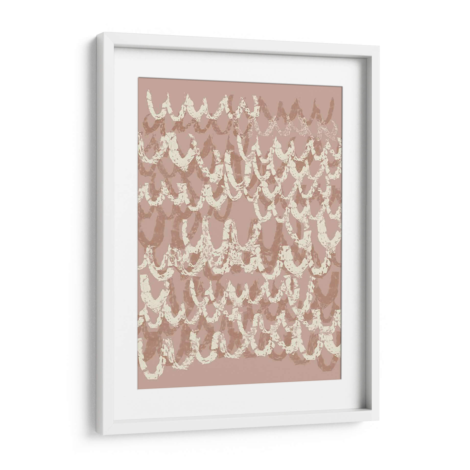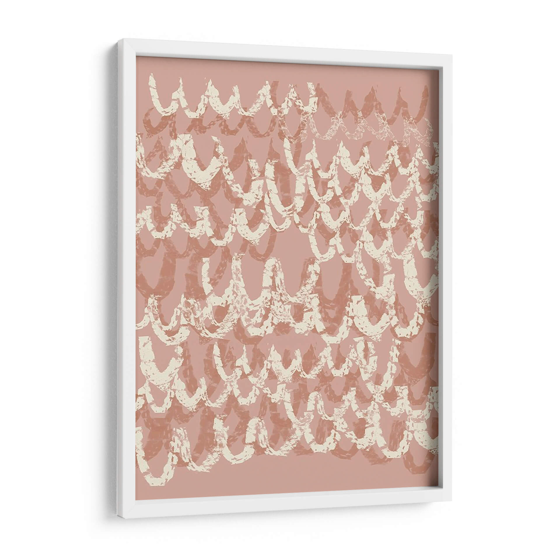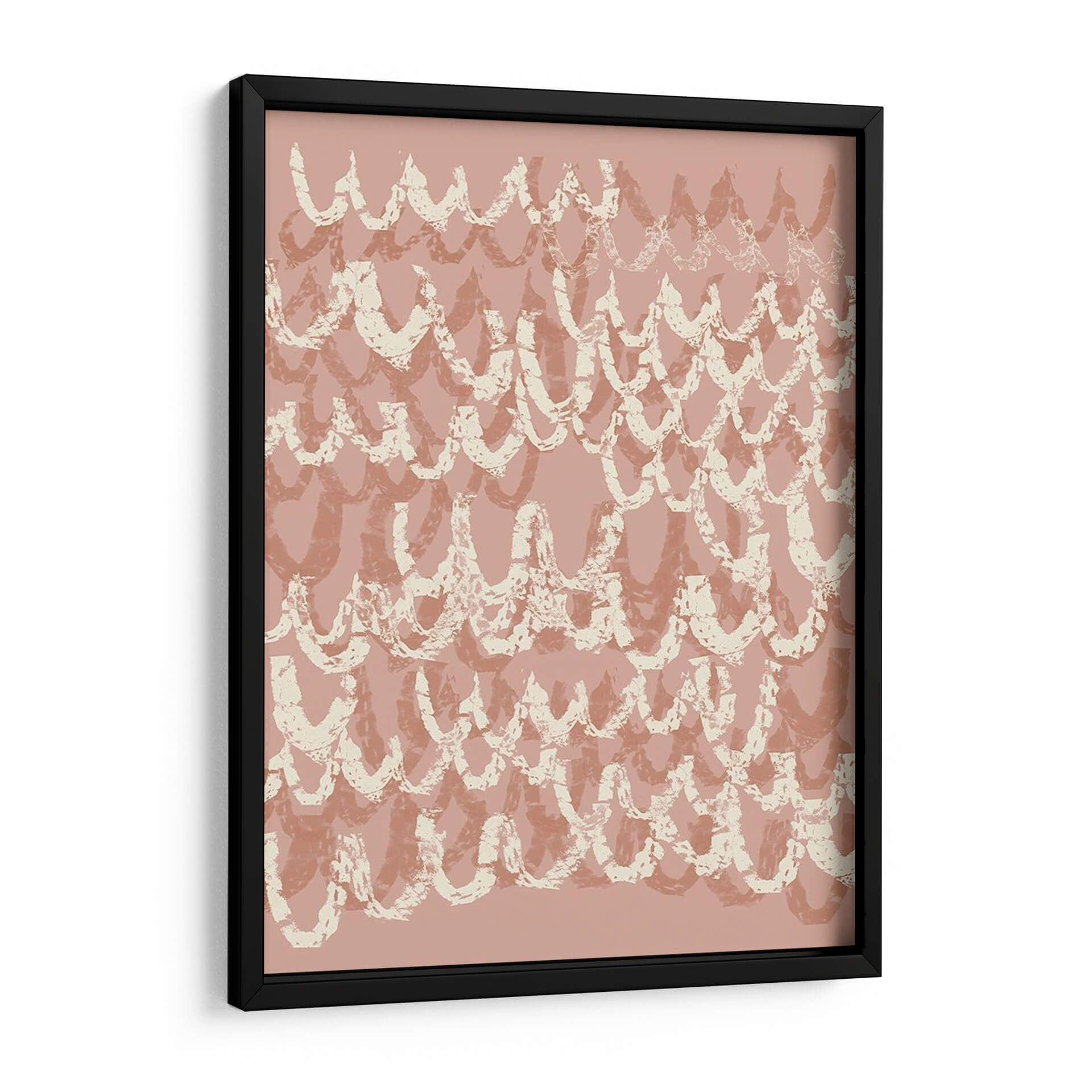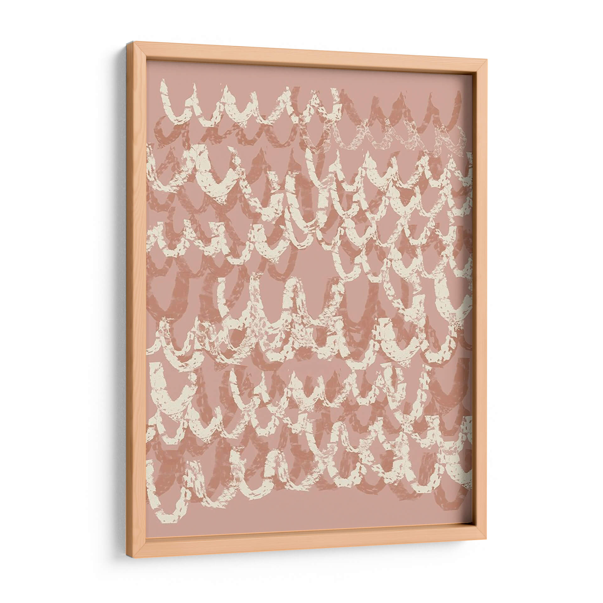 Sumérgete en la delicada belleza de "Iv Firaloped", una obra de arte contemporáneo de Jennifer Goldberger que evoca una sensación de calma y movimiento. Este cautivador cuadro decorativo presenta un patrón rítmico de formas curvas, reminiscentes de olas suaves o escamas estilizadas, superpuestas en tonos rosados y beige apagados. La técnica de pincelada, visible en sus bordes texturizados y su aplicación aparentemente espontánea, otorga a la pieza una profundidad y un carácter orgánico. Los colores tierra y pastel crean una atmósfera serena y acogedora, ideal para añadir un toque de elegancia sutil a cualquier espacio. "Iv Firaloped" es perfecto para aquellos que buscan una decoración de pared que combine un diseño moderno con una sensibilidad atemporal. Imagina este lienzo como el punto focal de tu sala de estar, aportando serenidad a tu dormitorio o infundiendo una vibra tranquila en tu oficina. Su composición abstracta y su paleta de colores suaves lo convierten en una adición versátil y sofisticada a cualquier esquema de diseño interior, invitando a la contemplación y al disfrute visual.