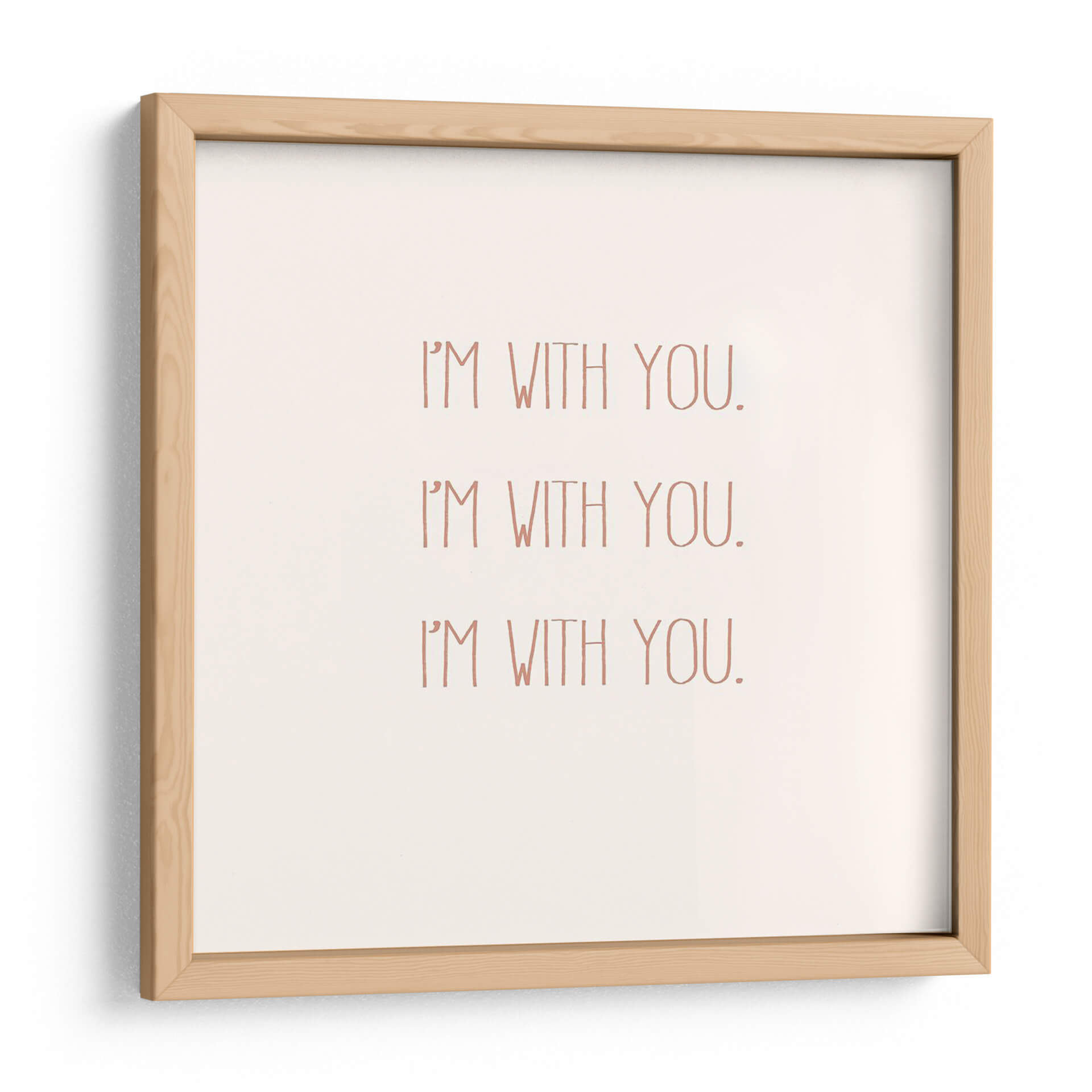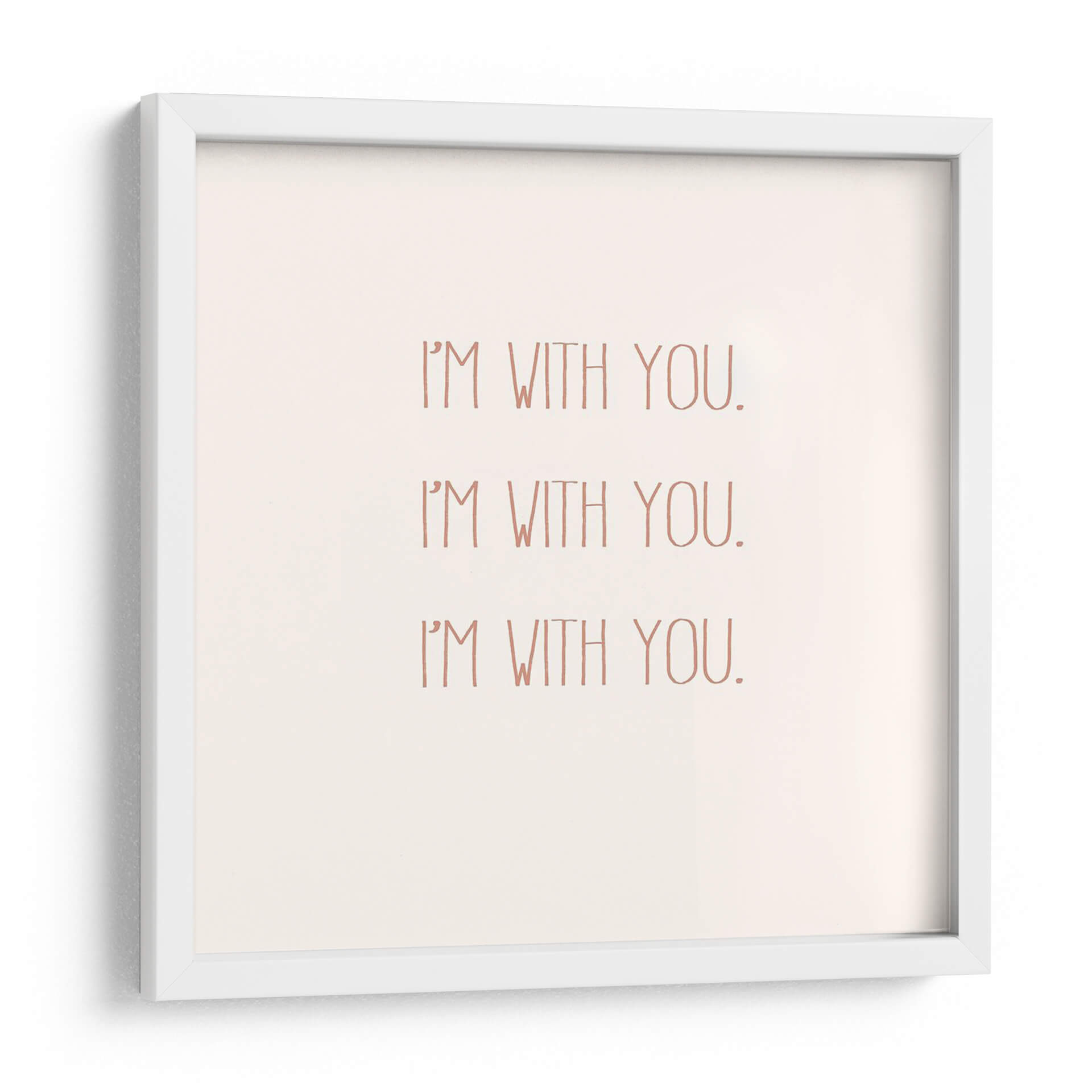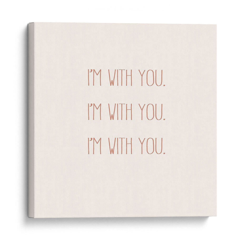 Aporta un mensaje de apoyo y conexión a tu espacio con este cautivador cuadro decorativo. La obra presenta la frase "I'M WITH YOU." repetida tres veces en una tipografía delicada y lineal, sobre un fondo texturizado de tono arena o beige claro. Los tonos suaves y terrosos, combinados con el color terracota o marrón rojizo del texto, crean una atmósfera de calidez, empatía y sencillez. Su diseño minimalista y repetitivo lo convierte en una pieza versátil, ideal para espacios que buscan transmitir un sentimiento de unidad, amistad o apoyo incondicional. Este cuadro es perfecto para añadir un toque reflexivo a tu sala de estar, un recordatorio reconfortante en tu oficina, o un gesto de cariño en un dormitorio. Su estética limpia y moderna se integra fácilmente con diversos estilos decorativos, desde el bohemio hasta el contemporáneo, aportando un punto focal sutil pero significativo. Transforma tu hogar en un santuario de apoyo mutuo y afecto con esta pieza única de arte de pared. Su diseño abstracto tipográfico invita a la contemplación y a la conexión humana.