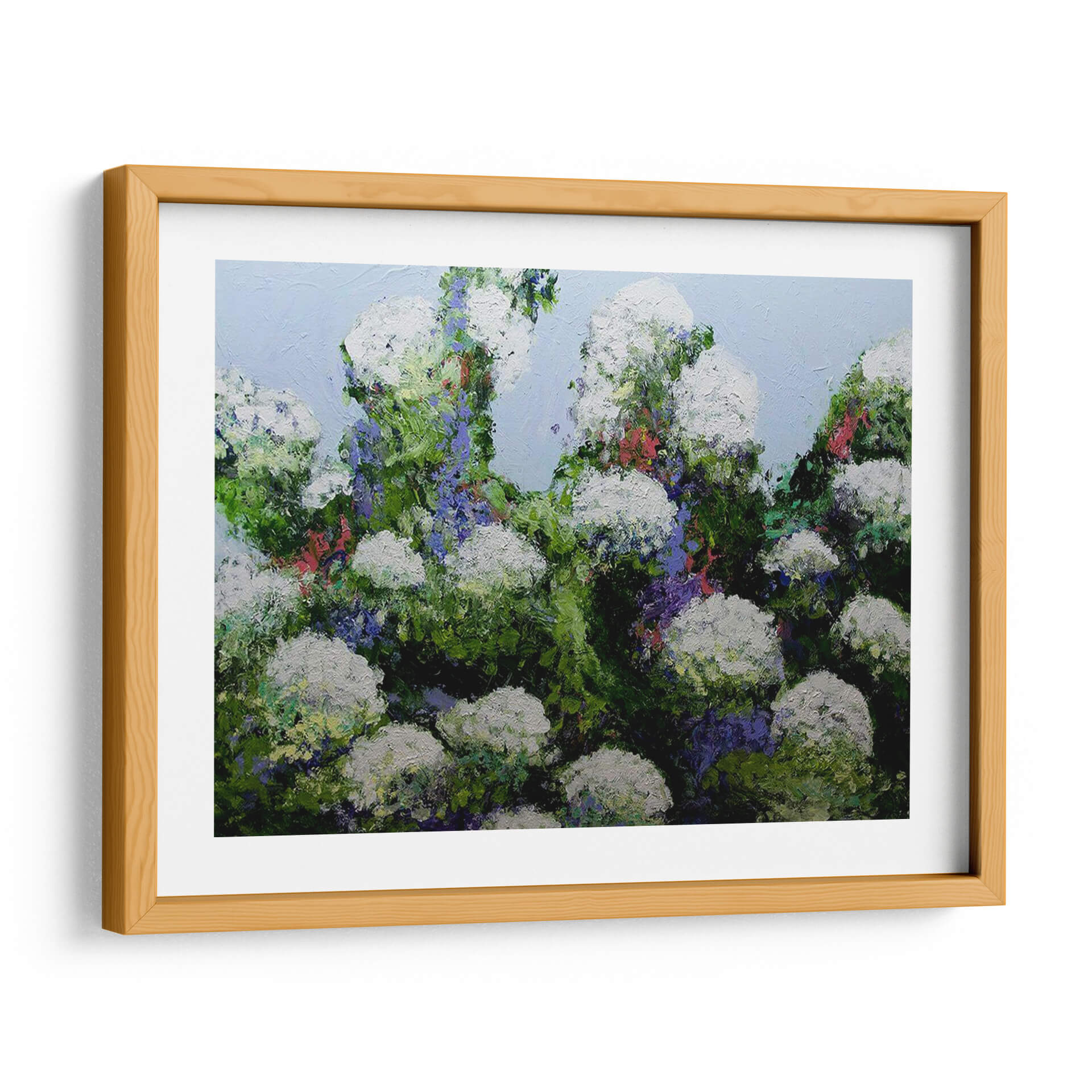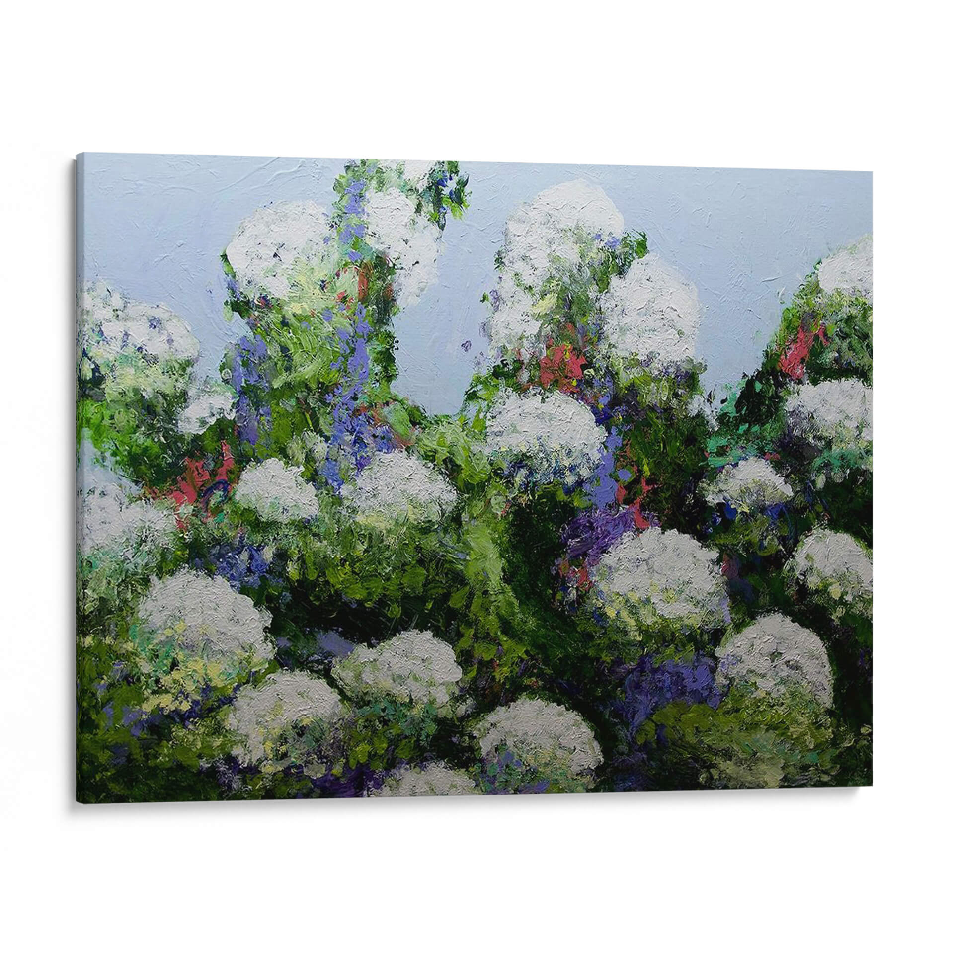 Sumérgete en la belleza de "Jardín de Mamá" de Allan Friedlander, una obra de arte que captura la esencia vibrante de la naturaleza con un estilo impresionista y texturizado. Este cuadro decorativo presenta una exuberante composición floral, donde densos racimos de flores blancas, salpicados con toques de púrpura y rosa, se entrelazan con follaje verde intenso y vibrante. El cielo de fondo, en un suave tono azul claro, proporciona un contraste sereno a la vitalidad terrenal de las flores. La pincelada audaz y empastada de Friedlander confiere una cualidad casi táctil a la obra, invitando al espectador a sentir la frescura del jardín. Es una pieza ideal para añadir un toque de alegría natural y color a cualquier espacio, desde una sala de estar luminosa hasta un tranquilo rincón de lectura. "Jardín de Mamá" no es solo una representación de flores, sino una invitación a experimentar la serenidad y la vitalidad que la naturaleza puede ofrecer, convirtiéndose en un punto focal inspirador en tu decoración.