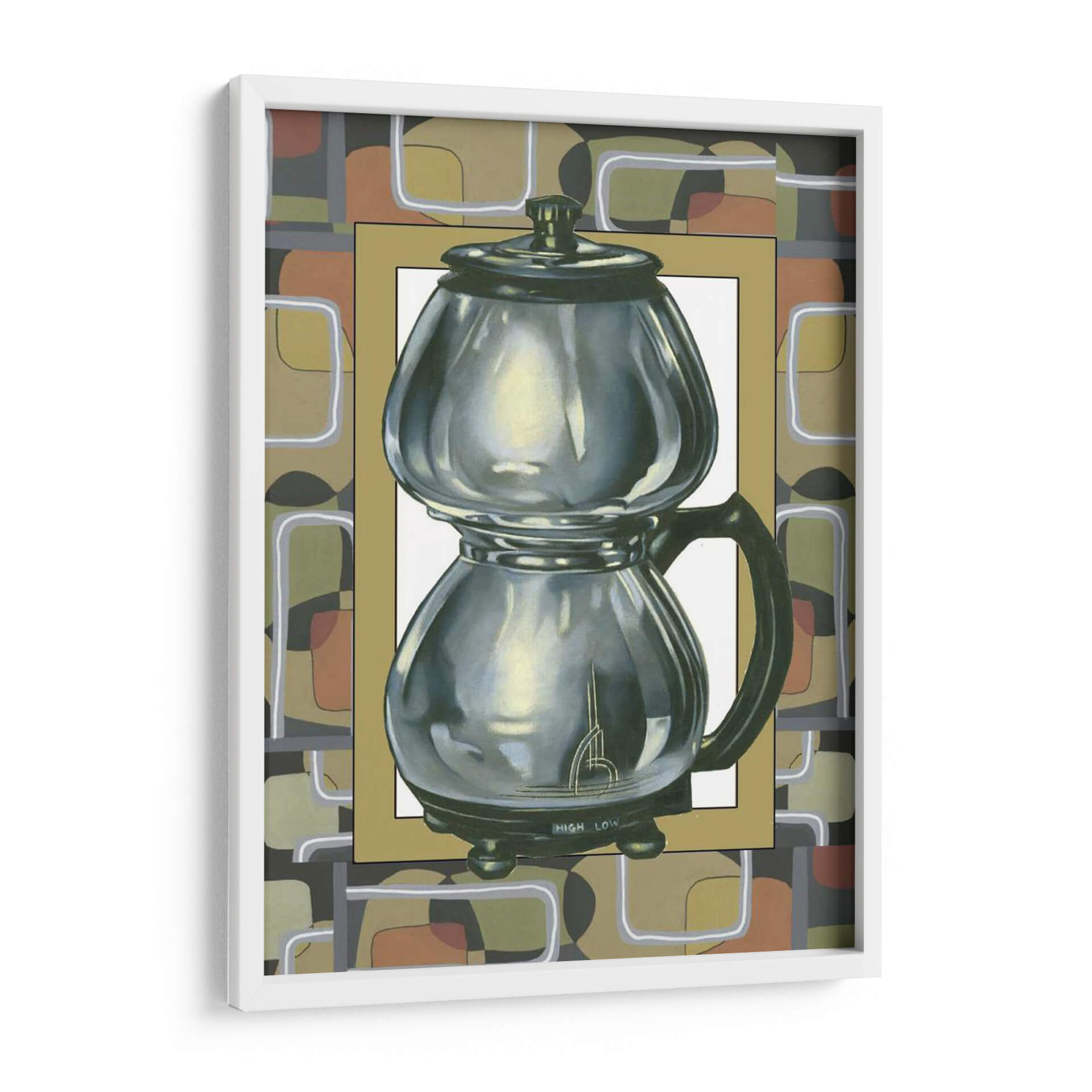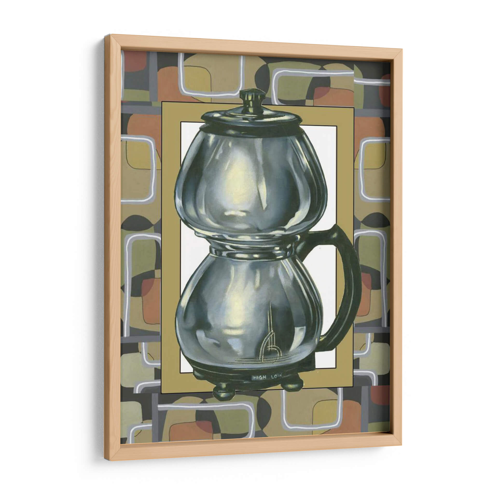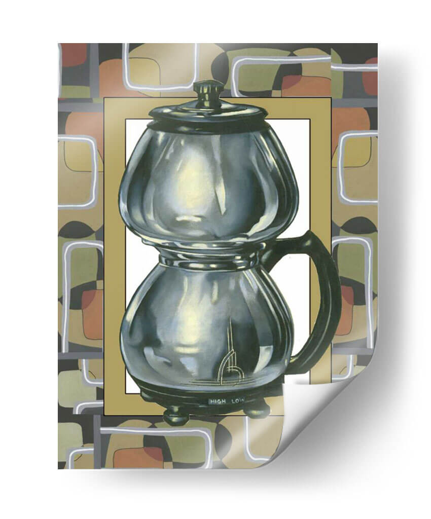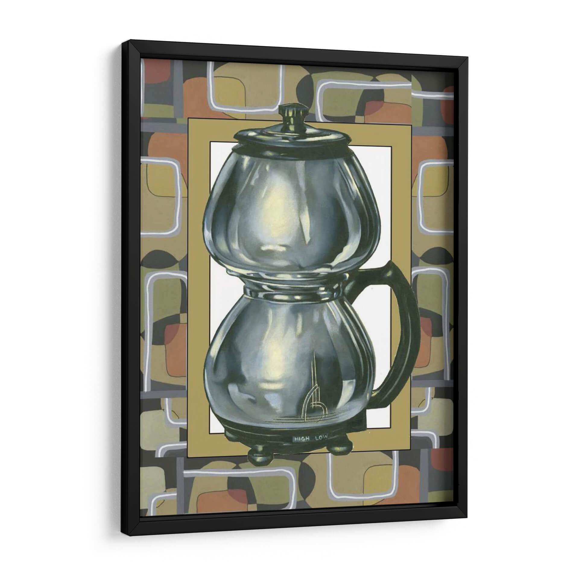 Transforma tu espacio con el encanto retro y la calidez del cuadro decorativo 'Junes Coffee Pot' de D. Bookman. Esta pieza evoca una atmósfera acogedora y nostálgica, perfecta para añadir un toque distintivo a tu cocina, comedor o cualquier rincón donde busques inspiración mañanera. La obra presenta una cafetera vintage estilizada, representada con un brillo metálico que capta la luz y la atención. Rodeada por un marco sutilmente texturizado y un fondo con un patrón geométrico abstracto en tonos tierra, ocres y verdes musgo, la composición crea una armonía visual que es a la vez elegante y llamativa. El estilo artístico, que fusiona realismo con toques de arte pop y un aire retro, invita a la contemplación y evoca recuerdos de momentos compartidos. Ideal para quienes aprecian el diseño clásico y buscan infundir carácter a su hogar u oficina, este cuadro decorativo es más que una simple imagen; es una invitación a disfrutar de la vida con un buen café y un estilo inconfundible. Añade esta pieza única a tu colección de arte de pared y dale a tu decoración un giro sofisticado y lleno de personalidad.