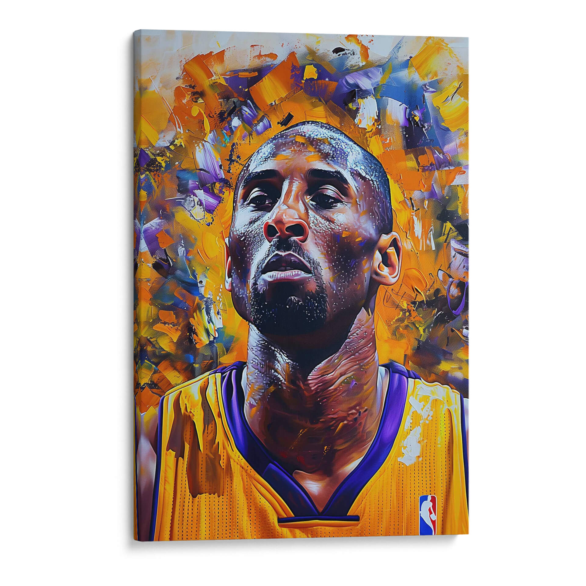 Captura la esencia de la leyenda con este impactante cuadro decorativo de Kobe Bryant, una obra de arte contemporáneo que evoca la intensidad y la determinación del icónico jugador de baloncesto. La pieza presenta un retrato audaz del "Black Mamba", con pinceladas expresivas y una paleta de colores vibrante que combina tonos cálidos de amarillo y naranja con toques de morado y azul, creando una atmósfera dinámica y llena de energía. El estilo artístico fusiona elementos realistas en el rostro del jugador con un fondo abstracto y texturizado, lo que añade profundidad y un toque moderno. Este cuadro decorativo es perfecto para cualquier aficionado al baloncesto o para quienes buscan una pieza de arte inspiradora y con carácter para su hogar u oficina. Imagina cómo este retrato de Kobe Bryant se convertiría en el punto focal de tu sala de estar, estudio o habitación, transmitiendo pasión, perseverancia y un legado imborrable. Una adición poderosa a tu colección de arte de pared que celebra el espíritu competitivo y el impacto cultural de una verdadera leyenda.