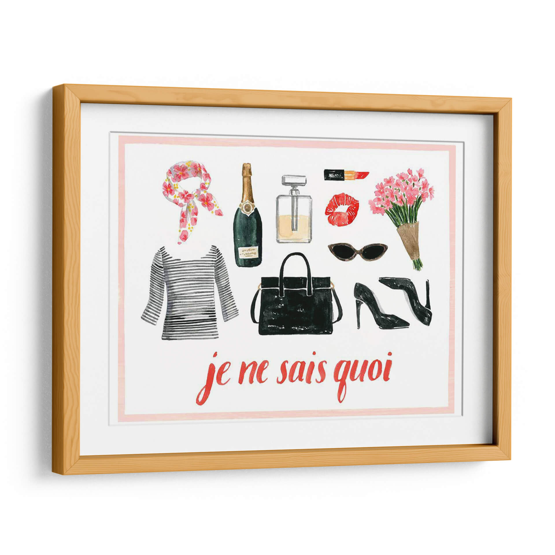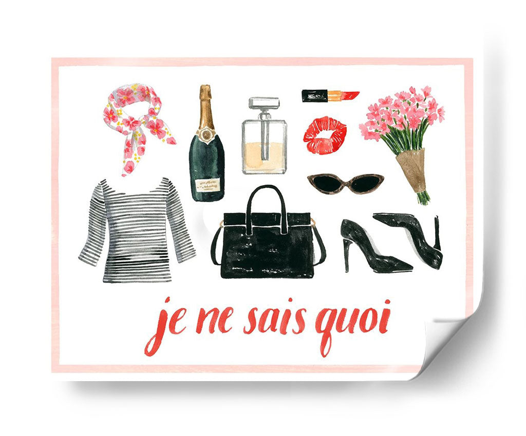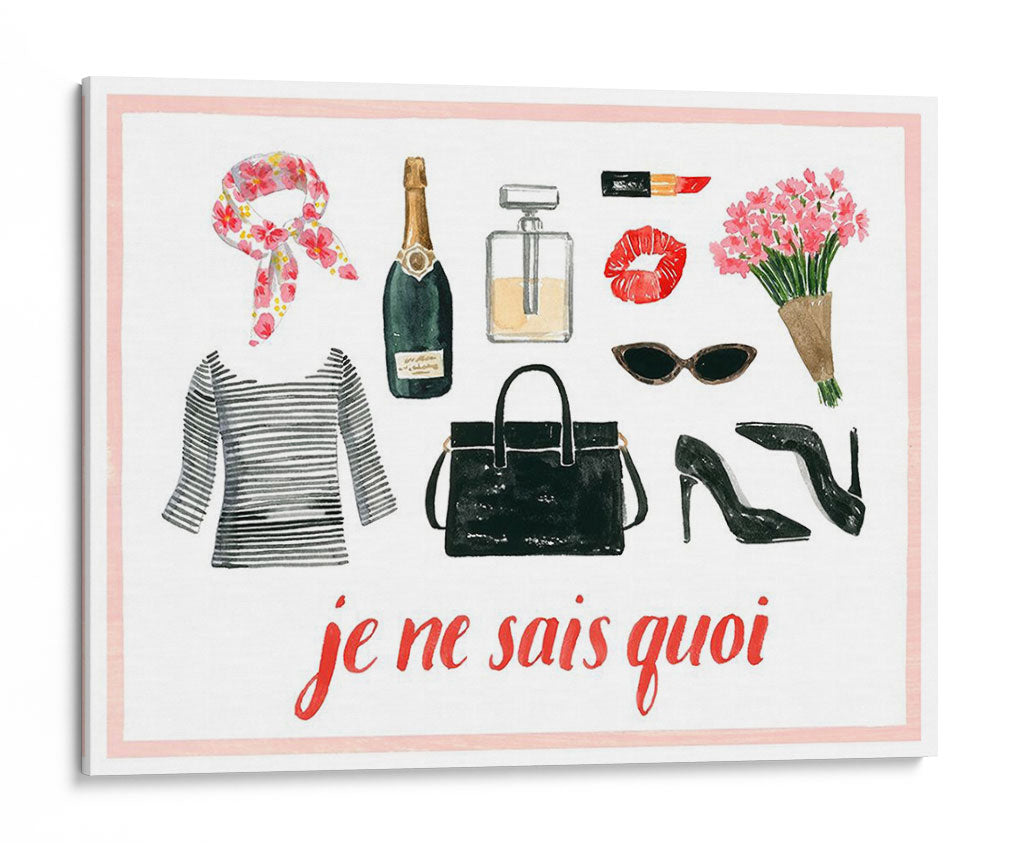 Descubre la esencia del chic parisino con "La Colección De Niña Francesa A" de Grace Popp, una obra de arte que captura la sofisticación y el estilo inconfundible de la moda francesa. Esta pieza, realizada con una delicada técnica de acuarela, presenta una cuidada selección de elementos icónicos: un frasco de perfume elegante, un labial rojo vibrante, unos labios sensuales, un ramo de flores frescas, unas gafas de sol chic, unos tacones de aguja y un bolso negro clásico. El fondo blanco, bordeado por un sutil marco rosa, realza la vivacidad de cada objeto, mientras que la icónica frase "je ne sais quoi" en caligrafía roja aporta un toque de misterio y encanto. Ideal para quienes buscan añadir un aire de glamour y personalidad a sus espacios, este cuadro decorativo es perfecto para salones modernos, vestidores o incluso como un toque inspirador en una oficina. Su composición detallada y su paleta de colores equilibrada, con acentos de rojo, verde botella, negro y toques florales, la convierten en una adición versátil y elegante a cualquier decoración. Sumérgete en el mundo del estilo francés con esta pieza única que evoca confianza y un savoir-faire inigualable. Añade un toque de arte que habla de buen gusto y un espíritu audaz a tu hogar.