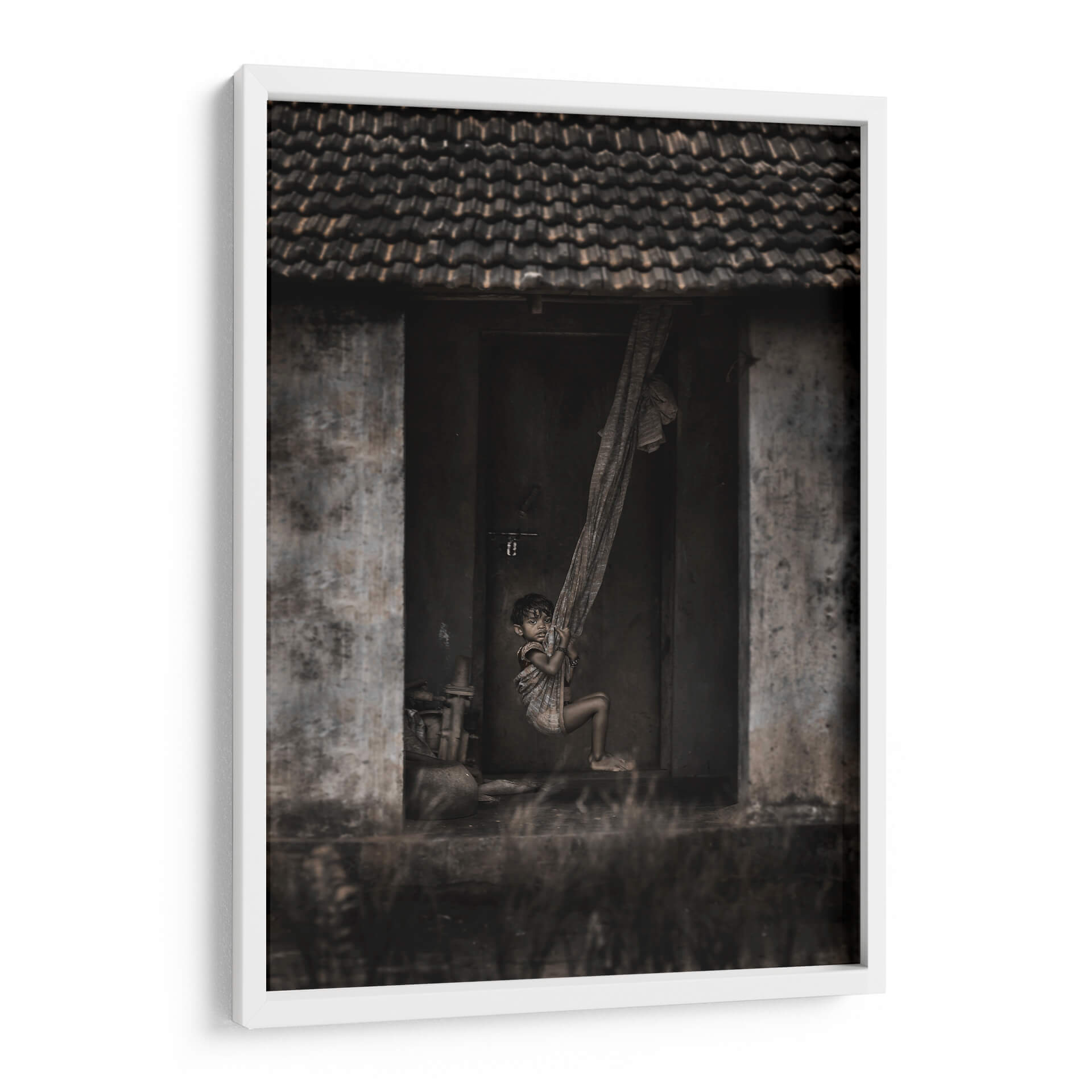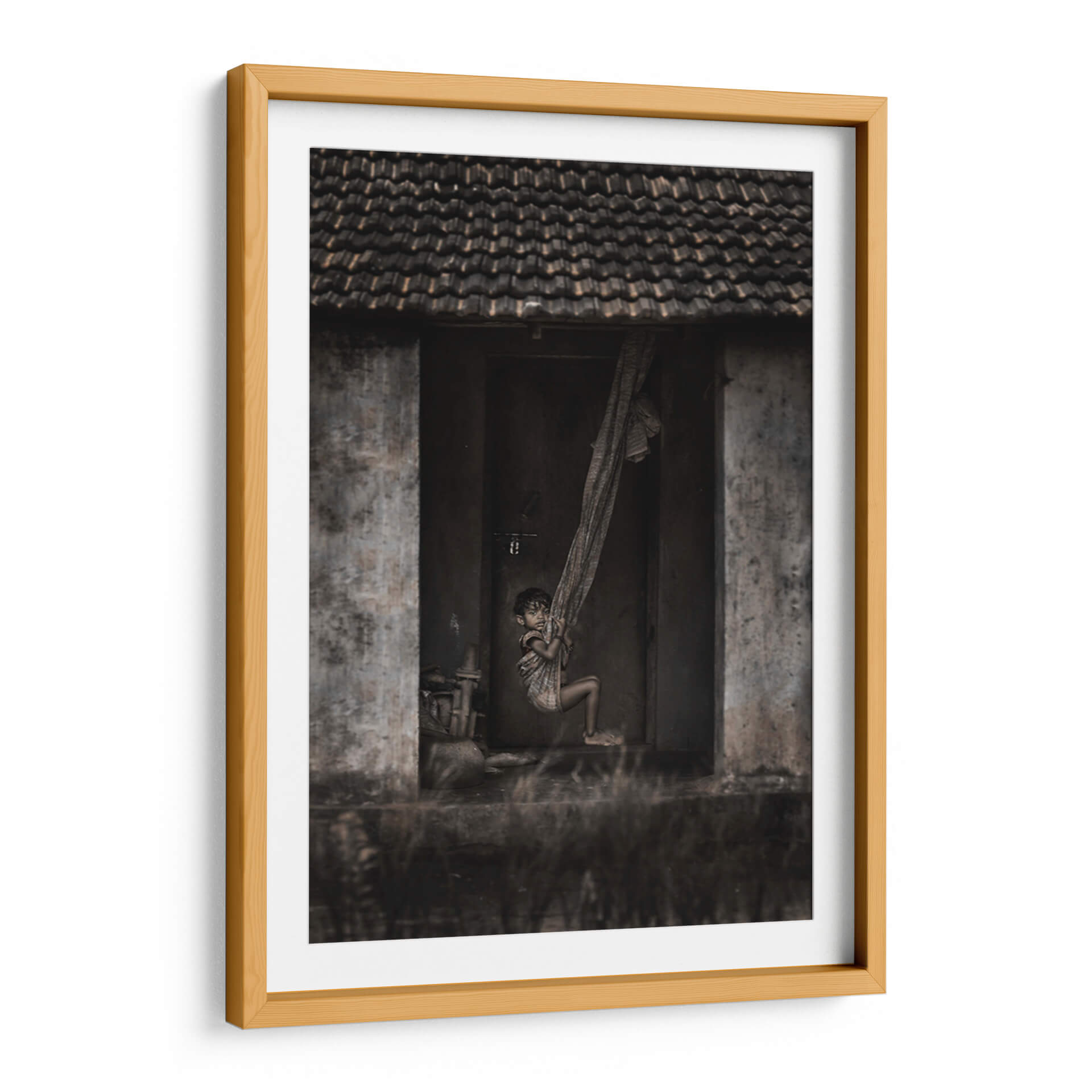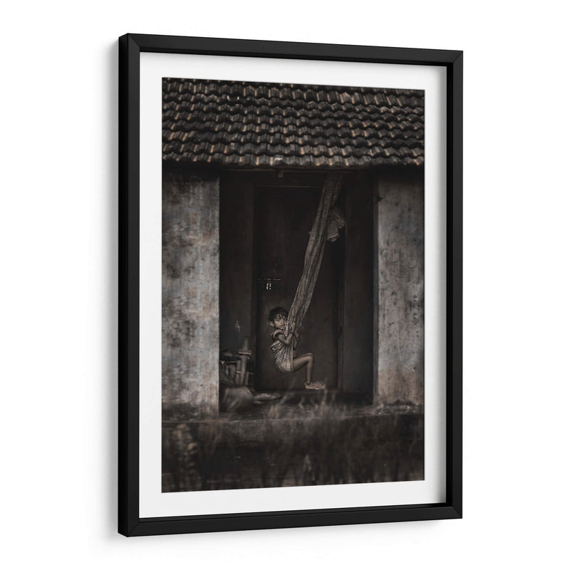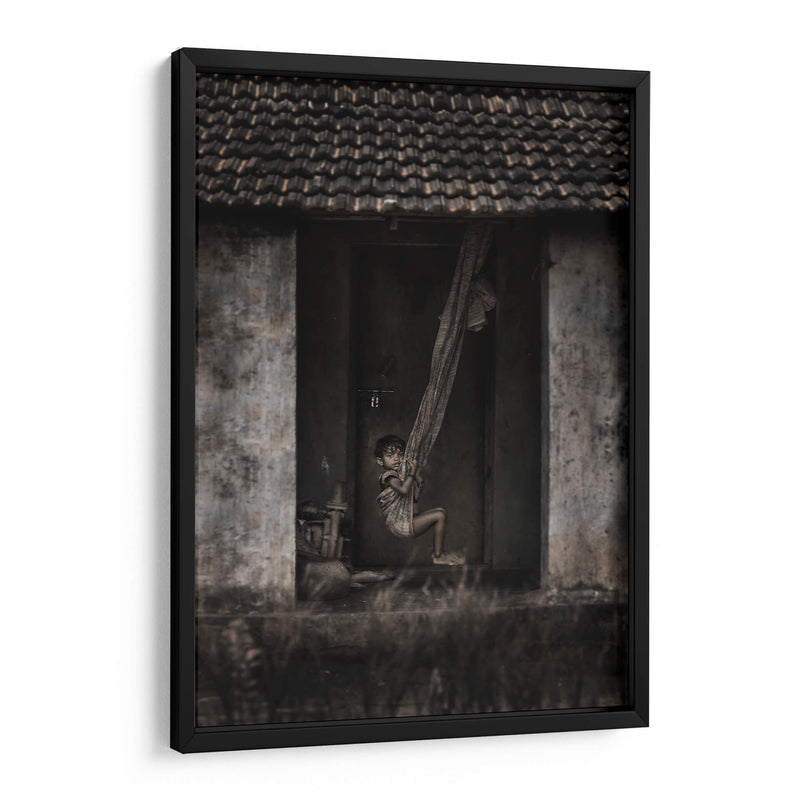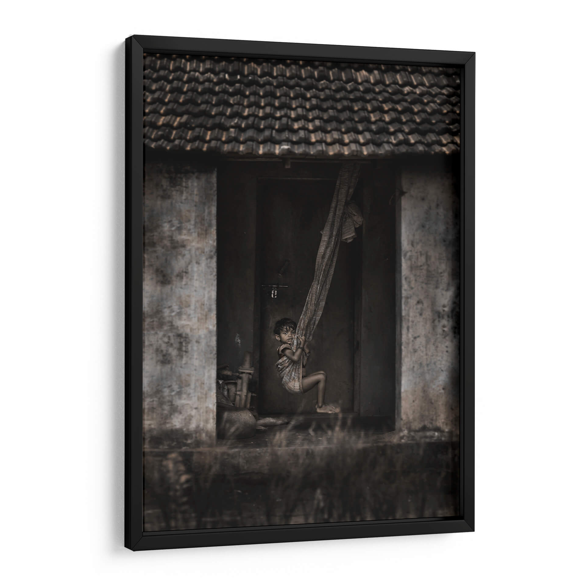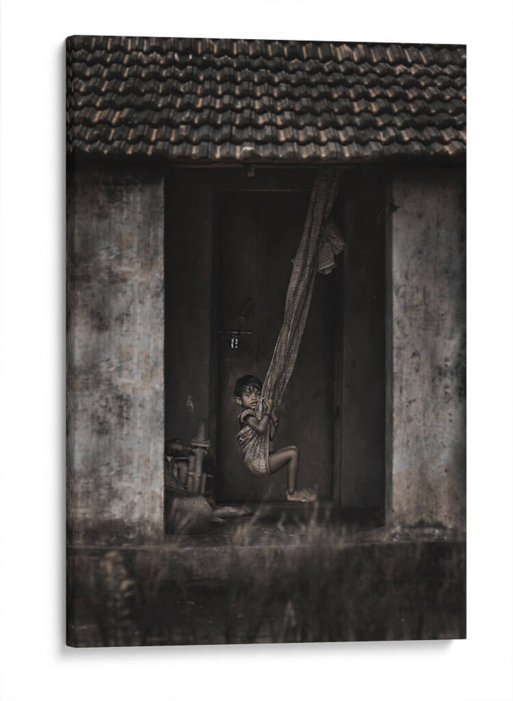 Adéntrate en la conmovedora escena de "La Mirada del Niño", una obra de arte que captura la inocencia y la contemplación en su máxima expresión. Esta pieza evoca una atmósfera de nostalgia y reflexión, presentando a un niño aferrado a una tela que cuelga, suspendido en un momento íntimo y silencioso. La paleta de colores, dominada por tonos oscuros y terrosos, junto con un contraste sutil, confiere a la imagen una profundidad dramática y un realismo crudo que invita a la introspección. La composición, centrada en la figura del niño y enmarcada por la arquitectura rústica, dirige la atención del espectador hacia la pureza de la expresión infantil. Este cuadro decorativo es ideal para aquellos que buscan infundir sus espacios con una narrativa visual poderosa y emotiva, perfecto para añadir un toque de profundidad y carácter a una sala de estar, un estudio o incluso un rincón de lectura. "La Mirada del Niño" no es solo una decoración, es una invitación a conectar con la esencia de la infancia y la belleza de los momentos efímeros, transformando cualquier ambiente en un santuario de reflexión y calidez.