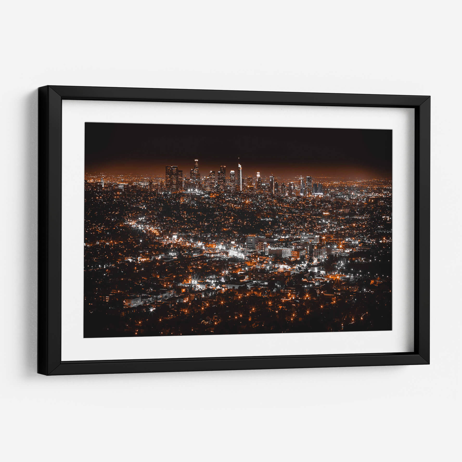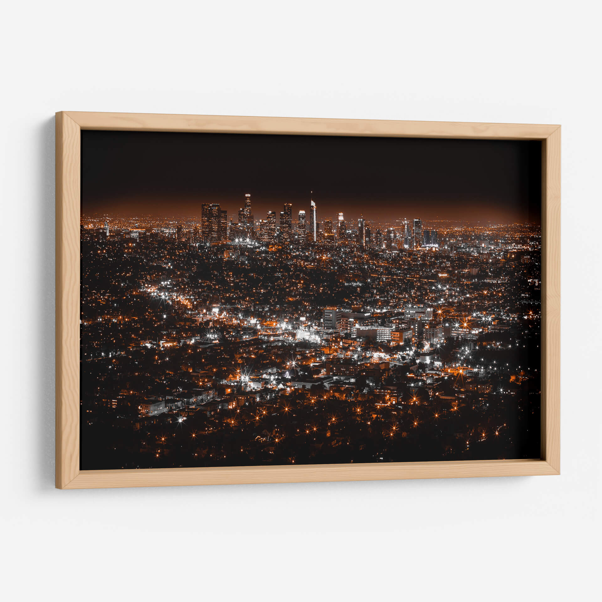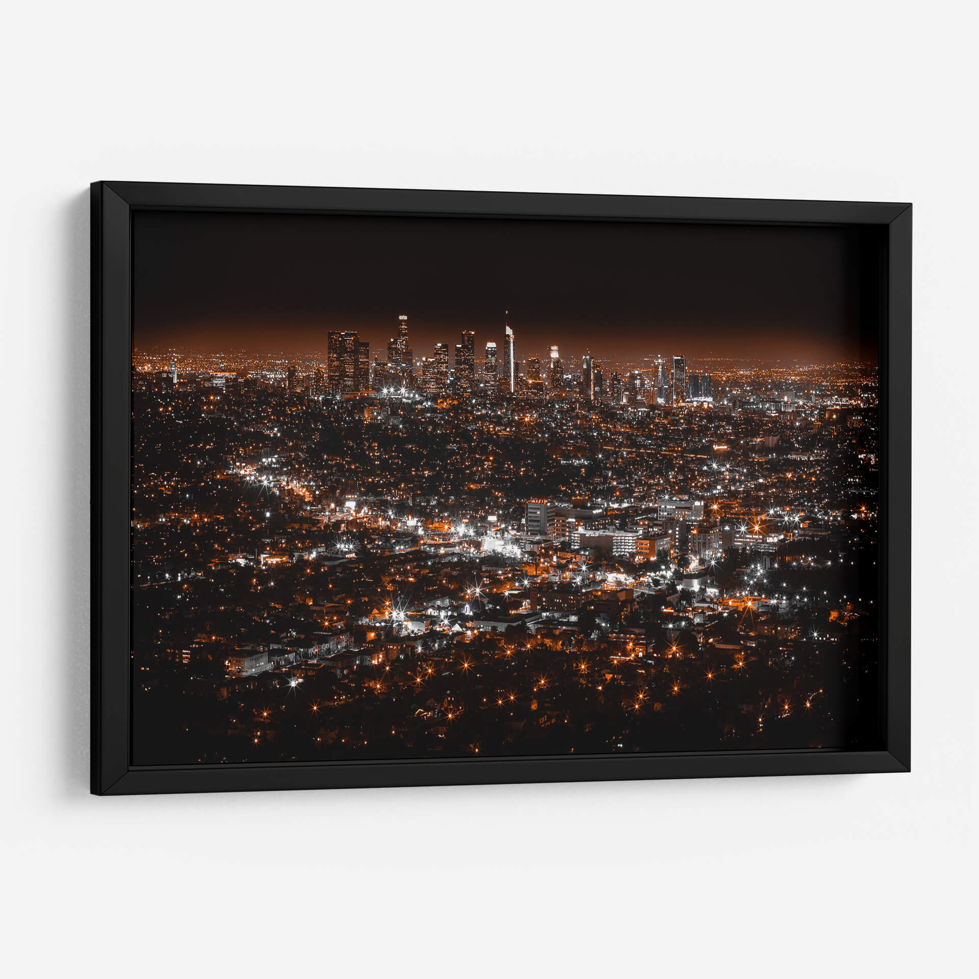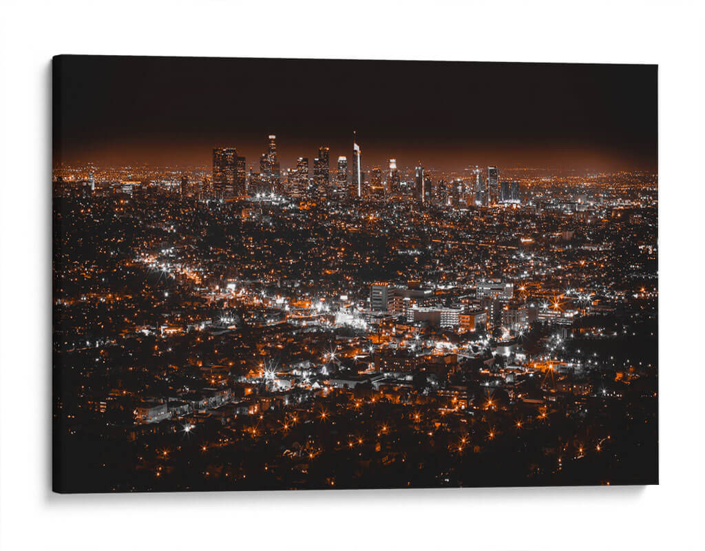 Captura la vibrante energía de la ciudad con este impresionante cuadro decorativo "La noche de Los Ángeles". Esta obra visualmente cautivadora transporta al espectador a una vista panorámica de la metrópolis iluminada, donde un mar de luces parpadeantes se extiende hasta el horizonte. La paleta de colores, dominada por profundos tonos oscuros contrastados con el brillo anaranjado y blanco de las luces urbanas, crea una atmósfera de misterio y dinamismo. Las siluetas de los rascacielos emergen majestuosamente contra el cielo nocturno, ofreciendo un espectáculo visual inolvidable. El estilo fotográfico, con un enfoque en la captura de la esencia nocturna de la ciudad, permite apreciar la complejidad y la escala de Los Ángeles. Este cuadro decorativo es ideal para aquellos que buscan añadir un toque de sofisticación urbana y un punto focal intrigante a su sala de estar, oficina o cualquier espacio que desee ser revitalizado con la magia de la noche. Su composición detallada y la atmósfera envolvente invitan a la contemplación, haciendo de esta pieza una adición perfecta para los amantes de las vistas urbanas y el arte contemporáneo. Transforme su hogar en una galería moderna con esta evocadora representación de "La noche de Los Ángeles".