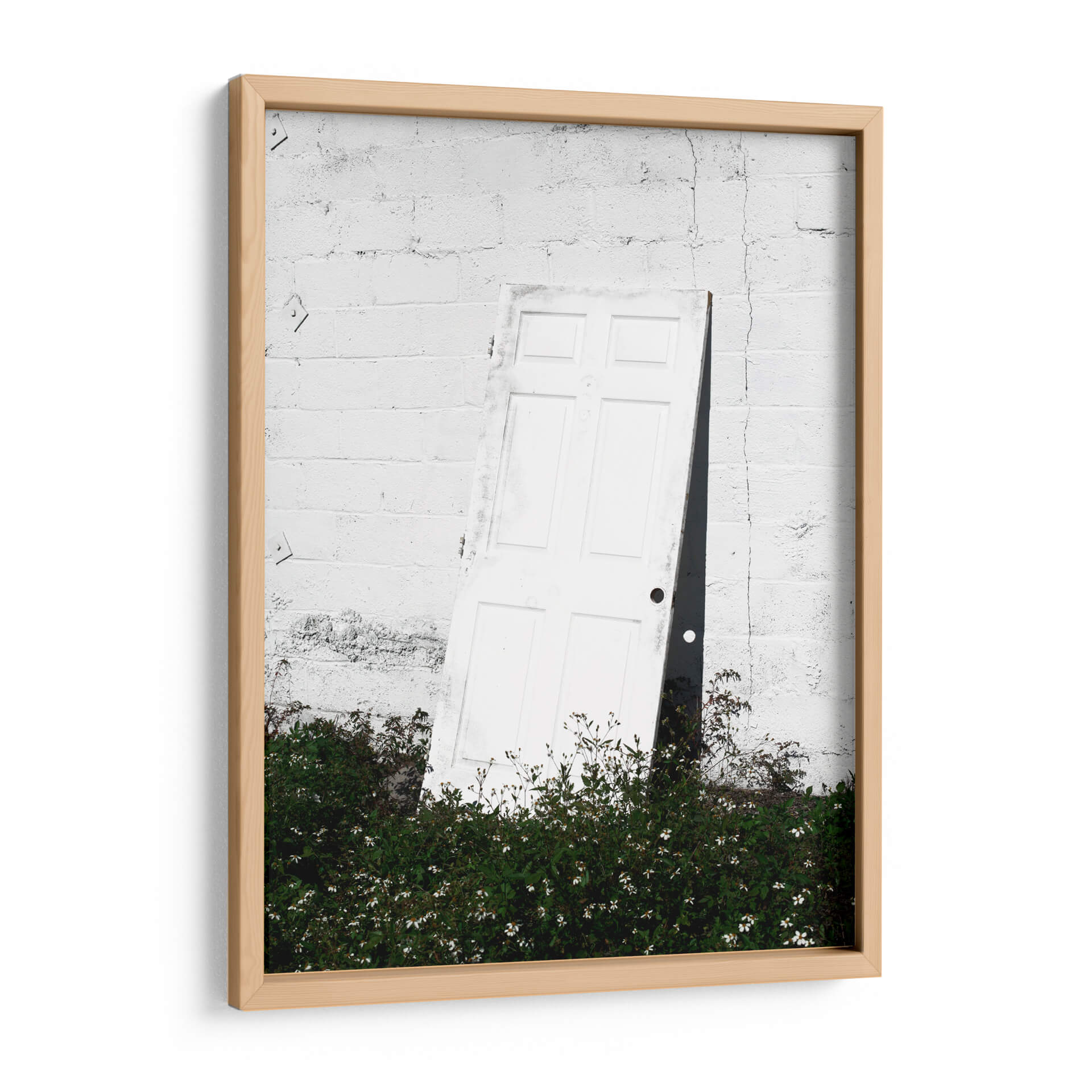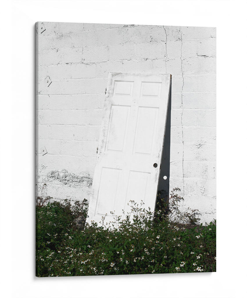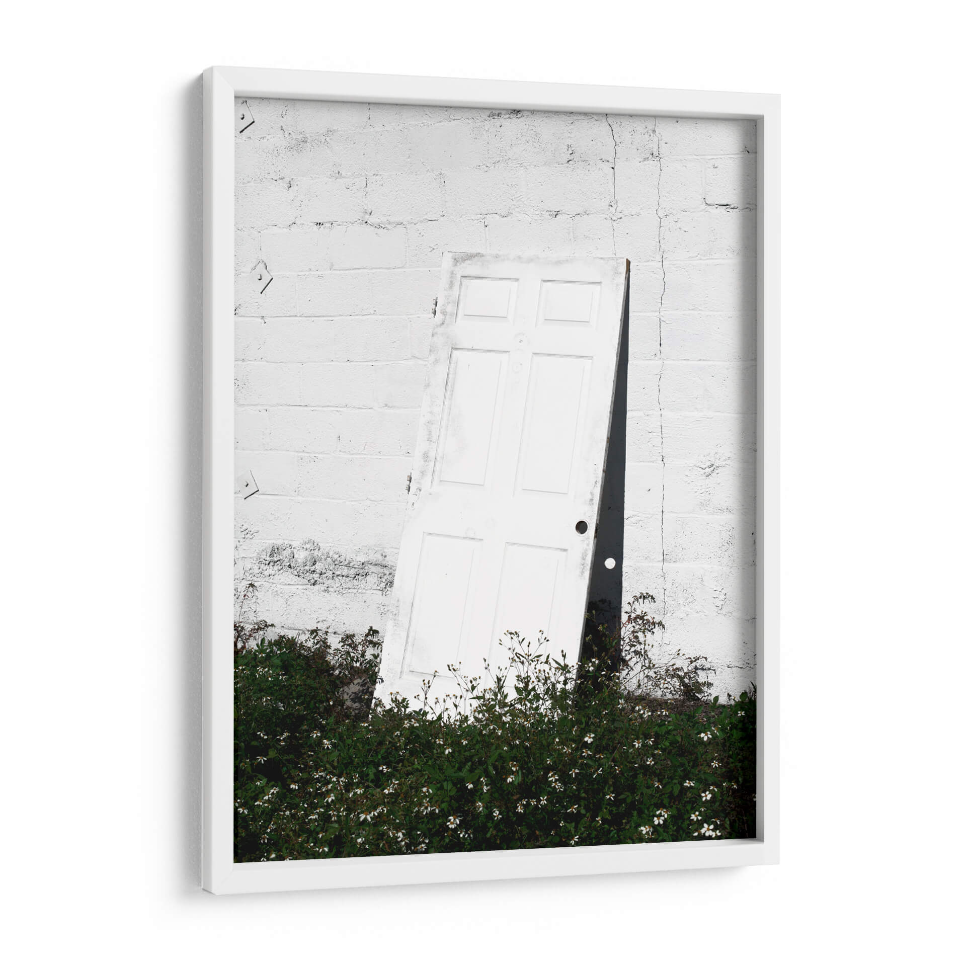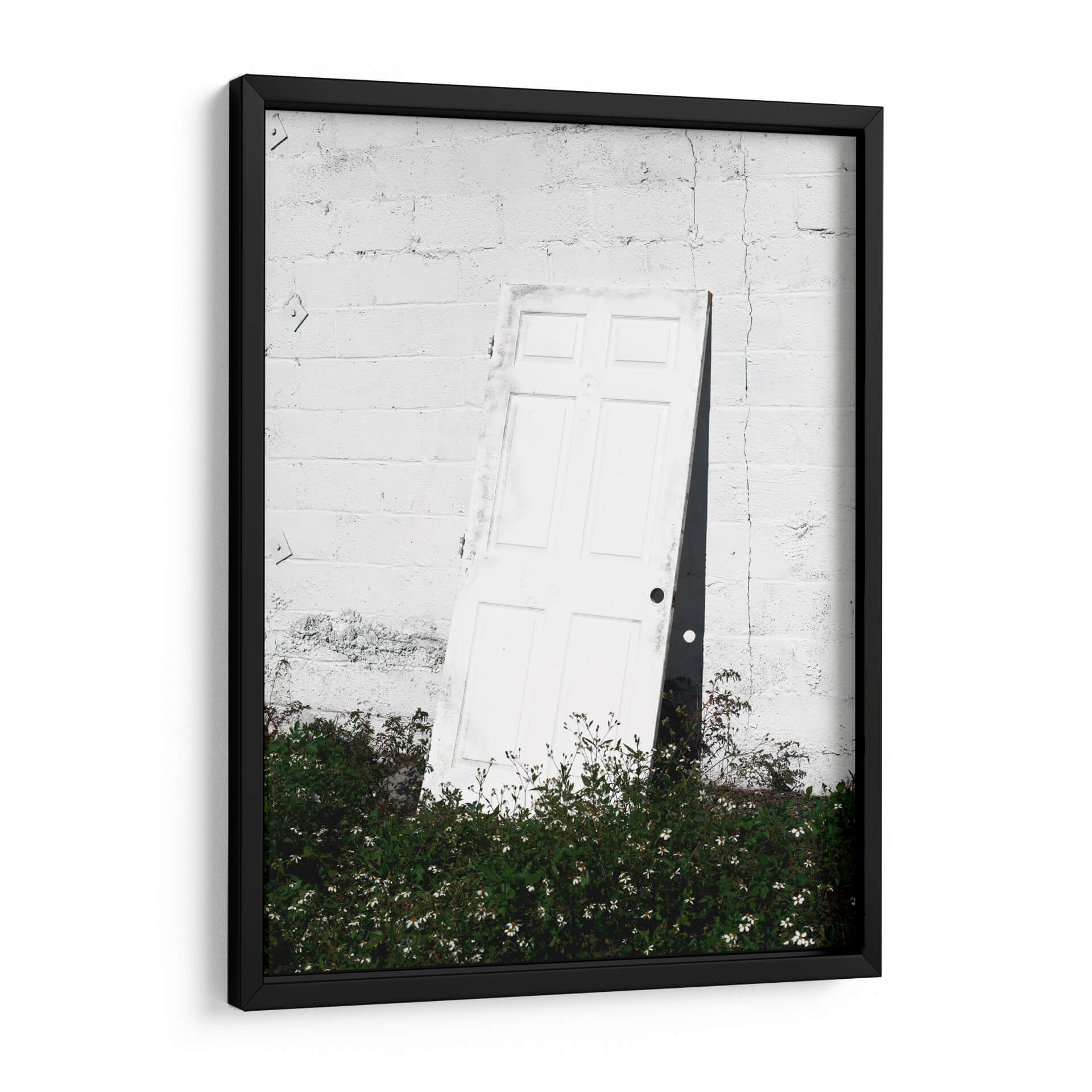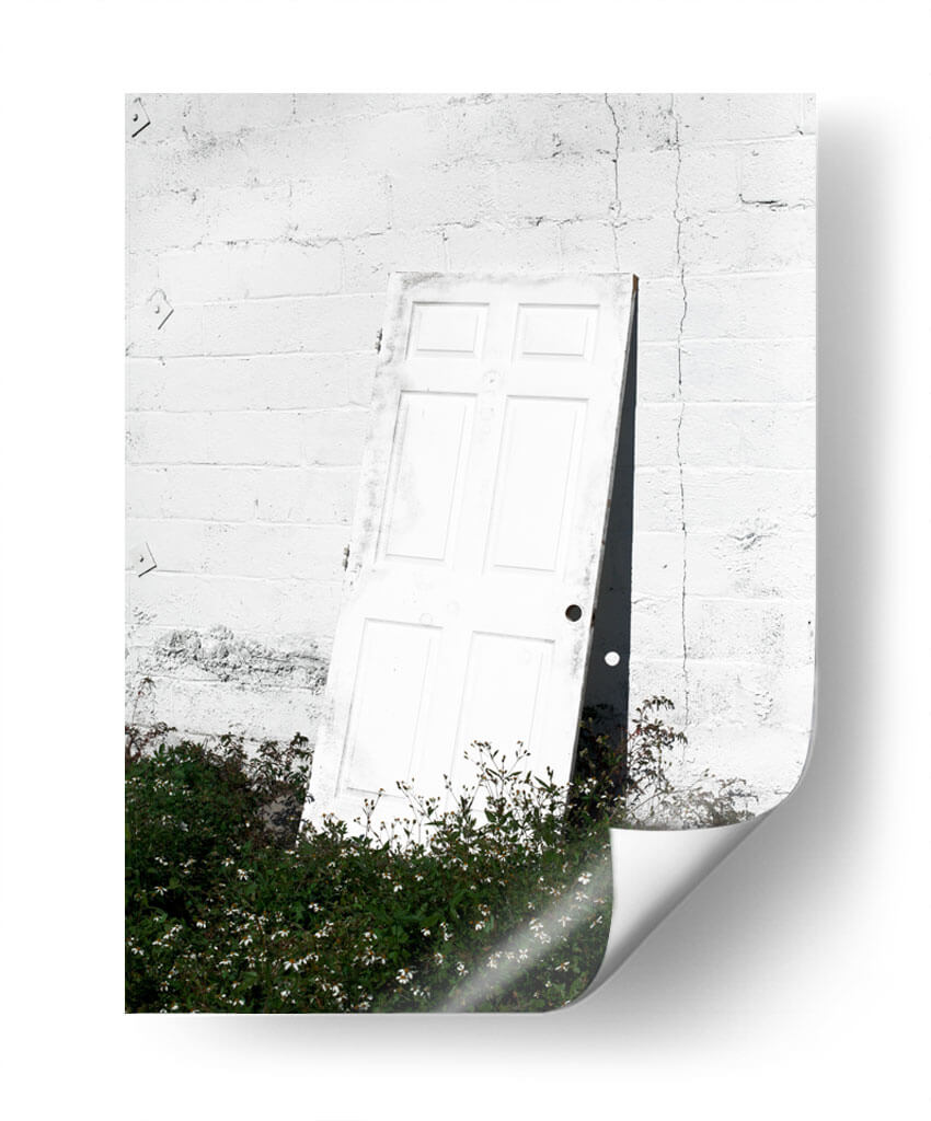 Descubre la obra "La Puerta Blanca", una pieza cautivadora que evoca misterio y transformación. Esta fotografía de arte mural presenta una puerta blanca inclinada contra una pared de ladrillos texturizada y agrietada, enmarcada por una exuberante vegetación con pequeñas flores blancas. La composición minimalista y el fuerte contraste entre la luz y la sombra crean una atmósfera introspectiva y serena. La paleta de colores se centra en blancos, grises y verdes, aportando una sensación de calma y pureza. El estilo fotográfico, con un enfoque limpio y detalles sutiles, invita a la contemplación sobre el simbolismo de las puertas: oportunidades, transiciones y lo desconocido. "La Puerta Blanca" es ideal para añadir un toque de sofisticación discreta y profundidad conceptual a tu sala de estar, dormitorio o estudio. Su diseño versátil se integra a la perfección en decoraciones modernas, contemporáneas o bohemias, convirtiéndose en un punto focal que inspira reflexión y serenidad en cualquier espacio.
