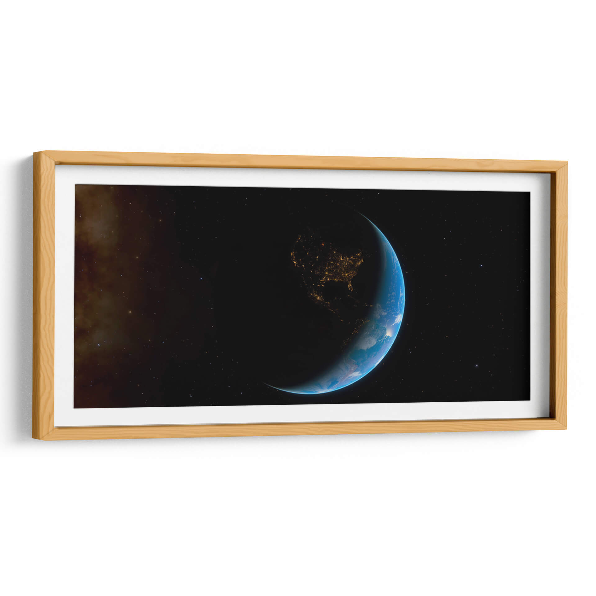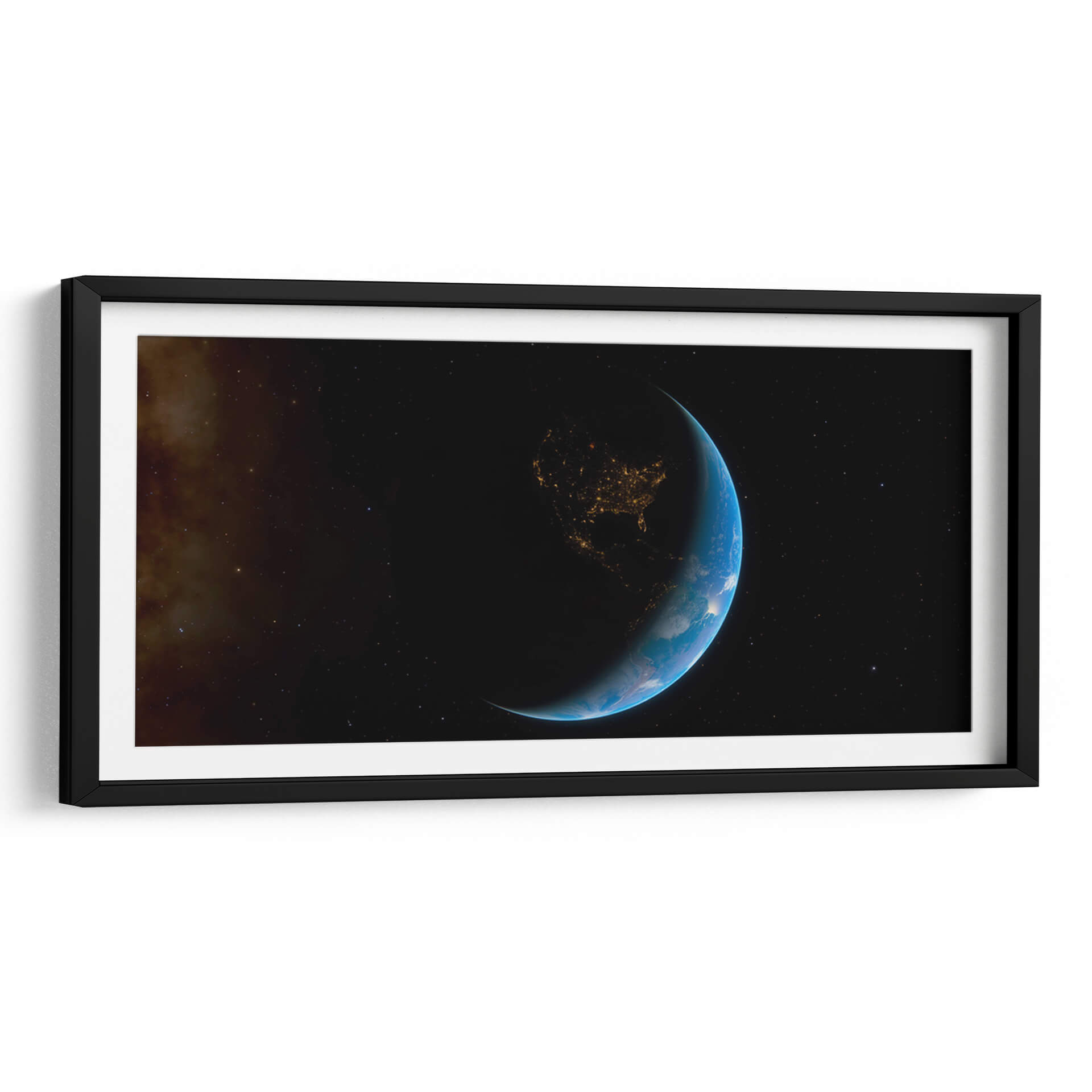 Sumérgete en la inmensidad del cosmos con "La Tierra desde el Espacio", una obra de arte digital que captura la majestuosidad de nuestro planeta visto desde la órbita. Este cuadro decorativo te transporta a un viaje visual incomparable, mostrando la curvatura azul de la Tierra bañada por la luz del sol, mientras que las luces de las ciudades resplandecen en la oscuridad, como joyas en un tapiz estelar. La composición, dominada por el negro profundo del espacio salpicado de diminutas estrellas, resalta la vitalidad de nuestro hogar. Los tonos azules vibrantes del planeta contrastan con los cálidos focos de luz de las metrópolis, creando una atmósfera de asombro y conexión. Ideal para quienes buscan inspirar conversaciones sobre exploración, ciencia o simplemente apreciar la belleza única de nuestro mundo. Este cuadro es perfecto para añadir un toque de sofisticación y perspectiva cósmica a cualquier sala de estar, oficina o estudio, sirviendo como un recordatorio constante de nuestra existencia en el vasto universo. Transforma tu pared en una ventana al espacio.