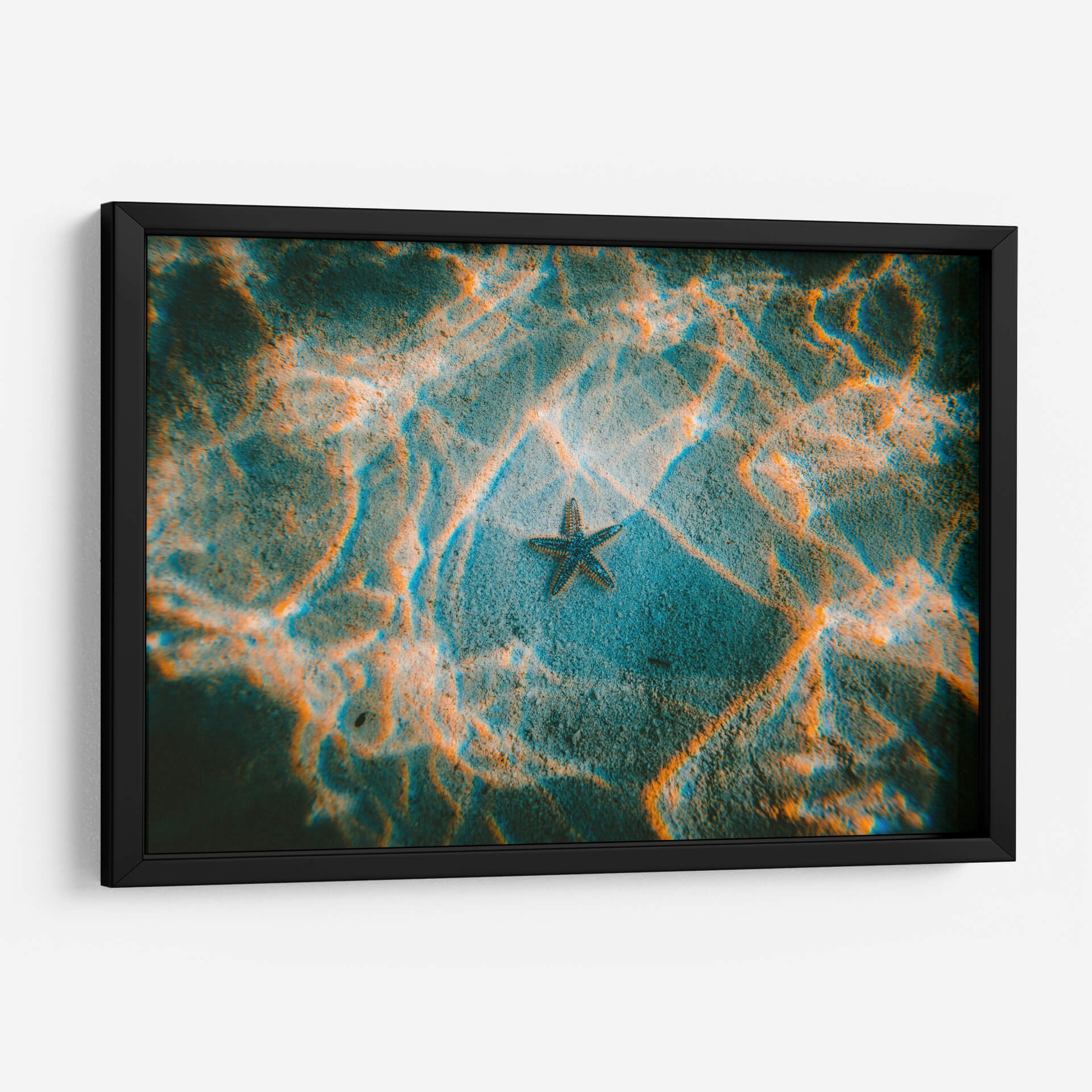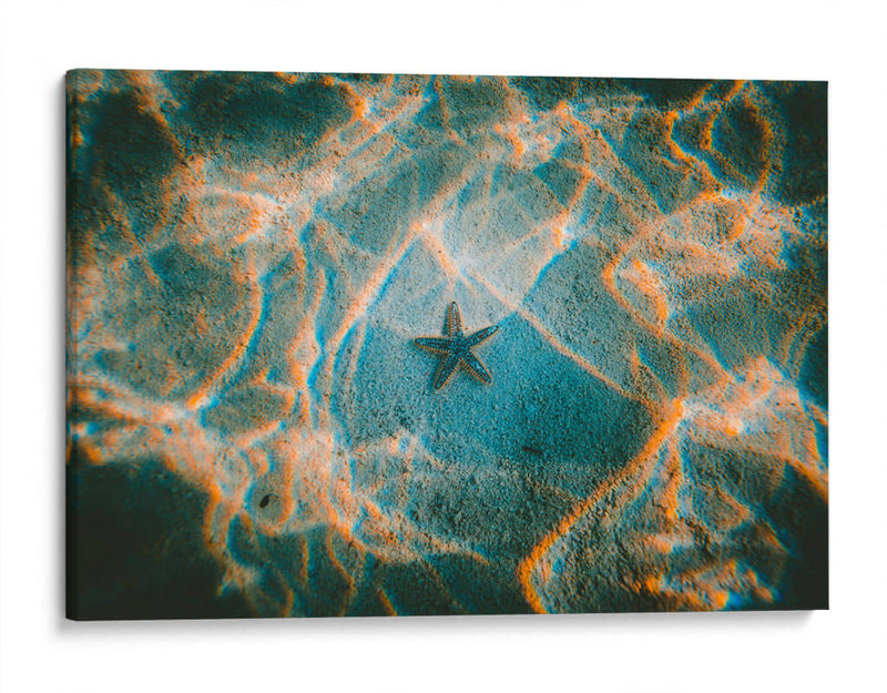 Sumérgete en la serena belleza del océano con este cautivador cuadro decorativo, 'La única estrella'. Esta obra de arte captura la esencia de un lecho marino bañado por la luz, con la delicada forma de una estrella de mar como protagonista solitaria. La composición evoca una sensación de calma y descubrimiento, invitando a la contemplación de la vida marina y la vastedad del mar. Los tonos azules profundos y verdosos se entrelazan con vibrantes acentos anaranjados y dorados, creados por los hipnóticos reflejos de la luz del sol en el agua, que iluminan las texturas arenosas del fondo. Este efecto lumínico genera un ambiente etéreo y casi místico, transformando cualquier espacio en un refugio de paz y serenidad. El estilo, que mezcla la fotografía detallada con un toque de surrealismo a través de los juegos de luz, lo convierte en una pieza versátil, perfecta para añadir un punto focal intrigante a tu sala de estar, un toque de tranquilidad a tu dormitorio, o un ambiente inspirador a tu oficina. 'La única estrella' es más que una simple decoración; es una invitación a conectar con la magia oculta bajo las olas, aportando una atmósfera de relajación y maravilla a tu hogar. Ideal para amantes de la naturaleza, el mar y el arte contemporáneo que buscan piezas con profundidad emocional.