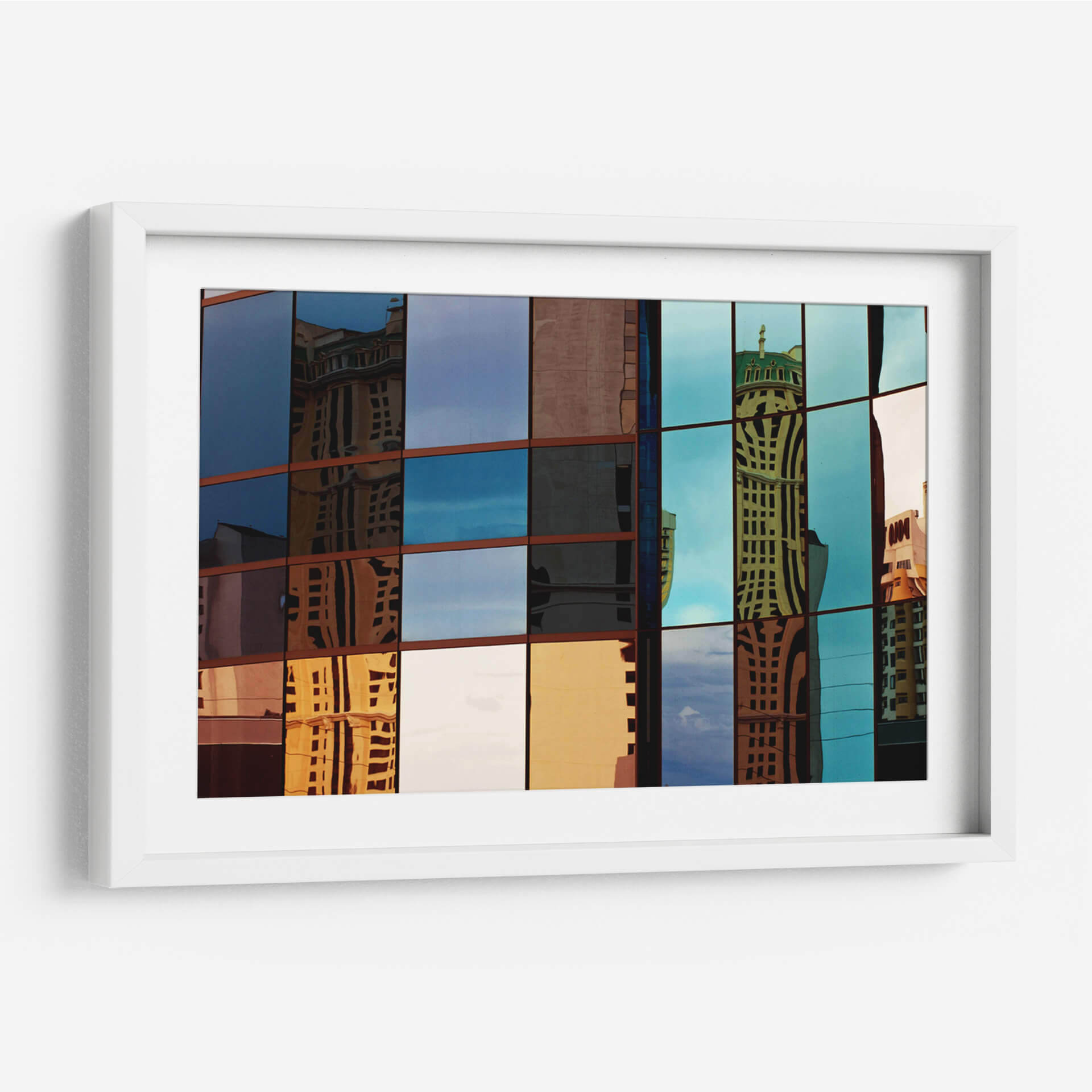 Sumérgete en la fascinante arquitectura urbana con "La Ventana", una obra de arte que captura la esencia de la reflexión arquitectónica. Esta pieza, a través de su composición modular y la intrincada trama de ventanas de un edificio moderno, presenta un cautivador juego de luces y sombras. La paleta de colores, dominada por tonos azules profundos, ocres cálidos y sutiles dorados, crea una atmósfera vibrante pero a la vez contemplativa. Las distorsiones y reflejos de los rascacielos circundantes en la fachada vidriada generan un efecto visual dinámico, casi onírico, que invita a la reflexión sobre la percepción de la realidad y el entorno construido. Ideal para espacios que buscan un toque de sofisticación moderna y un punto focal intrigante, como salas de estar, oficinas o pasillos contemporáneos. "La Ventana" no es solo una decoración, sino una ventana a la belleza abstracta de la ciudad, transformando cualquier pared en una obra de arte cautivadora. Su diseño abstracto y su enfoque en la textura y el color la convierten en una adición distintiva a cualquier colección de arte de pared.