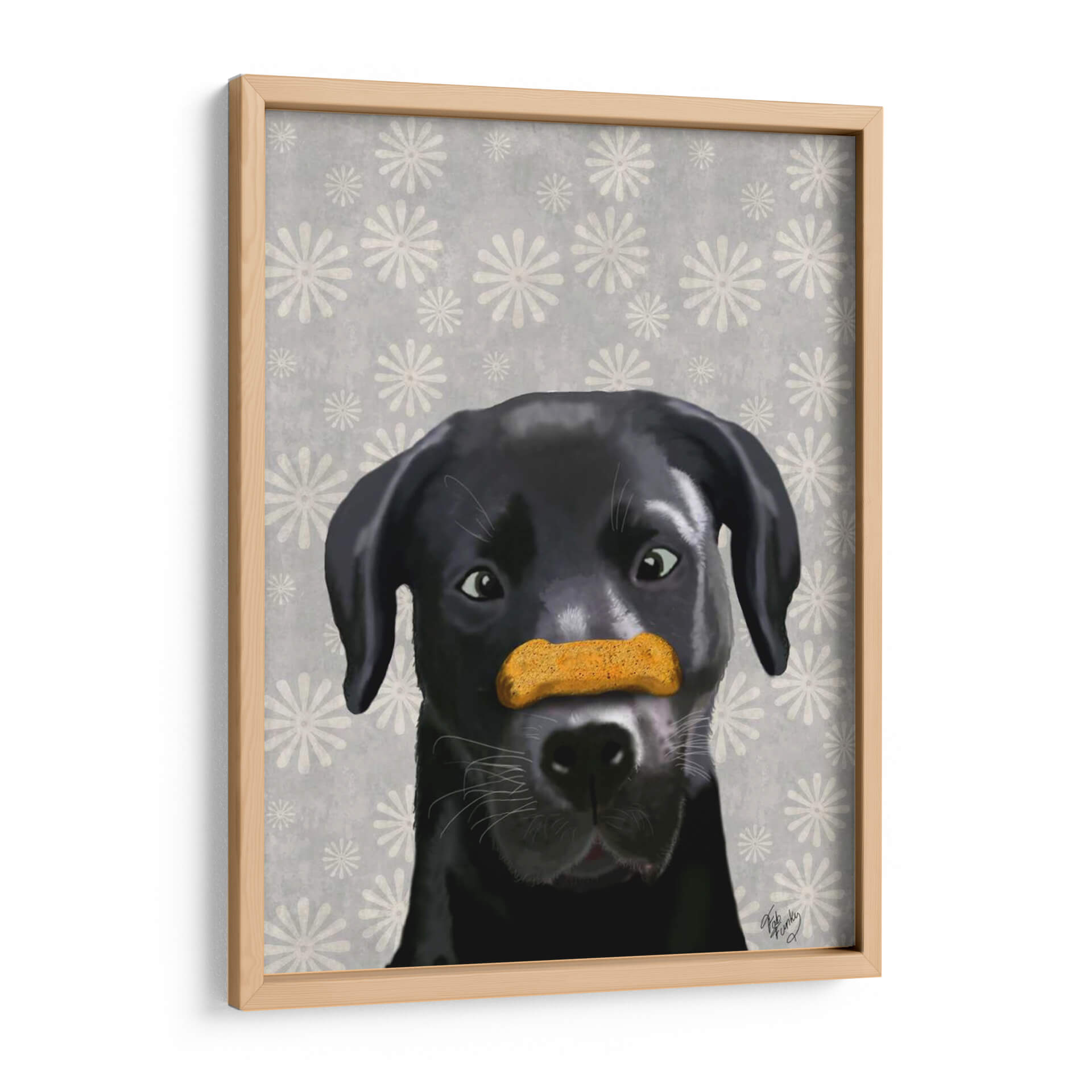 Dale un toque de humor y personalidad a tu hogar con este encantador cuadro decorativo de un Labrador Negro. La obra, titulada "Labrador Negro Con Hueso En La Nariz" por el artista Fab Funky, captura la atención de inmediato con su sujeto principal: un adorable perro negro con un hueso de juguete estratégicamente colocado sobre su hocico. La expresión juguetona y los ojos curiosos del perro invitan a una sonrisa, convirtiendo esta pieza en un punto focal lleno de alegría y carácter para cualquier habitación. El fondo, adornado con un patrón sutil de flores estilizadas en tonos grises y blancos, proporciona un contraste elegante que realza la vivacidad del perro sin restarle protagonismo. Este cuadro es una elección perfecta para los amantes de los perros y para aquellos que buscan añadir un elemento divertido y único a su decoración. Su estilo contemporáneo y su toque de surrealismo cómico lo hacen ideal para salas de estar, estudios, dormitorios o incluso espacios de trabajo que necesiten un soplo de aire fresco y originalidad. Transforma tu pared en una galería de emociones y buen humor con esta pieza que sin duda será tema de conversación.