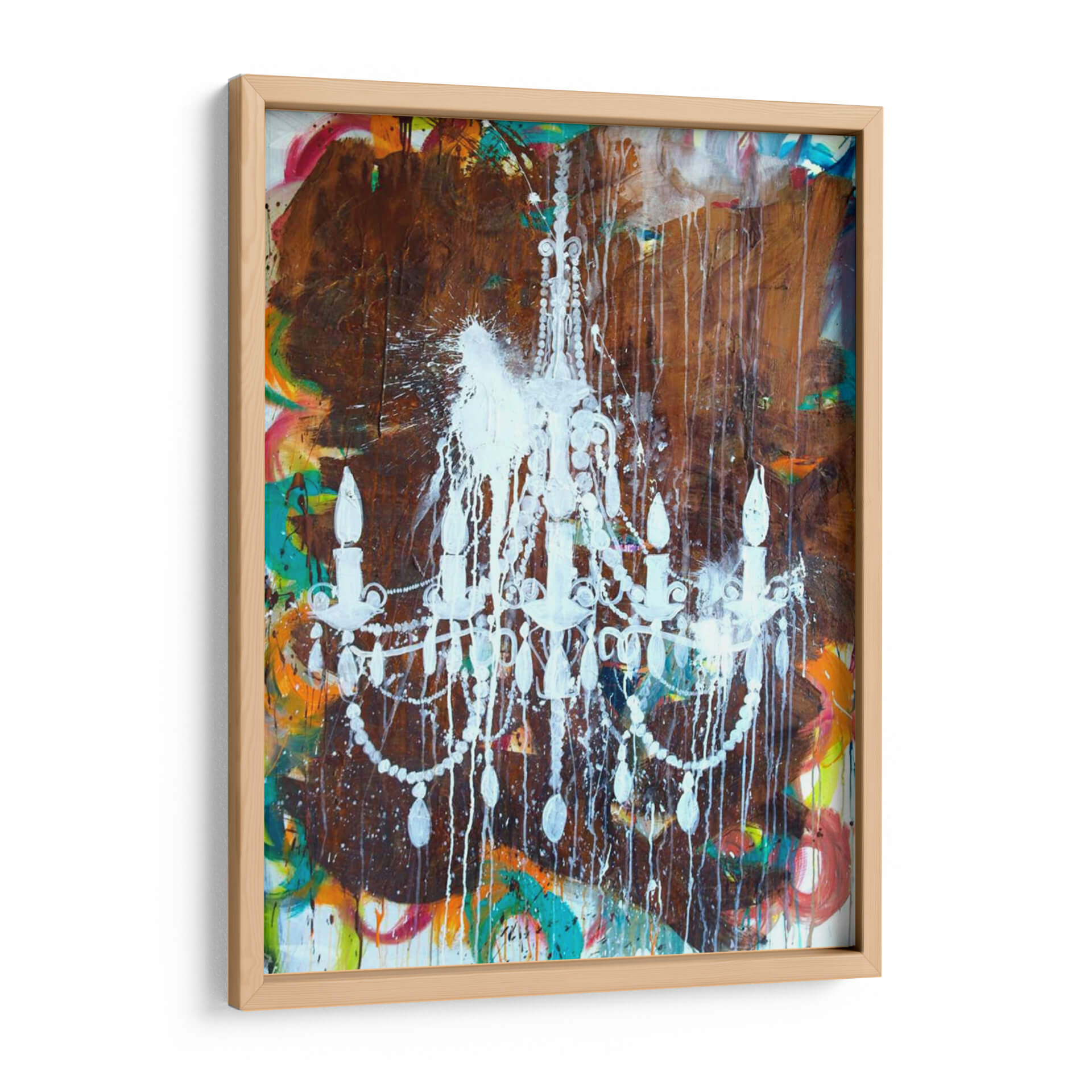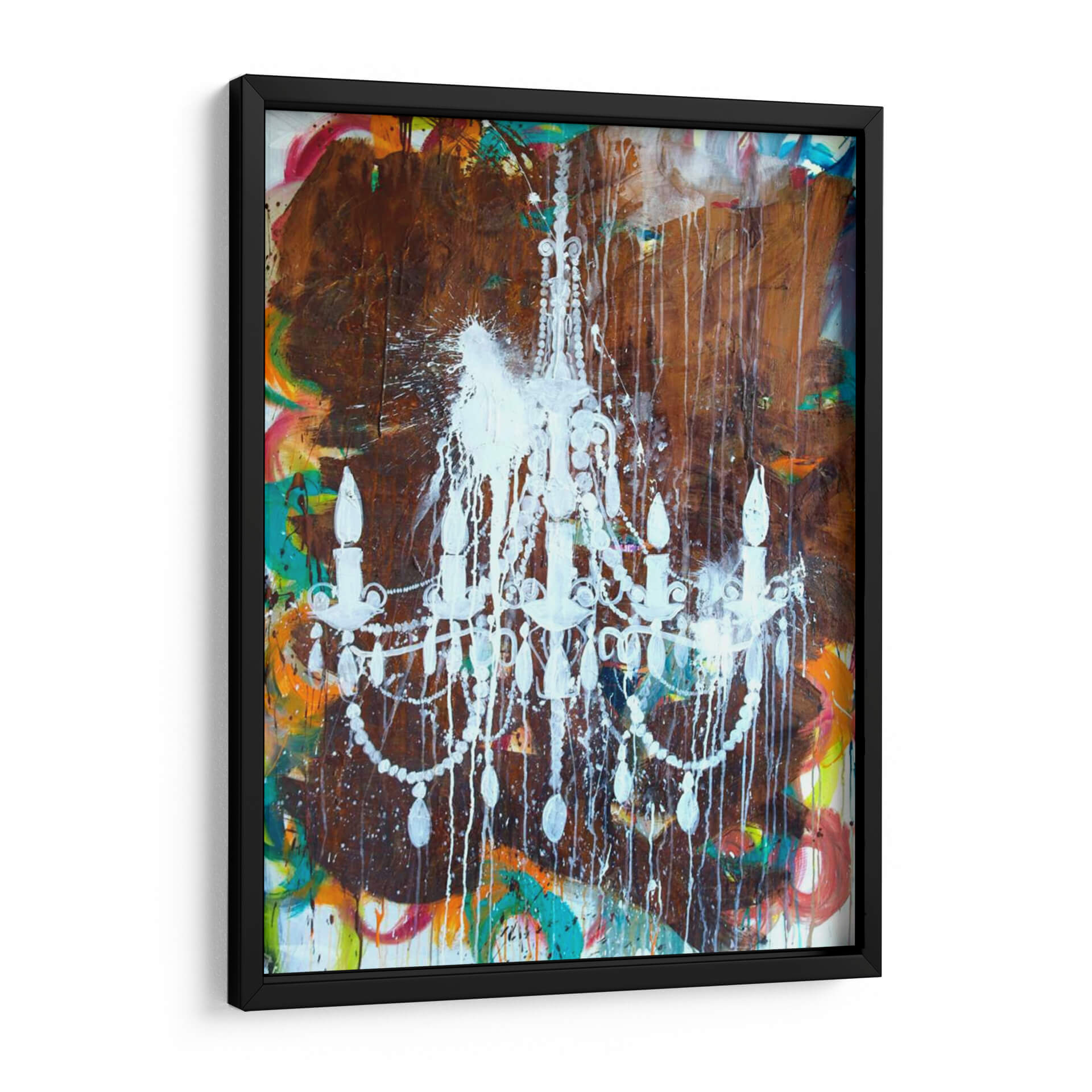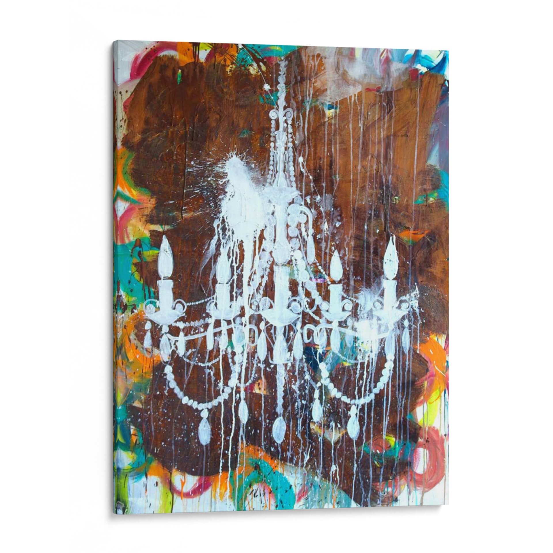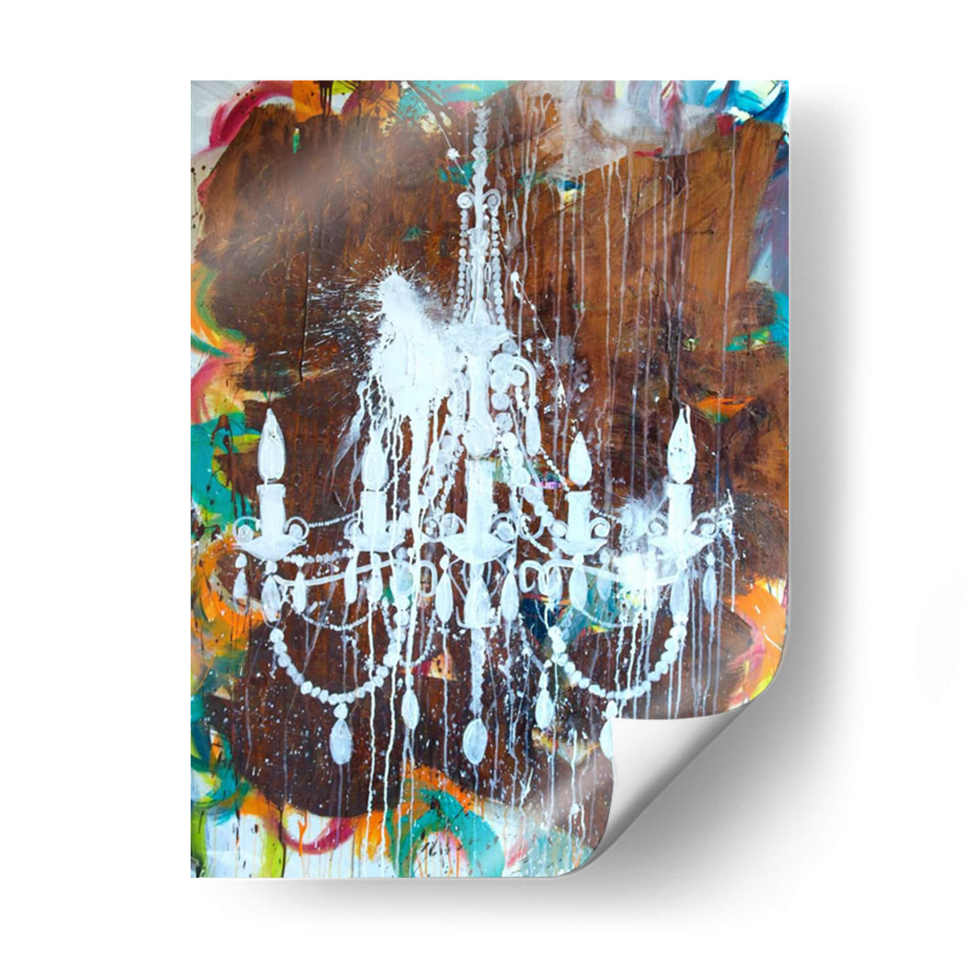 Sumérgete en la opulencia y el contraste con "Lámpara De Araña Blanca", una obra de arte contemporáneo que redefine la elegancia. El artista Kent Youngstrom presenta una pieza audaz donde una delicada lámpara de araña, pintada en un blanco vibrante y salpicada con gotas de pintura, emerge de un fondo texturizado y caótico. Los tonos terrosos profundos se entrelazan con explosiones de color vibrante, como naranjas, amarillos, azules y rojos, creando una tensión visual fascinante. Esta obra abstracta no solo captura la atención, sino que también evoca una sensación de movimiento y energía contenida, fusionando lo clásico con lo moderno de una manera inesperada. Es el cuadro decorativo perfecto para aquellos que buscan añadir un toque de dramatismo y sofisticación a su hogar u oficina. Ideal para salas de estar, comedores o incluso espacios de trabajo que deseen un punto focal inspirador y lleno de carácter. Añade esta pieza única a tu colección y transforma tu entorno en una galería de arte personal, un reflejo de tu audacia y buen gusto.
