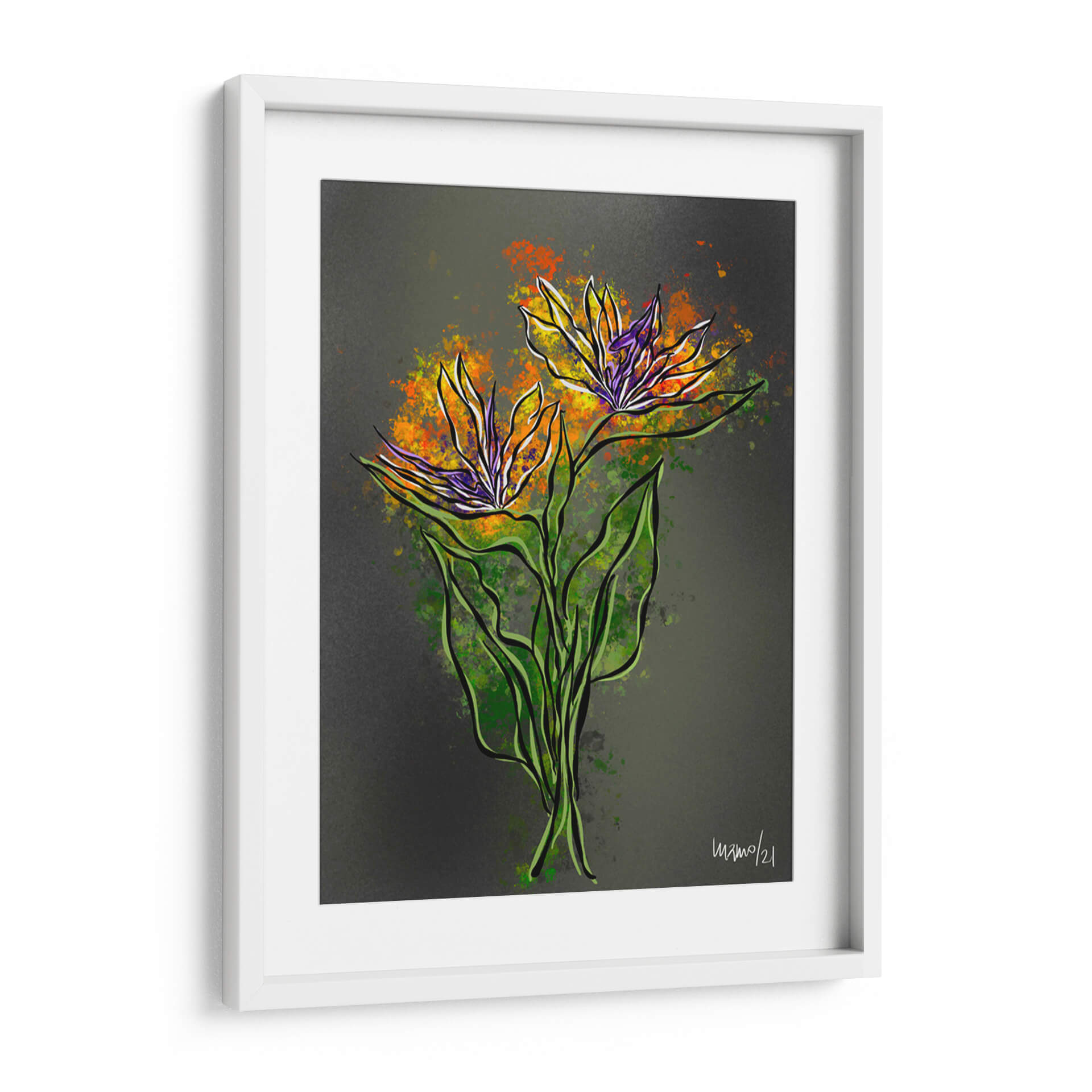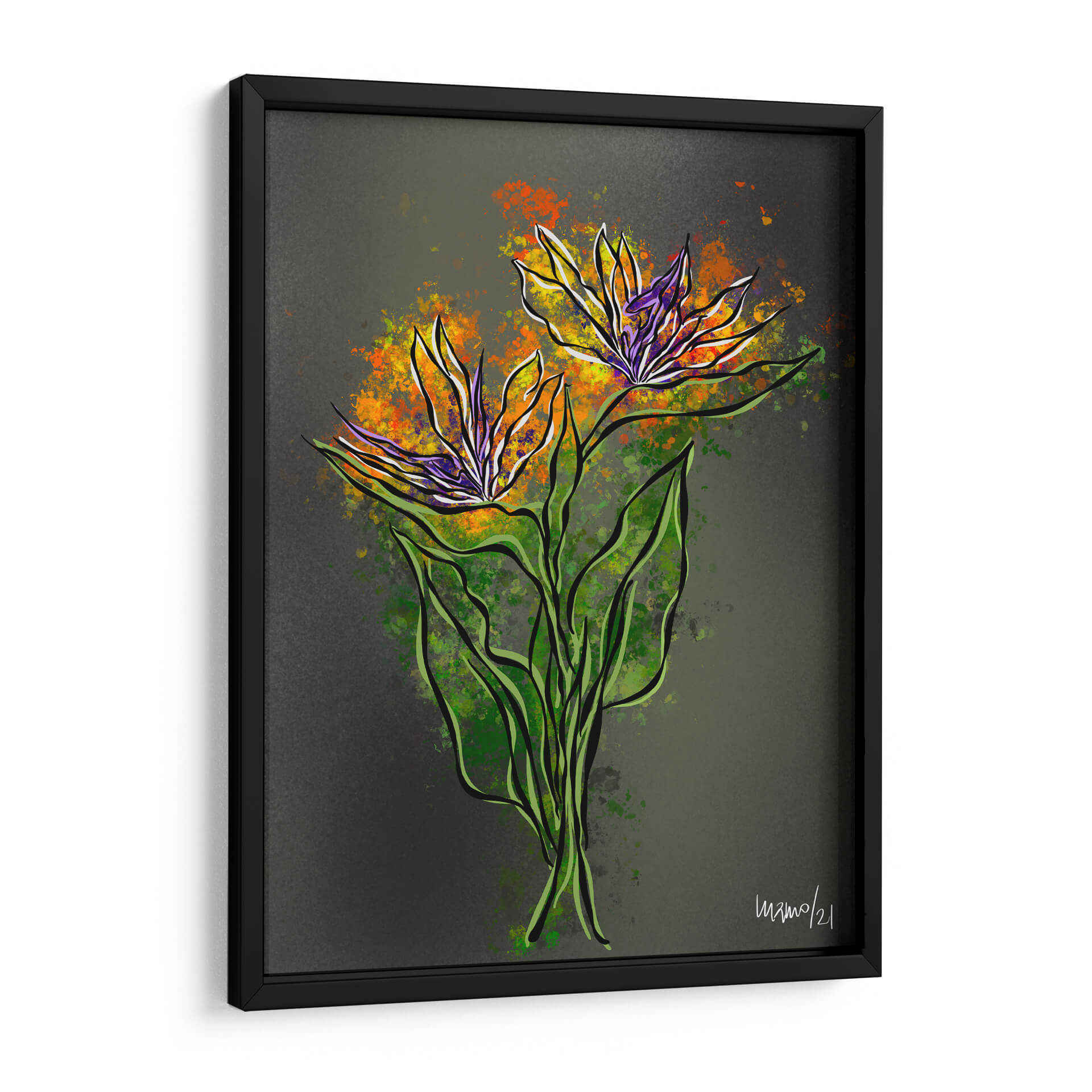Sumérgete en la vibrante belleza de "Las Flores 2", una obra de arte contemporáneo de Gina Villalobos que captura la esencia exótica de las aves del paraíso. Esta pieza presenta dos flores estilizadas en tonos morados y anaranjados brillantes, delineadas con trazos audaces y enérgicos que contrastan con el fondo texturizado de tono carbón. Las hojas verdes exuberantes que las acompañan añaden profundidad y un toque de naturaleza a la composición. La explosión de color en la parte superior, con salpicaduras naranjas y amarillas, aporta una sensación de movimiento y vitalidad, creando un punto focal dinámico. "Las Flores 2" es ideal para añadir un toque de color y sofisticación a cualquier espacio, ya sea una sala de estar moderna, un dormitorio acogedor o una oficina inspiradora. Su estilo único, que fusiona lo figurativo con toques abstractos, la convierte en una adición perfecta para quienes buscan arte decorativo que despierte emociones y conversaciones. Esta obra no solo embellece tu pared, sino que también infunde alegría y energía, transformando tu hogar en una galería personal que refleja tu gusto por el arte contemporáneo y vibrante.