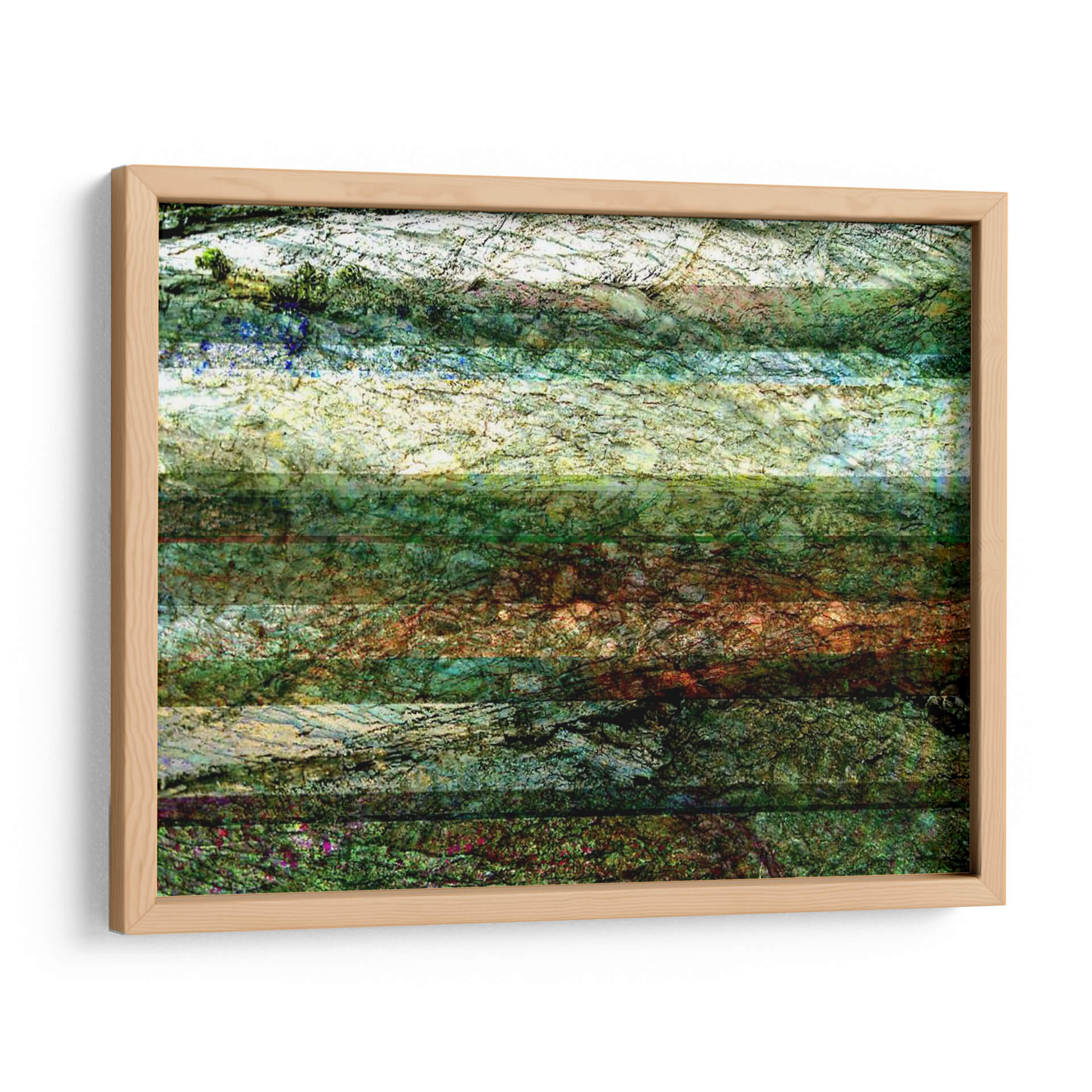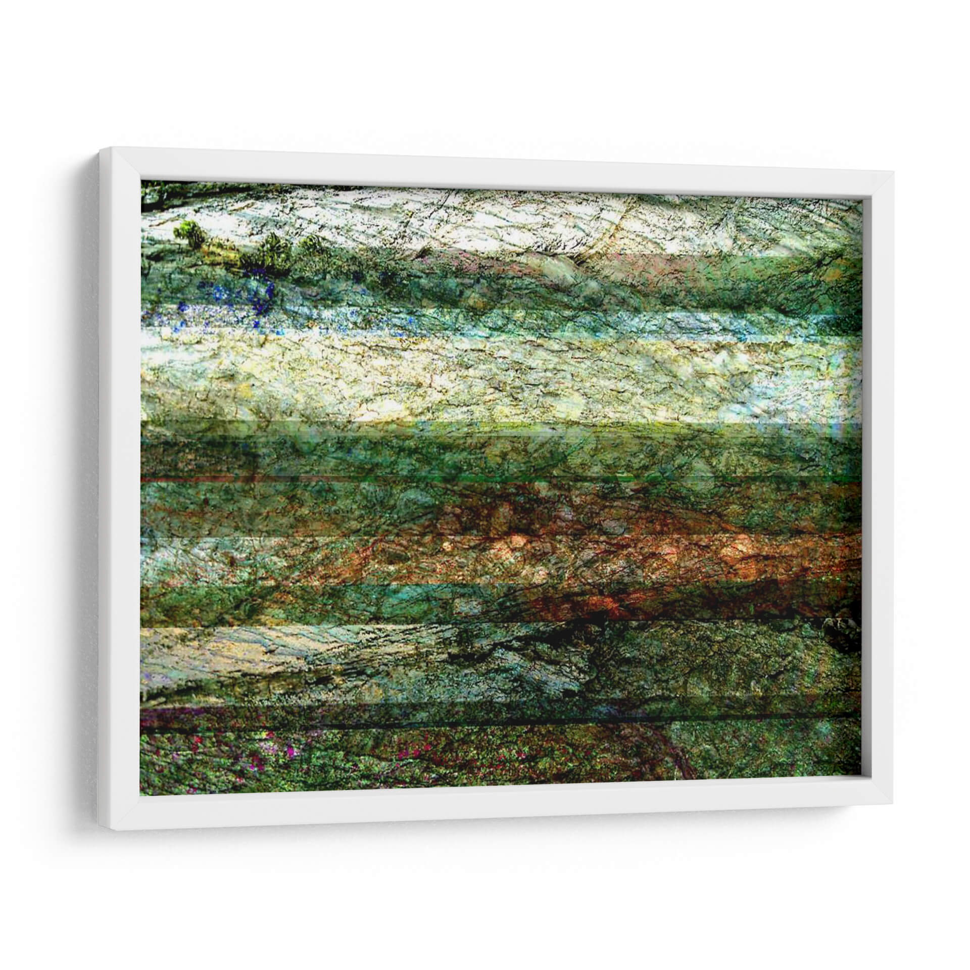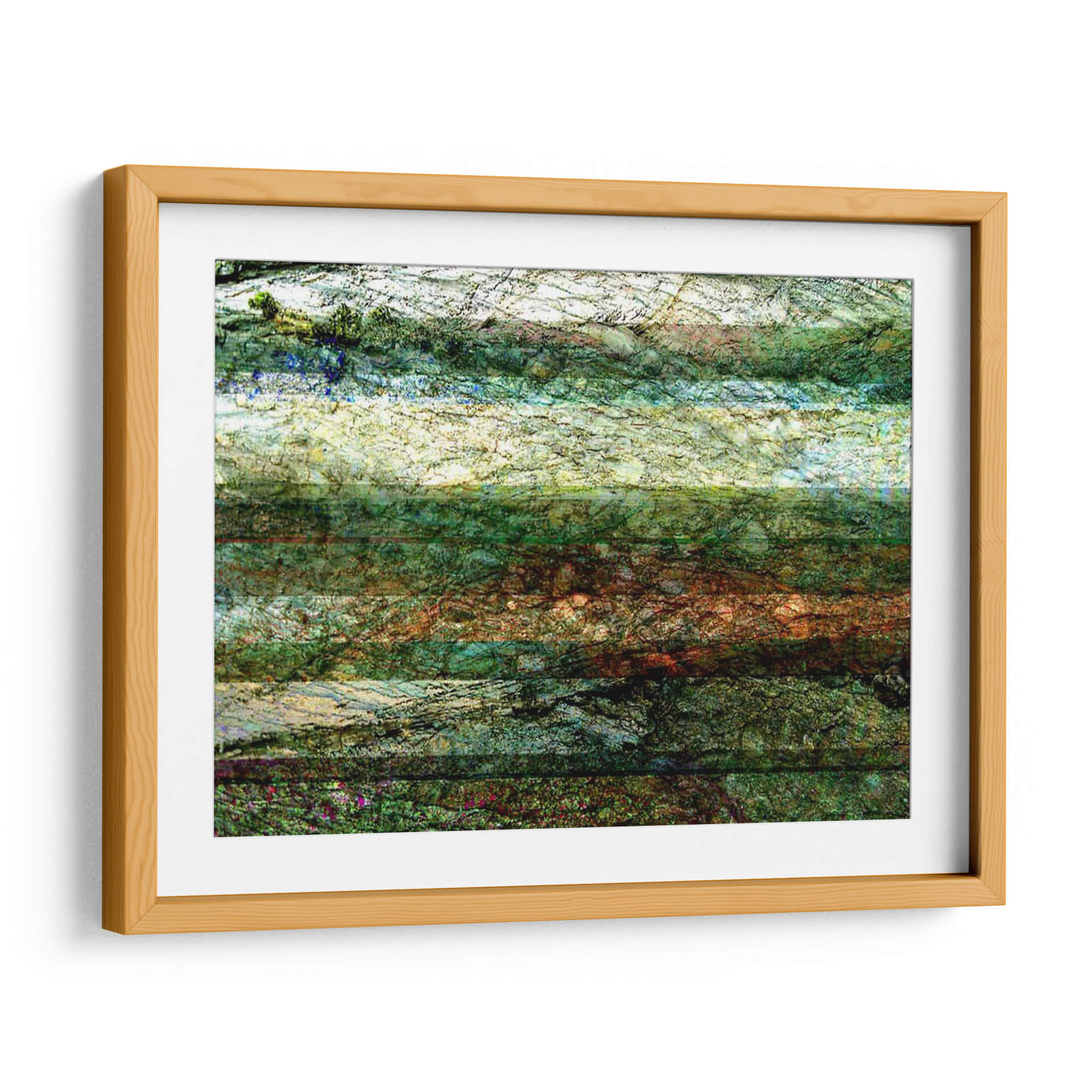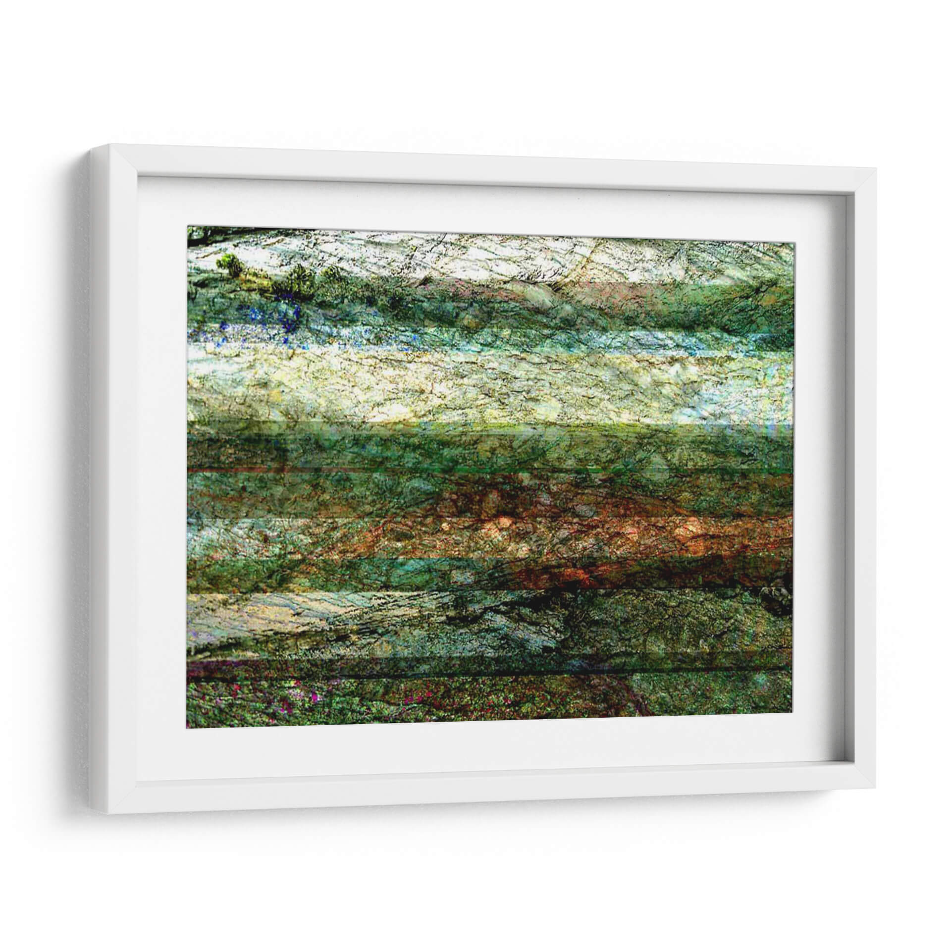 Sumérgete en la serenidad de "Líneas de la Naturaleza I", una cautivadora obra de arte abstracto de Danielle Harrington que evoca la textura y los tonos de la tierra. Este cuadro decorativo presenta una composición horizontal que recuerda a estratos geológicos o capas de follaje, con una paleta de colores que transita entre verdes profundos, ocres terrosos, azules celestes y blancos luminosos. Las intrincadas líneas y la riqueza de texturas invitan a la contemplación, creando una atmósfera de calma y conexión con el mundo natural. Ideal para espacios que buscan un toque de sofisticación orgánica y serenidad, ya sea en un salón moderno, un estudio tranquilo o un dormitorio acogedor. "Líneas de la Naturaleza I" no es solo una pieza decorativa, sino una ventana a la belleza sutil y compleja del entorno, añadiendo profundidad visual y un aire de naturaleza estilizada a cualquier ambiente. Su estilo abstracto contemporáneo asegura que se integre armoniosamente en diversas decoraciones, aportando un toque artístico único y evocador que invita a la reflexión y al disfrute estético.