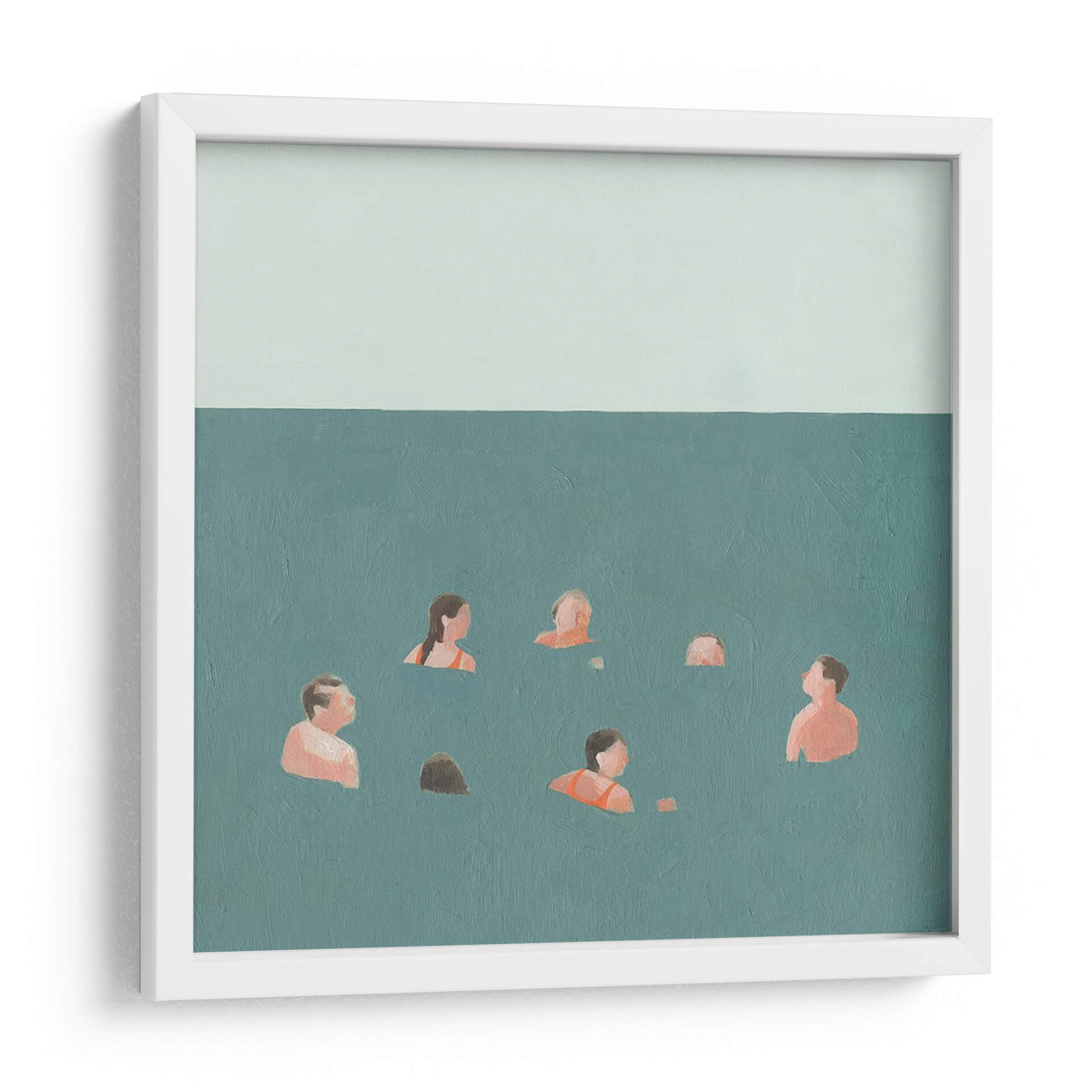 Sumérgete en la serenidad con "Los Nadadores I" de Emma Scarvey, un cuadro decorativo que captura la esencia de un momento de calma y conexión. Esta obra presenta a un grupo de figuras nadando en aguas tranquilas, representadas con un estilo minimalista y una paleta de colores suaves. Los tonos turquesa del agua se fusionan armoniosamente con los sutiles toques de color de la piel y los trajes de baño, creando una atmósfera de paz y relajación. La composición, dividida en un plano superior de cielo pálido y un plano inferior de agua, evoca una sensación de amplitud y profundidad. "Los Nadadores I" es ideal para añadir un toque de serenidad a tu dormitorio, un aire de tranquilidad a tu sala de estar, o un punto de calma visual en tu oficina. Esta pieza de arte contemporáneo invita a la contemplación, transportando al espectador a un espacio de introspección y bienestar. Su diseño abstracto y figurativo a la vez, permite una interpretación personal, convirtiéndolo en un elemento decorativo versátil que encaja en diversos estilos de interiores, desde el moderno hasta el bohemio. Añade esta obra maestra a tu colección y transforma tu hogar en un refugio de paz.