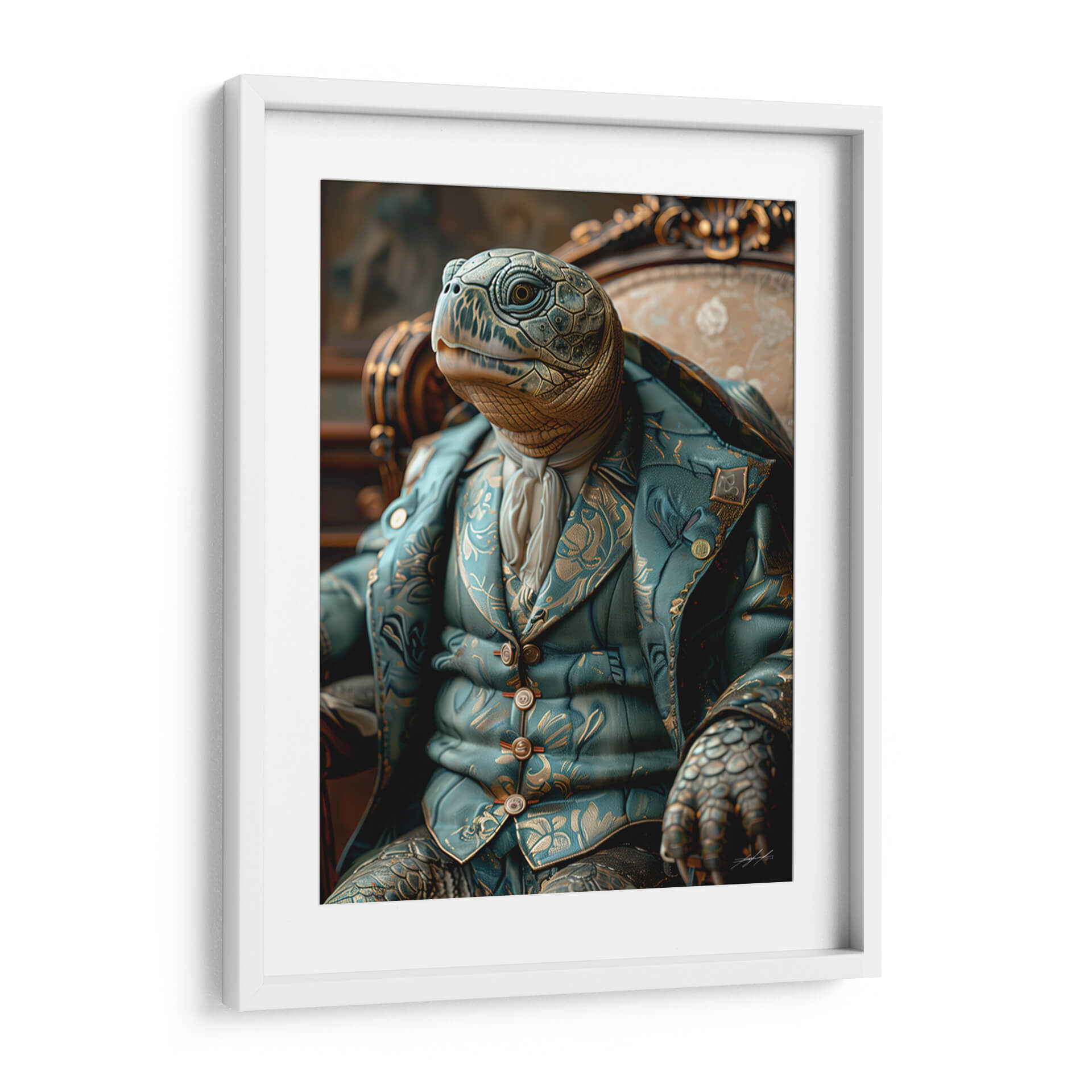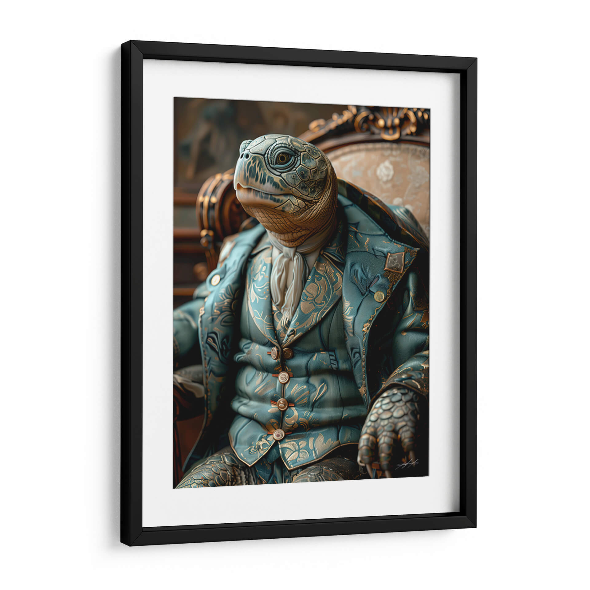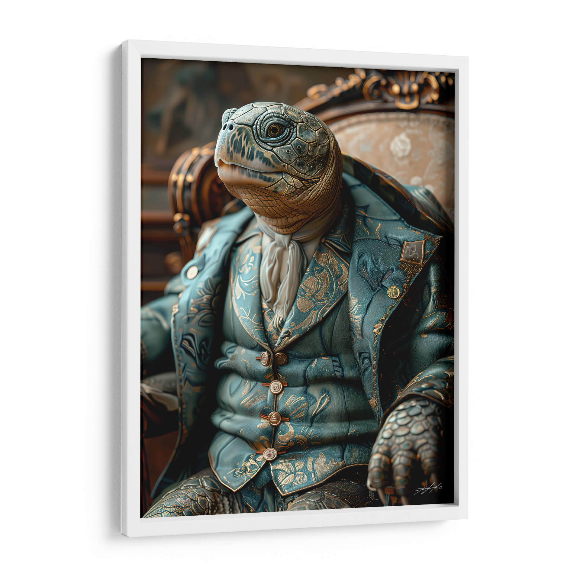 Sumérgete en el mundo surrealista de "Los Nuevos Reyes" de DeLaVegaGaming, una obra de arte digital que desafía las convenciones y captura la imaginación. Este cuadro decorativo presenta una tortuga antropomórfica vestida con un elegante traje de época, sentada con porte majestuoso en un sillón ornamentado. La paleta de colores, dominada por ricos tonos de verde azulado y dorados intrincados en el traje, evoca una sensación de opulencia y misterio. La detallada textura de las escamas de la tortuga contrasta con la suavidad de la seda de su atuendo, creando una pieza visualmente cautivadora. El fondo, con su iluminación tenue y detalles sutiles, añade profundidad y un aire de intriga, sugiriendo una narrativa oculta. Este cuadro decorativo es perfecto para aquellos que buscan añadir un toque de originalidad, humor y sofisticación a su hogar u oficina. Ideal para salas de estar, estudios o cualquier espacio que se beneficie de una pieza de conversación única y memorable. "Los Nuevos Reyes" no es solo una decoración, es una declaración de estilo y una invitación a contemplar lo inesperado en el arte contemporáneo.