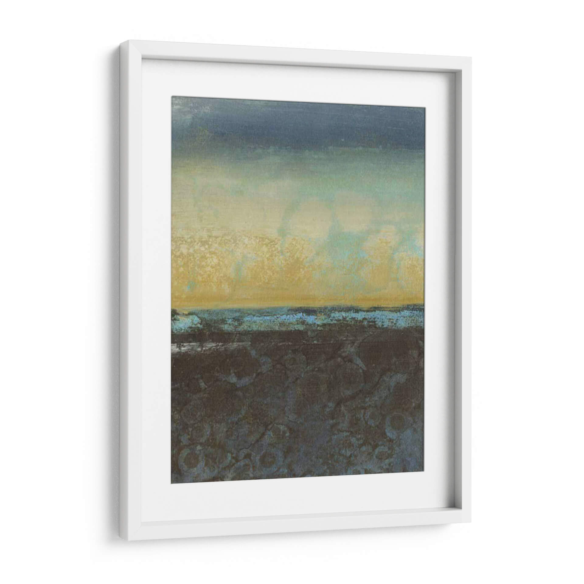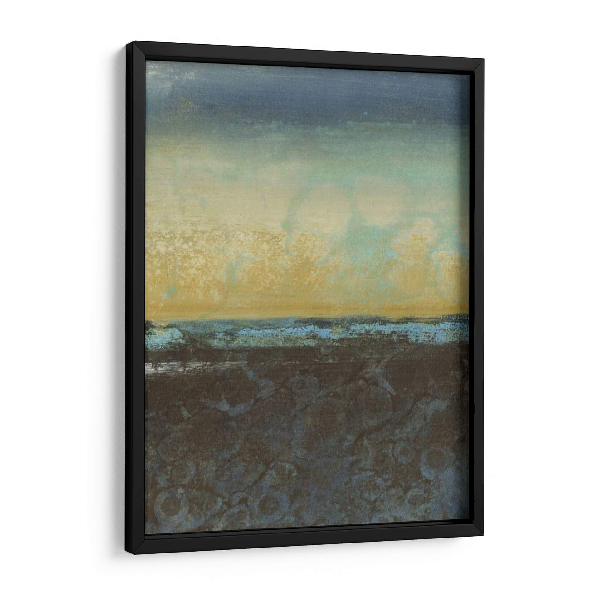 Sumérgete en la atmósfera serena y enigmática de "Luz Difusa II", una obra de arte contemporáneo que captura la esencia de un paisaje etéreo y texturizado. Los tonos profundos de azul marino y gris se fusionan con cálidos ocres y toques de turquesa, creando una paleta de colores que evoca tanto la tranquilidad del océano como la calidez de la tierra. La composición abstracta, con sus capas sutiles y texturas ricas, invita a la contemplación, sugiriendo la vastedad de un horizonte o la profundidad de un recuerdo. Esta pieza es ideal para añadir un toque de sofisticación y calma a cualquier espacio, ya sea un salón moderno, un estudio íntimo o un dormitorio acogedor. "Luz Difusa II" no es solo una decoración; es una invitación a la introspección, un fragmento de serenidad visual que transforma tu entorno en un santuario personal. Su estilo abstracto y evocador la convierte en un punto focal versátil, capaz de complementar una variedad de estilos decorativos, desde el minimalista hasta el bohemio.