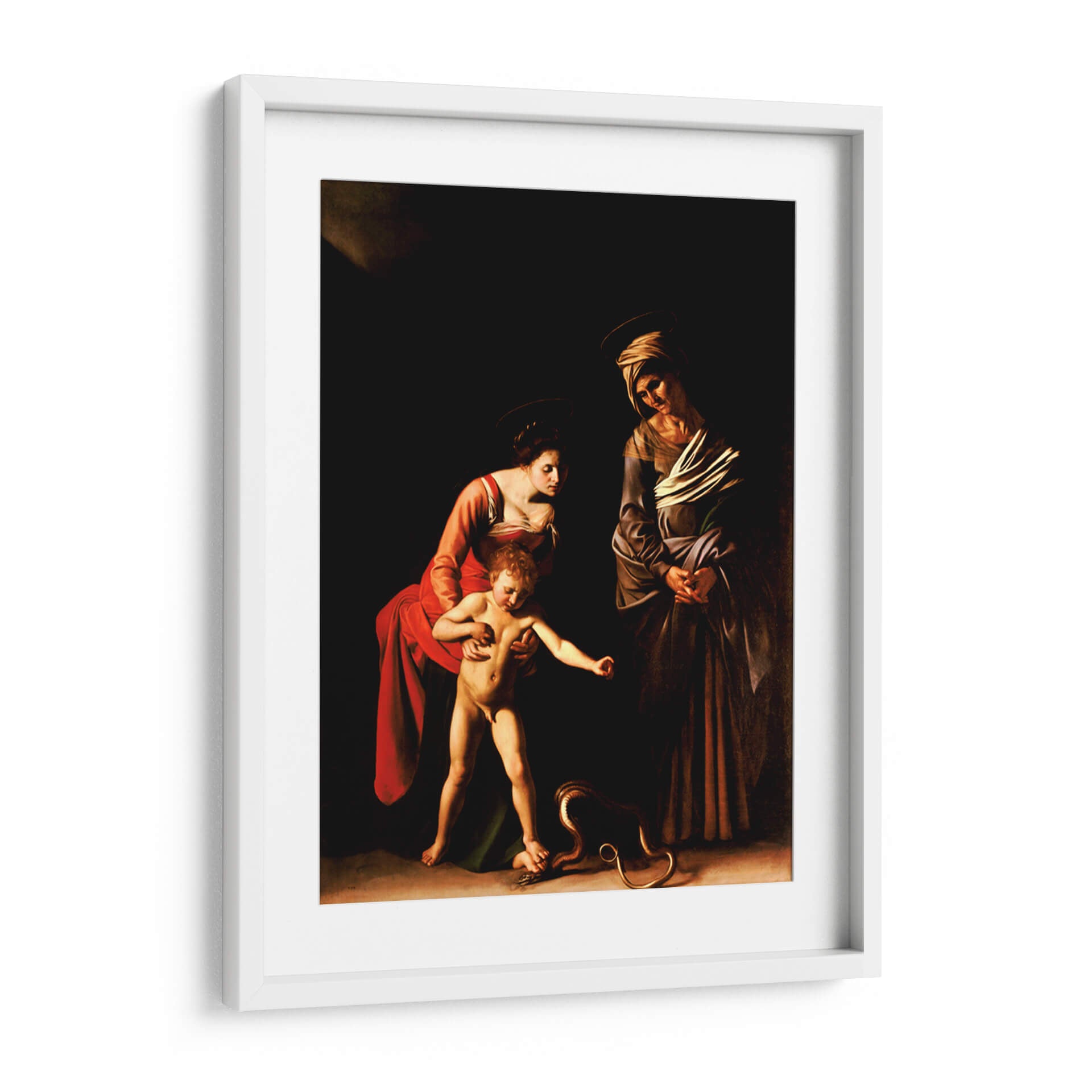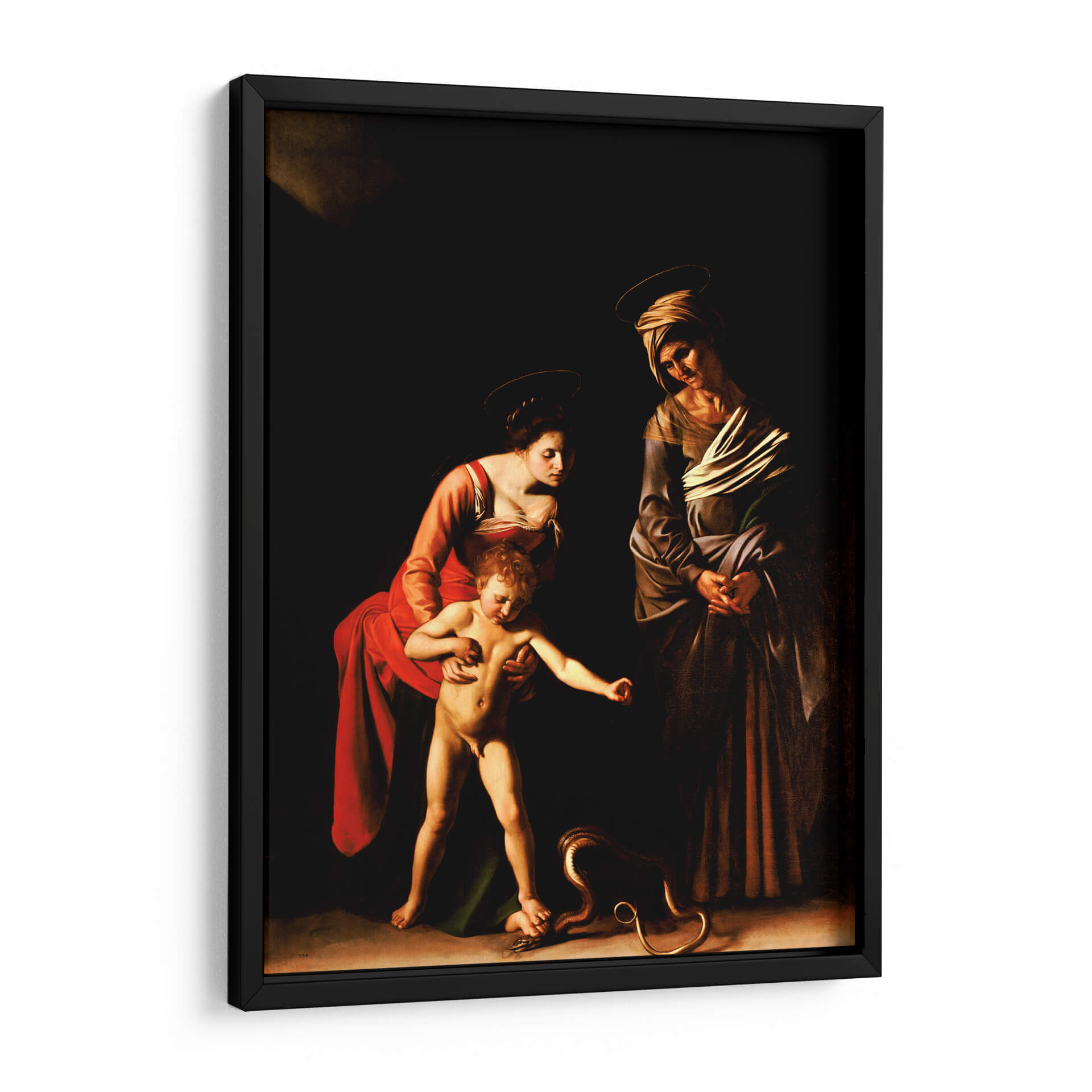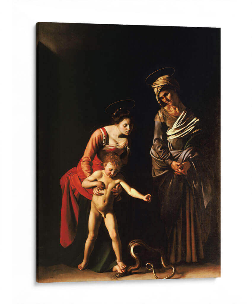 Sumérjase en la intensidad emocional y el claroscuro magistral de 'Madonna con el niño y Santa Ana', una obra maestra del Barroco atribuida a Caravaggio. Este cuadro decorativo captura un momento de profunda conexión espiritual y narrativa, con figuras que emergen de sombras profundas gracias a la icónica técnica del tenebrismo. La paleta de colores, dominada por ricos rojos, profundos marrones y sombras oscuras, crea una atmósfera dramática y solemne, perfecta para añadir un punto focal de intriga y belleza clásica a cualquier estancia. La composición, centrada en la interacción íntima entre la Virgen María, el Niño Jesús y Santa Ana, invita a la contemplación sobre temas de fe, protección y destino. Ideal para salones, estudios o comedores que buscan una pieza de arte con historia y carácter, este lienzo transformará su espacio en una galería personal, evocando admiración y conversación. Es una elección excepcional para los amantes del arte clásico y las representaciones emotivas que trascienden el tiempo, aportando una sensación de gravedad y belleza atemporal a su decoración.