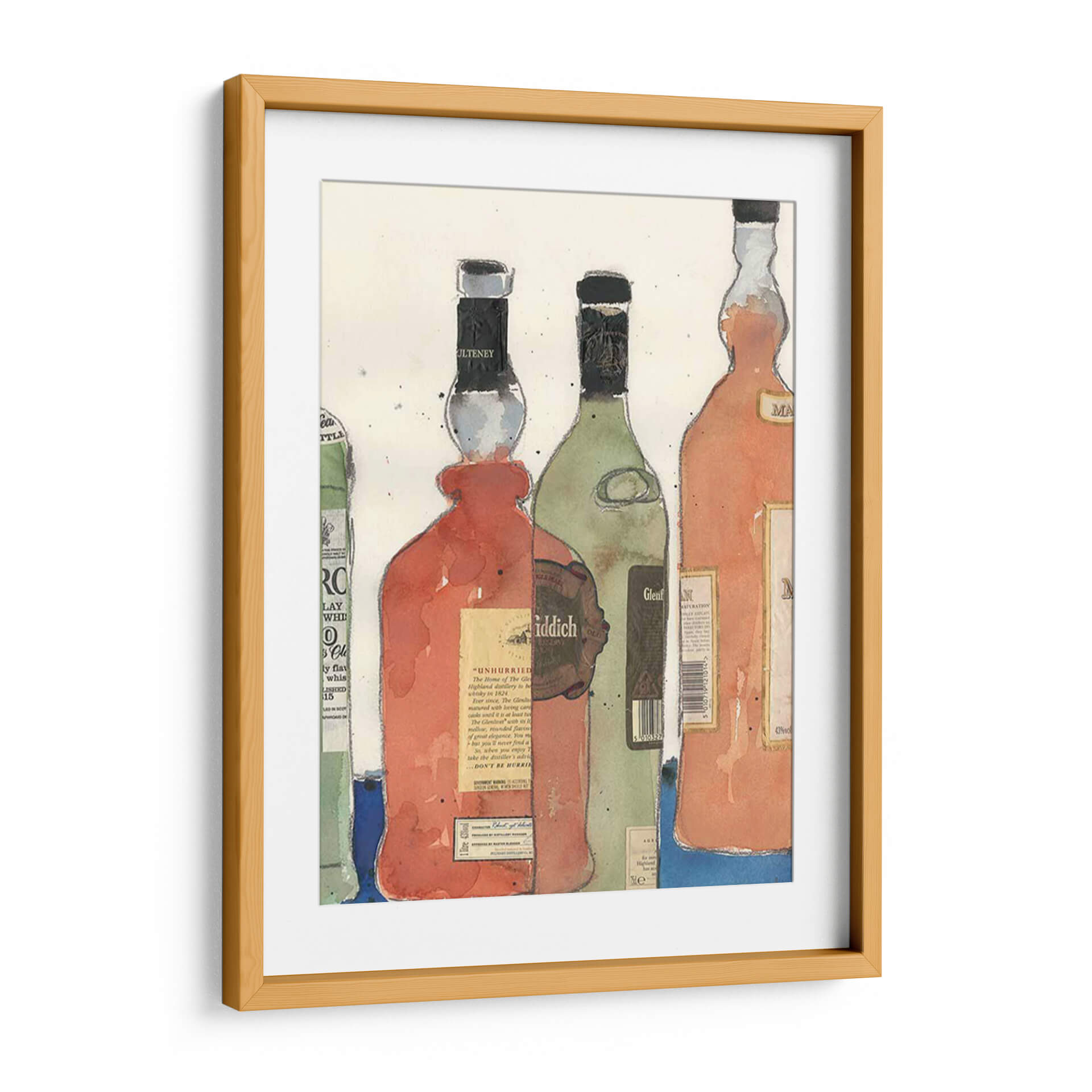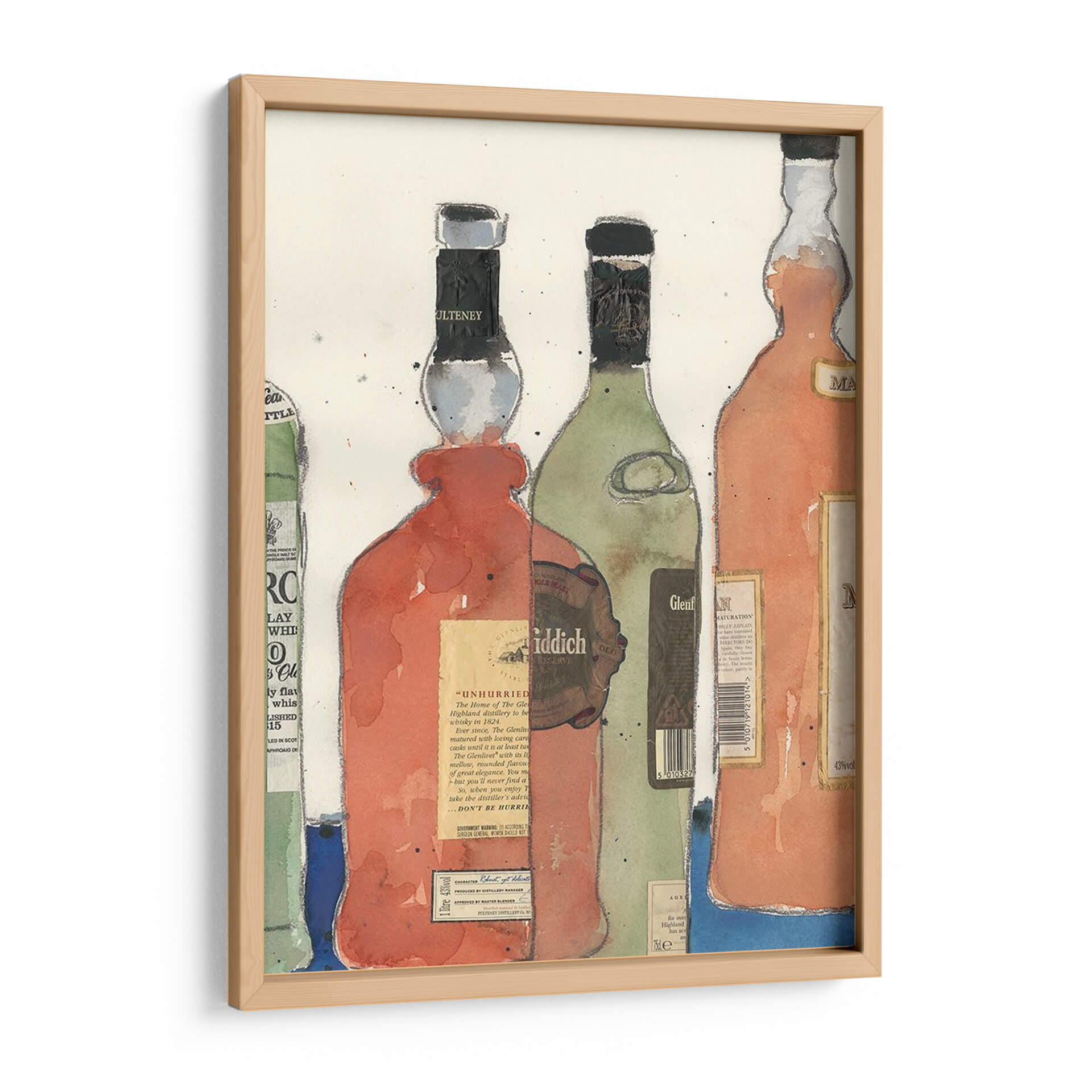 Sumérgete en el sofisticado mundo del whisky con 'Malta Whisky I', una obra de arte de Samuel Dixon que captura la esencia de esta destilada bebida en un estilo acuarela vibrante y expresivo. La pieza presenta una composición intrigante de botellas de whisky, cada una con su propia personalidad y coloración, desde el naranja cálido hasta el verde suave y el rojizo terroso. Las texturas sutiles y las salpicaduras de tinta añaden profundidad y carácter, evocando la rica historia y el proceso artesanal detrás de cada gota. Los elementos collage, como las etiquetas de las botellas, aportan un toque nostálgico y detallado, invitando al espectador a explorar cada rincón de la obra. Este cuadro decorativo es ideal para crear un ambiente de club de caballeros moderno o un rincón de degustación acogedor en tu hogar. Transmite una sensación de calidez, tradición y placer refinado, perfecto para salones, comedores o estudios. Añade un toque de elegancia masculina y un punto de conversación único a tu decoración con este cautivador cuadro de whisky.