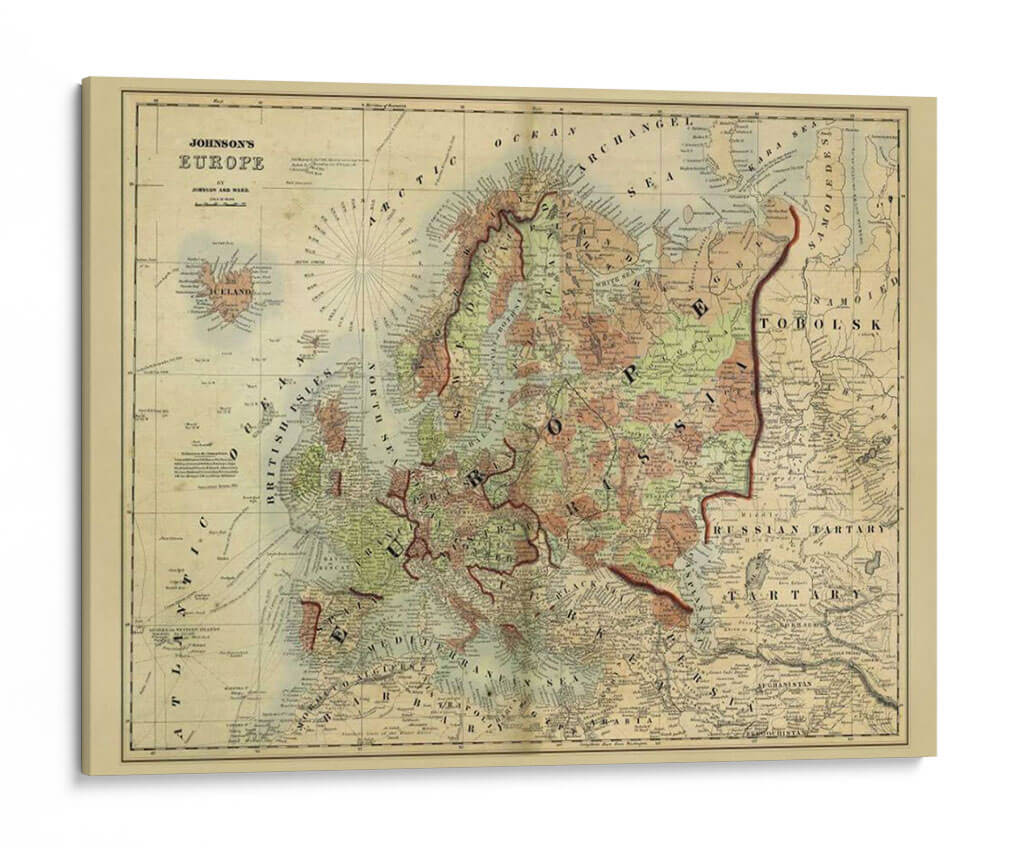 Embárquese en un viaje visual a través del tiempo con este exquisito cuadro decorativo de "Mapa Antiguo de Europa" del artista Johnson. Esta pieza meticulosamente detallada transporta al espectador a una era pasada, ofreciendo una representación cartográfica que no solo es informativa, sino también profundamente evocadora. Los tonos sepia, verdes apagados y marrones cálidos se combinan para crear una atmósfera de nostalgia y descubrimiento. Cada línea, cada nombre de región y cada frontera dibujada cuenta una historia de exploración y cambio geográfico. Ideal para amantes de la historia, geografía o para quienes buscan una decoración de pared con carácter y profundidad. Este mapa antiguo es perfecto para añadir un toque de erudición y encanto clásico a su estudio, oficina o sala de estar. Imagínese contemplando las rutas comerciales históricas o recordando la evolución de las naciones europeas, todo ello enmarcado en una obra de arte que estimula la conversación y la contemplación. Añada un elemento de sofisticación y un guiño a la aventura a su espacio con este impresionante mapa decorativo.