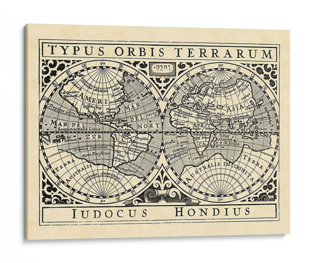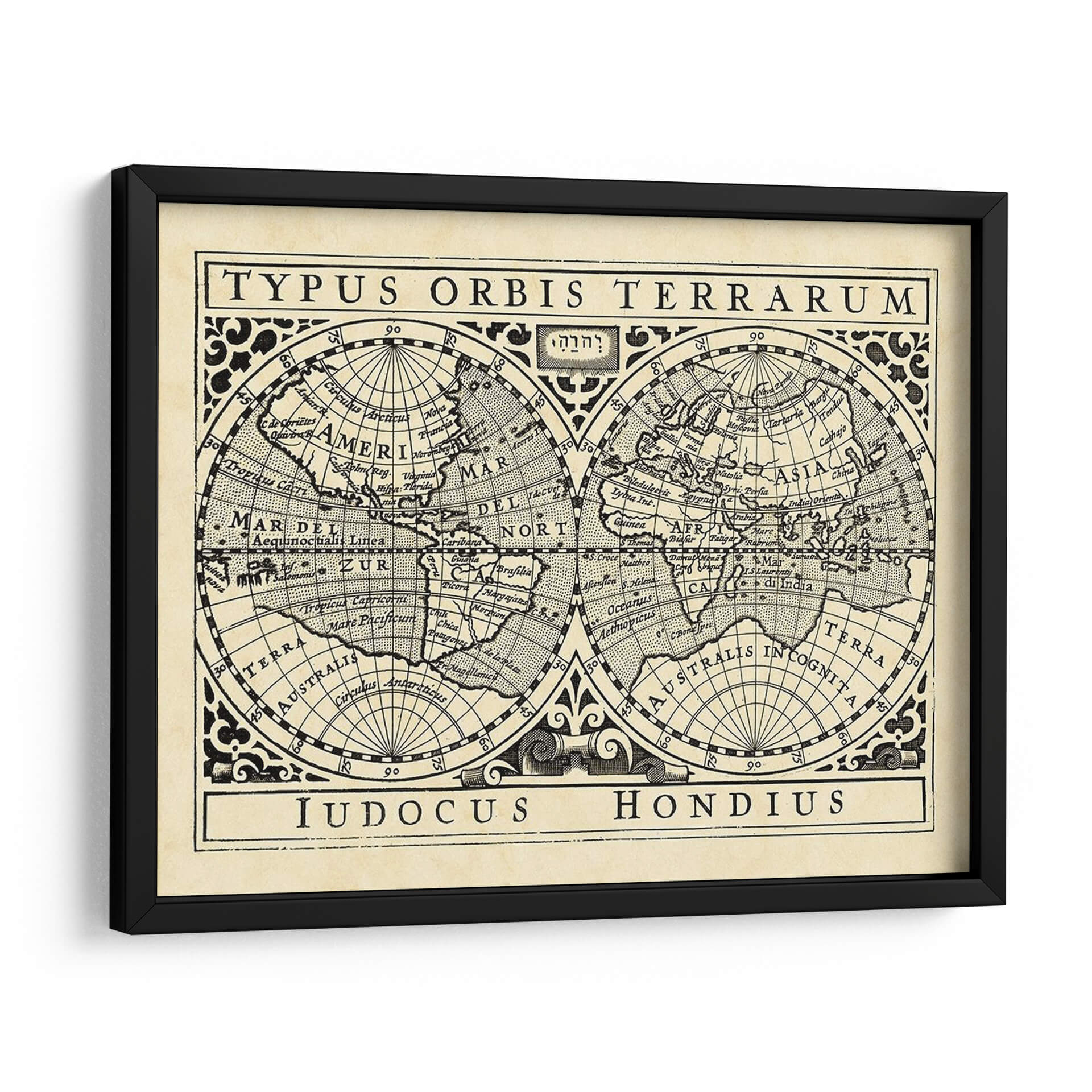 Sumérgete en la historia y la exploración con "Mapas Vintage I", una obra de arte que captura la esencia de la cartografía antigua. Este cuadro decorativo presenta una recreación detallada de un mapa del mundo de estilo vintage, con un diseño clásico que evoca la era de los grandes descubrimientos. La paleta de colores neutros, dominada por tonos crema y negro, aporta una sensación de elegancia atemporal y sofisticación a cualquier espacio. La intrincada ilustración muestra continentes, océanos y rutas de navegación, invitando a la contemplación y al viaje imaginario. Ideal para aulas, estudios, oficinas o salones que busquen un toque de conocimiento geográfico y un aire de aventura intelectual. Su estilo gráfico y su composición simétrica lo convierten en una pieza versátil, perfecta para complementar decoraciones tradicionales o modernas, añadiendo un punto de interés educativo y estético. Este cuadro decorativo es una invitación a redescubrir el mundo a través de una lente histórica.