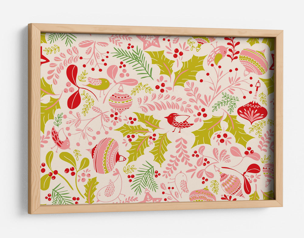 Sumérgete en la alegría festiva con este encantador cuadro decorativo, una explosión de color y encanto que evoca la calidez de las celebraciones. La obra presenta un patrón ditsy vibrante, lleno de elementos botánicos como hojas de acebo, bayas rojas y ramas delicadas, entrelazados con adorables pájaros en tonos pastel y adornos navideños de ensueño en rosa y rojo. La paleta de colores, dominada por el rosa, el rojo y el verde sobre un fondo crema suave, crea una atmósfera alegre y acogedora, perfecta para infundir espíritu festivo en cualquier estancia. Su estilo es una mezcla encantadora de lo clásico y lo contemporáneo, con un toque lúdico que captura la imaginación. Este cuadro decorativo es ideal para dar vida a un salón, añadir un toque de color a una cocina o crear un rincón acogedor en un dormitorio. Es una pieza que celebra la temporada y el arte, diseñada para ser el centro de atención y generar conversaciones. Transforma tu hogar en un santuario de alegría y estilo con esta obra maestra festiva, perfecta para quienes buscan añadir un toque de magia y sofisticación a su decoración.
