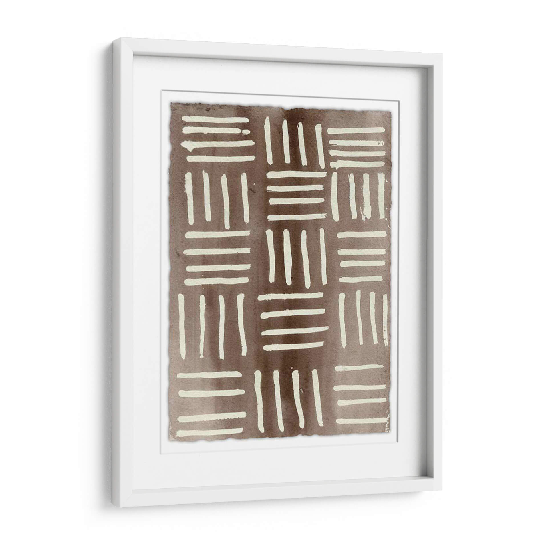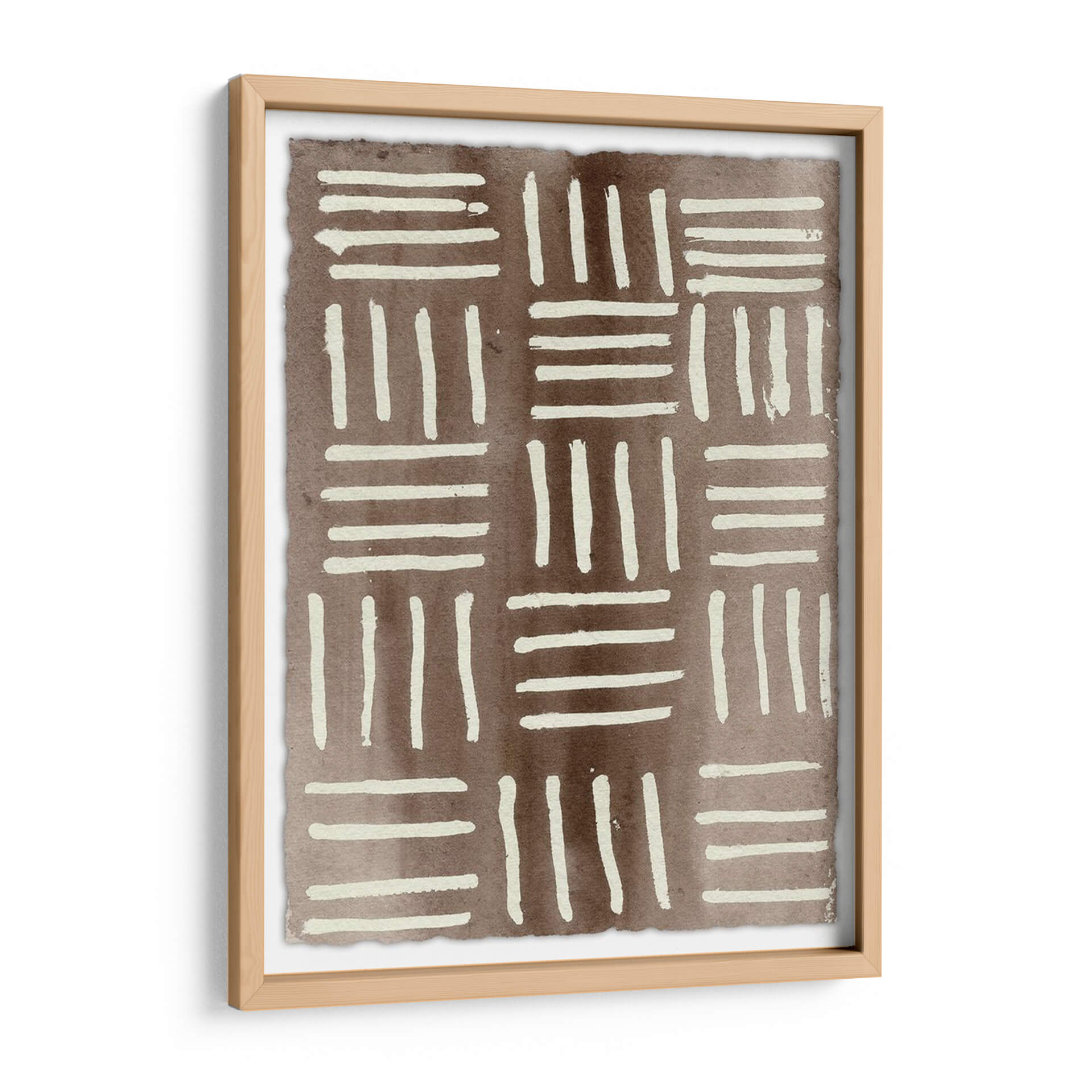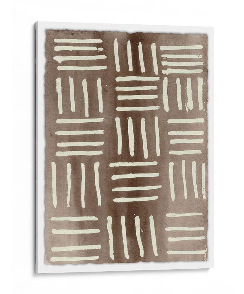 Sumérgete en la serenidad y el misterio de "Marcas Ancestrales II" de Regina Moore, una obra de arte abstracto que evoca la esencia de patrones tribales y la calidez de la tierra. Esta pieza se distingue por su paleta de colores terrosos, dominada por un rico tono marrón de fondo, sobre el cual se dibujan delicados trazos en un tono crudo o beige claro. La composición se basa en un patrón geométrico repetitivo de líneas paralelas cortas, dispuestas en una cuadrícula que sugiere texturas orgánicas y una conexión con lo ancestral. La técnica, que aparenta ser acuarela o tinta sobre un fondo texturizado, aporta una cualidad artesanal y única, creando un efecto visual sutil y elegante. "Marcas Ancestrales II" es ideal para espacios que buscan transmitir calma, autenticidad y un toque de sofisticación natural. Perfecta para salones, dormitorios o estudios que deseen un punto focal de diseño orgánico y contemporáneo, esta obra dialoga con estilos decorativos modernos, bohemios o minimalistas, añadiendo profundidad y carácter sin abrumar. Descubre la belleza atemporal de los diseños inspirados en la naturaleza y la cultura con este cuadro decorativo que invita a la contemplación.