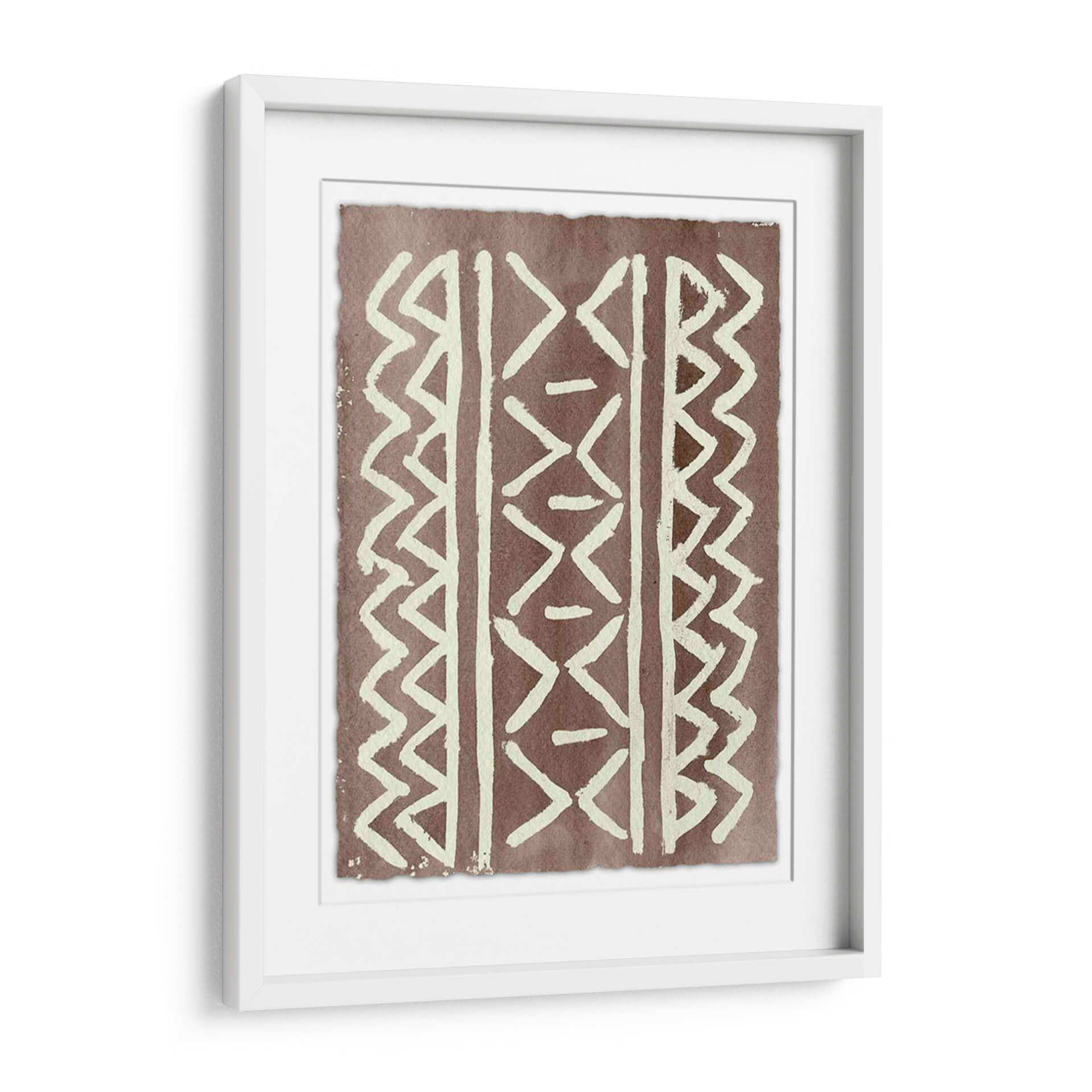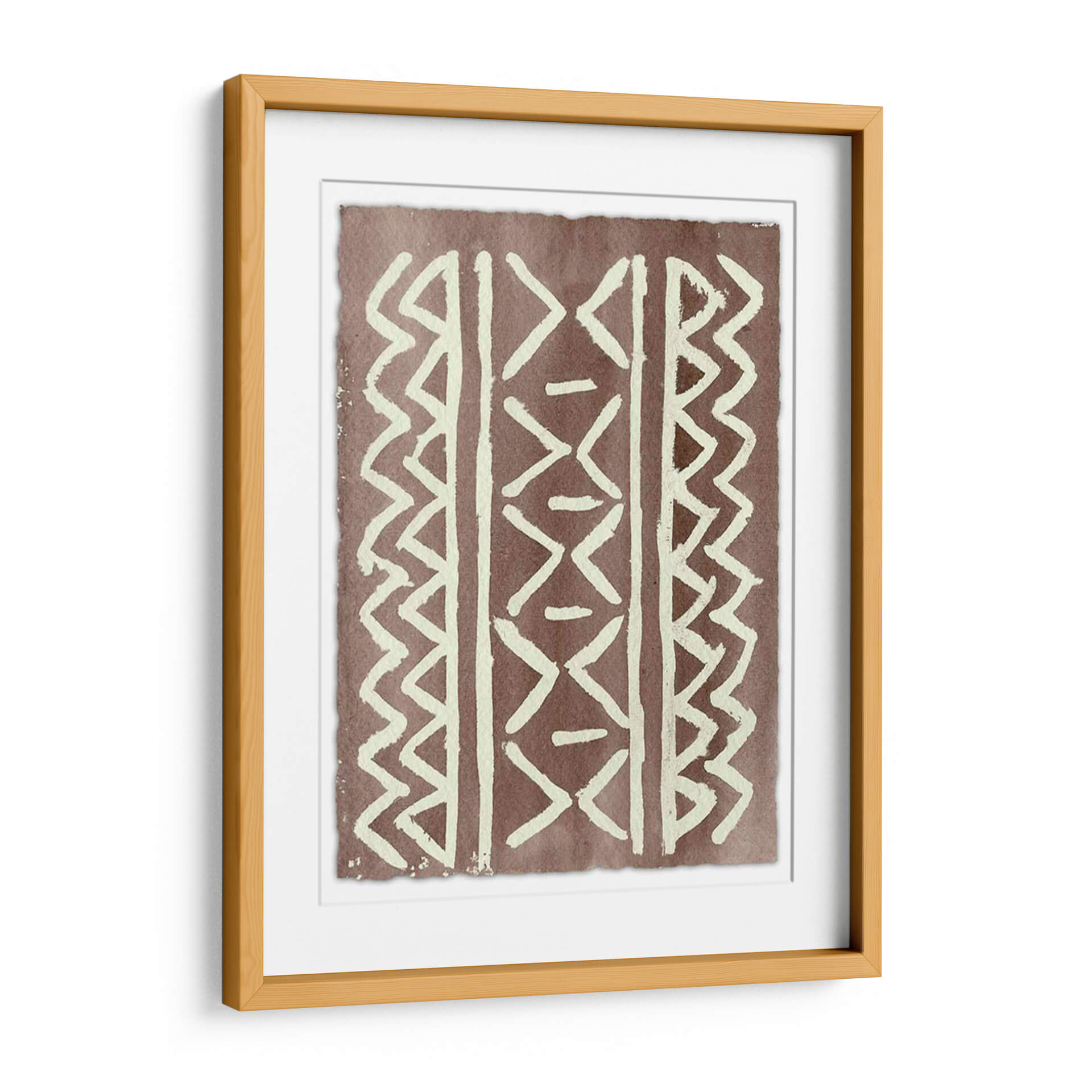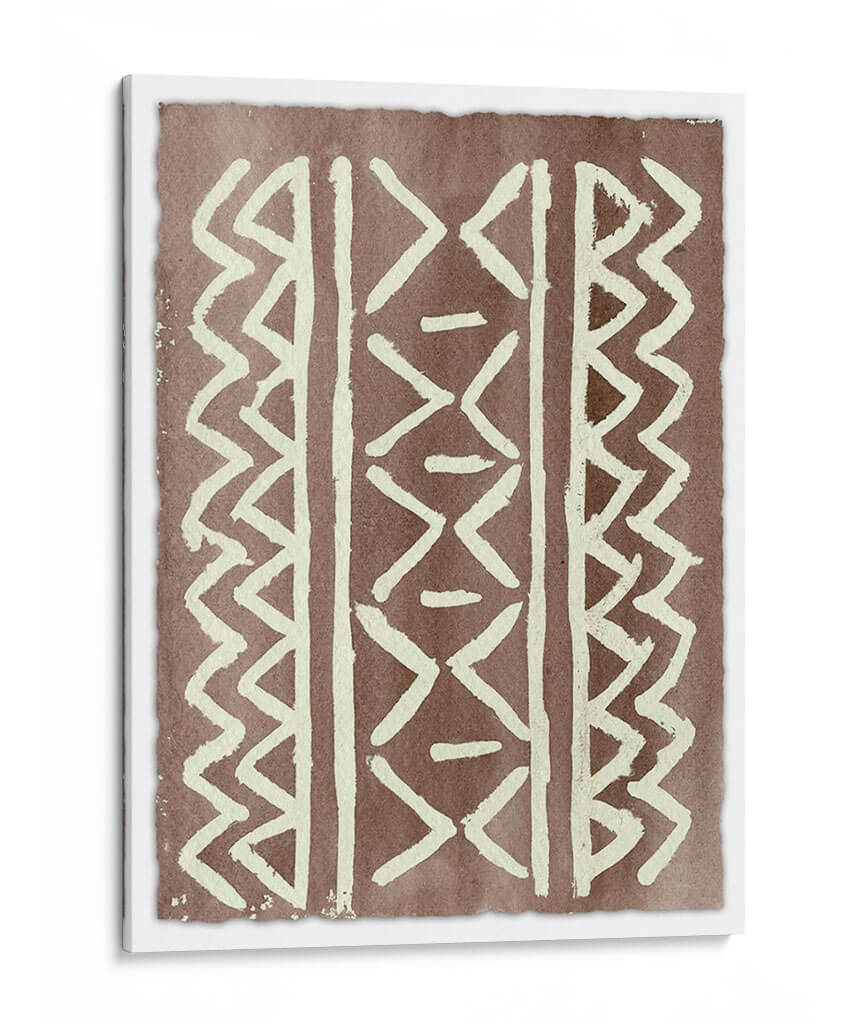 Sumérgete en la rica estética de "Marcas Ancestrales Iv", una cautivadora obra de arte de Regina Moore que evoca la profundidad y el misterio de las tradiciones antiguas. Este cuadro decorativo presenta un patrón tribal abstracto en tonos tierra, donde líneas gruesas de color crema se entrelazan sobre un fondo marrón rojizo, creando un contraste sutil pero poderoso. La composición se centra en la repetición de formas geométricas, incluyendo zigzags pronunciados en los bordes y un diseño central de 'X' y líneas verticales, que sugieren un lenguaje visual ancestral y transmiten una sensación de orden y conexión con la historia. La atmósfera que irradia es de serenidad terrenal y una elegancia primitiva, perfecta para añadir un toque de sofisticación orgánica a cualquier espacio. Ideal para salones modernos, estudios o dormitorios, esta pieza se integra armónicamente en decoraciones de estilo bohemio, rústico o contemporáneo minimalista, aportando carácter y profundidad sin abrumar. Descubre la belleza atemporal de "Marcas Ancestrales Iv" y transforma tu hogar en un santuario de estilo y significado cultural.