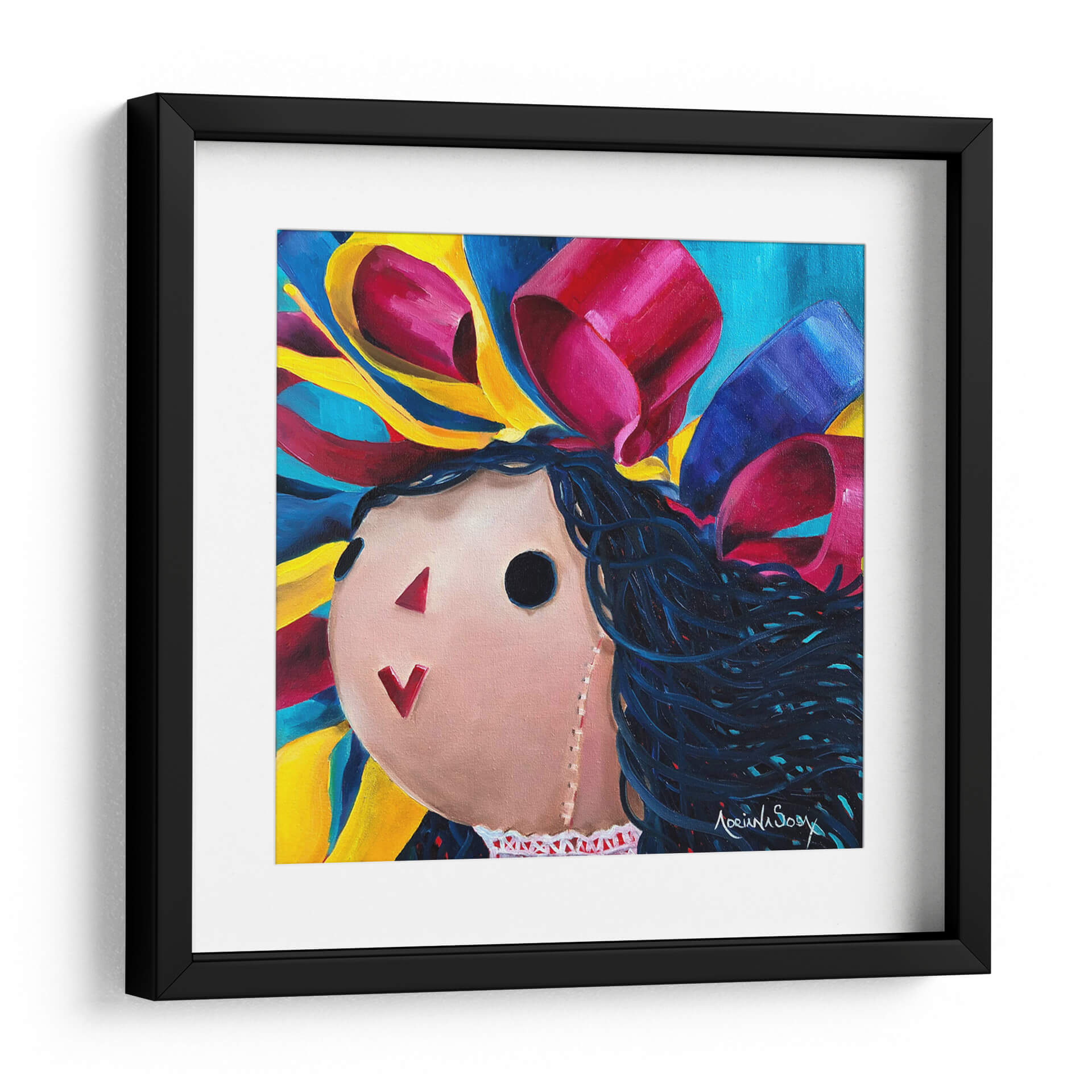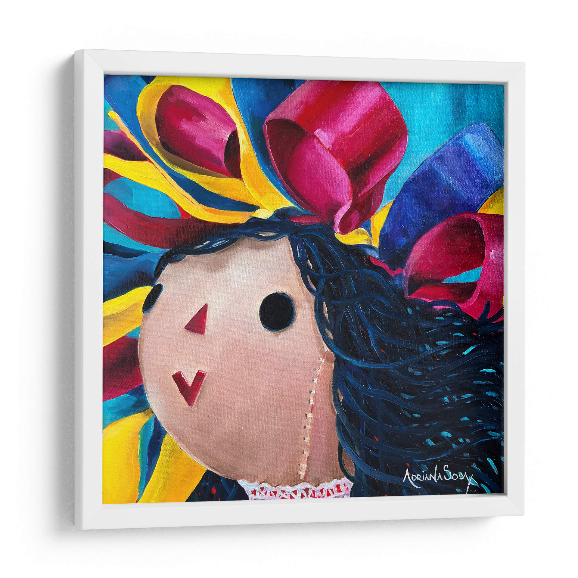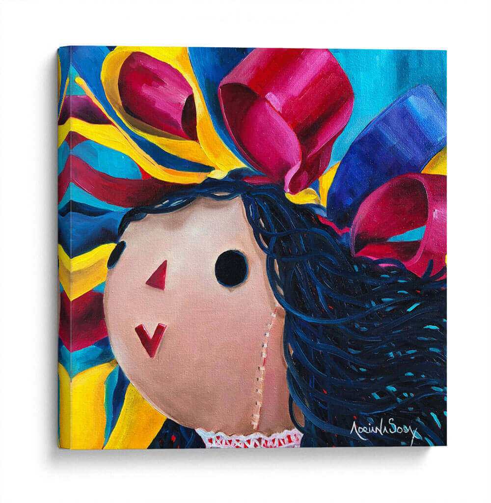 Sumérgete en la vibrante y nostálgica obra de Adriana Sosa, "María cambia de estilo", un cuadro decorativo que irradia alegría y dinamismo. Esta pieza cautiva con su representación estilizada de una figura infantil, evocando recuerdos de la niñez y la inocencia. La paleta de colores es un estallido de energía, con intensos azules, vibrantes amarillos y llamativos detalles en fucsia y carmesí que dan vida a los voluminosos lazos y al fondo abstracto. La técnica pictórica, con pinceladas audaces y una composición que fusiona elementos naíf con un toque contemporáneo, crea una atmósfera juguetona y llena de vida. "María cambia de estilo" es ideal para añadir un toque de color y personalidad a cualquier espacio, desde una sala de estar moderna hasta un dormitorio infantil o una oficina creativa. Su carácter único la convierte en un punto focal que despierta conversaciones y evoca emociones positivas. Descubre la magia de este cuadro decorativo y transforma tu hogar en un reflejo de tu espíritu vibrante y alegre.