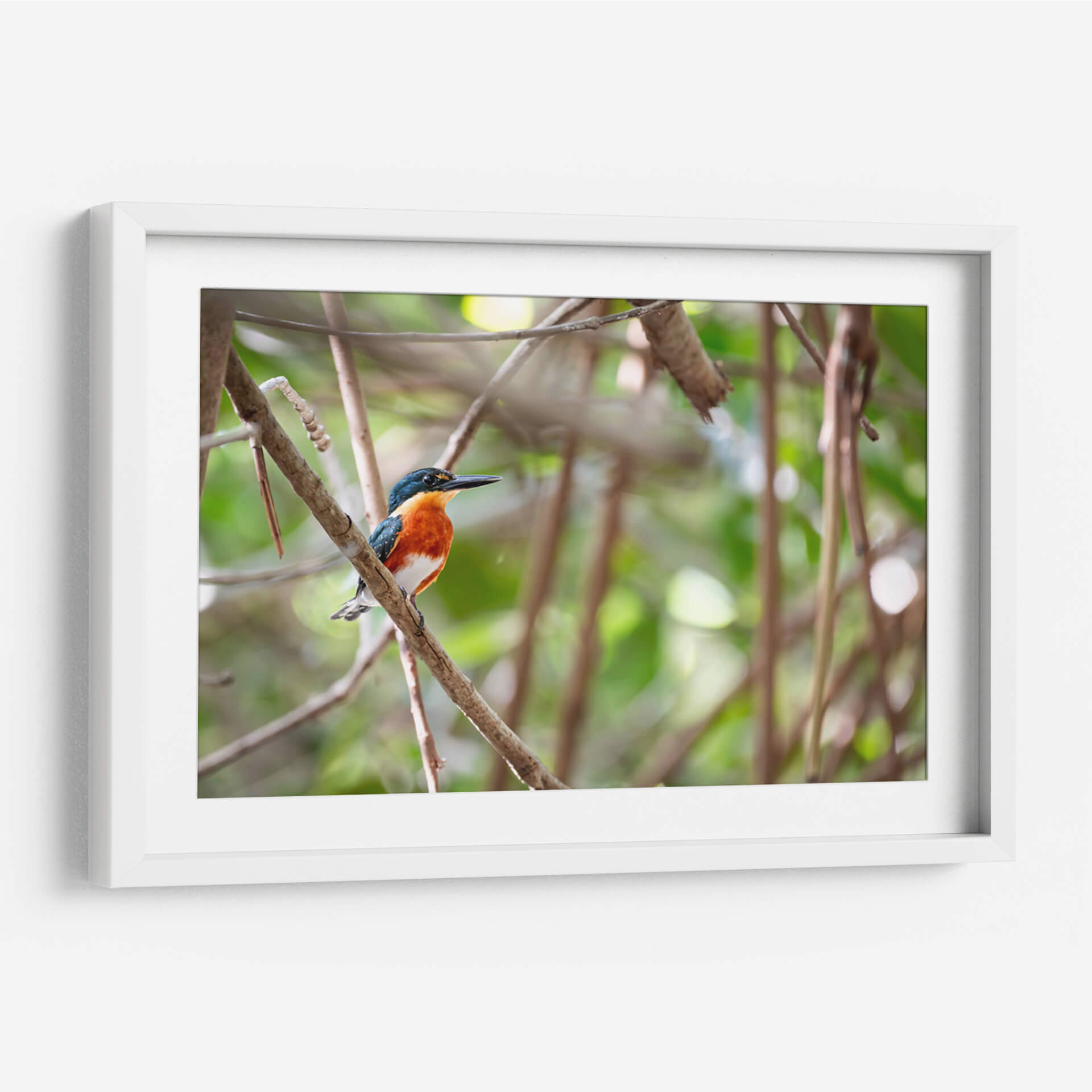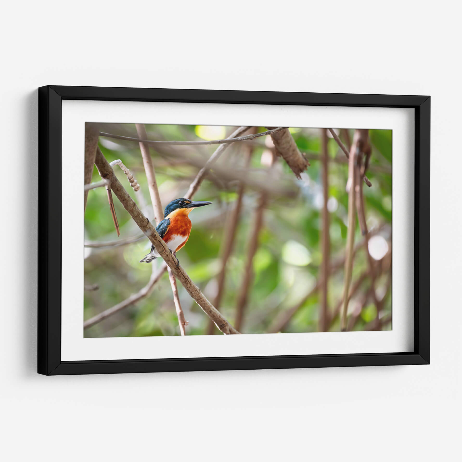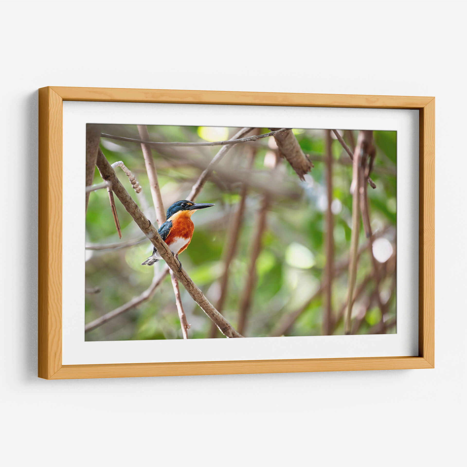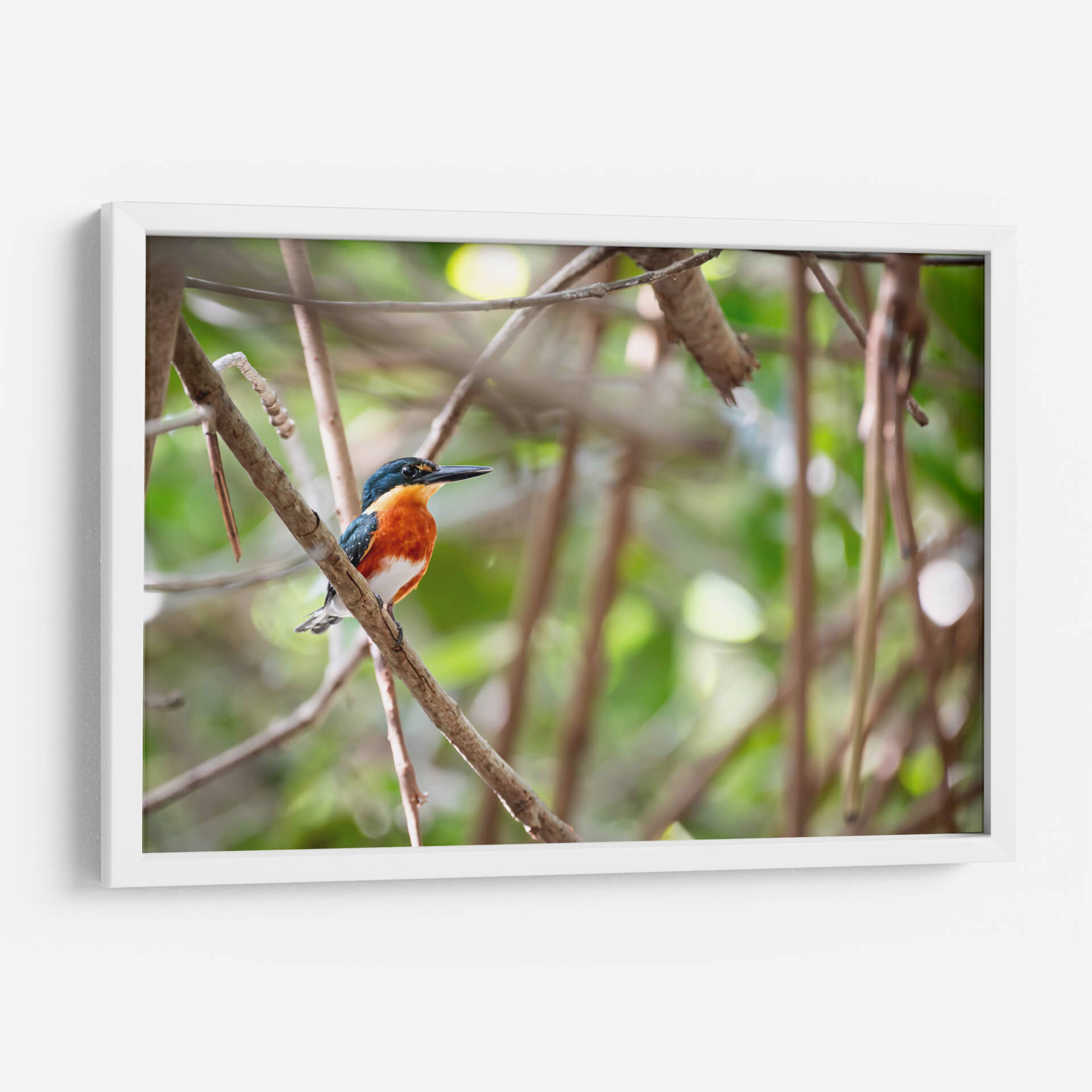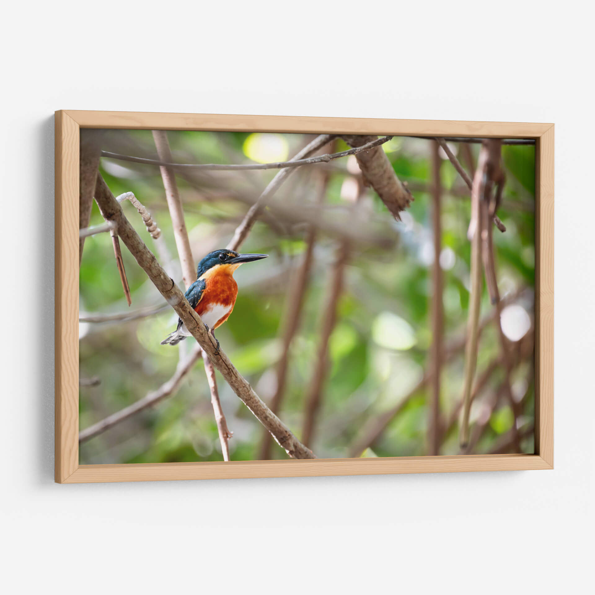 Captura la esencia de la naturaleza con este vibrante cuadro decorativo de Martín Pescador Enano, una obra que transporta la serenidad y la belleza del mundo natural directamente a tu hogar u oficina. La imagen presenta a un pequeño y exótico pájaro posado sobre una rama, con un plumaje que deslumbra por sus contrastantes tonos anaranjados, blancos y azules profundos. El fondo, difuminado con tonos verdes y ocres, crea una atmósfera de profundidad y realismo, evocando un rincón escondido de la selva o un hábitat fluvial tranquilo. La composición horizontal, con el ave ligeramente girada hacia la izquierda, invita a la contemplación y añade un dinamismo sutil a la escena. Esta pieza es ideal para aquellos que buscan infundir calma y un toque de vida salvaje en sus espacios, siendo perfecta para salas de estar, dormitorios o estudios donde se desee un punto de conexión con la fauna y la tranquilidad del entorno. La obra de Claudia Luna no solo decora, sino que también cuenta una historia de la naturaleza, invitando a la reflexión sobre su delicadeza y vitalidad.