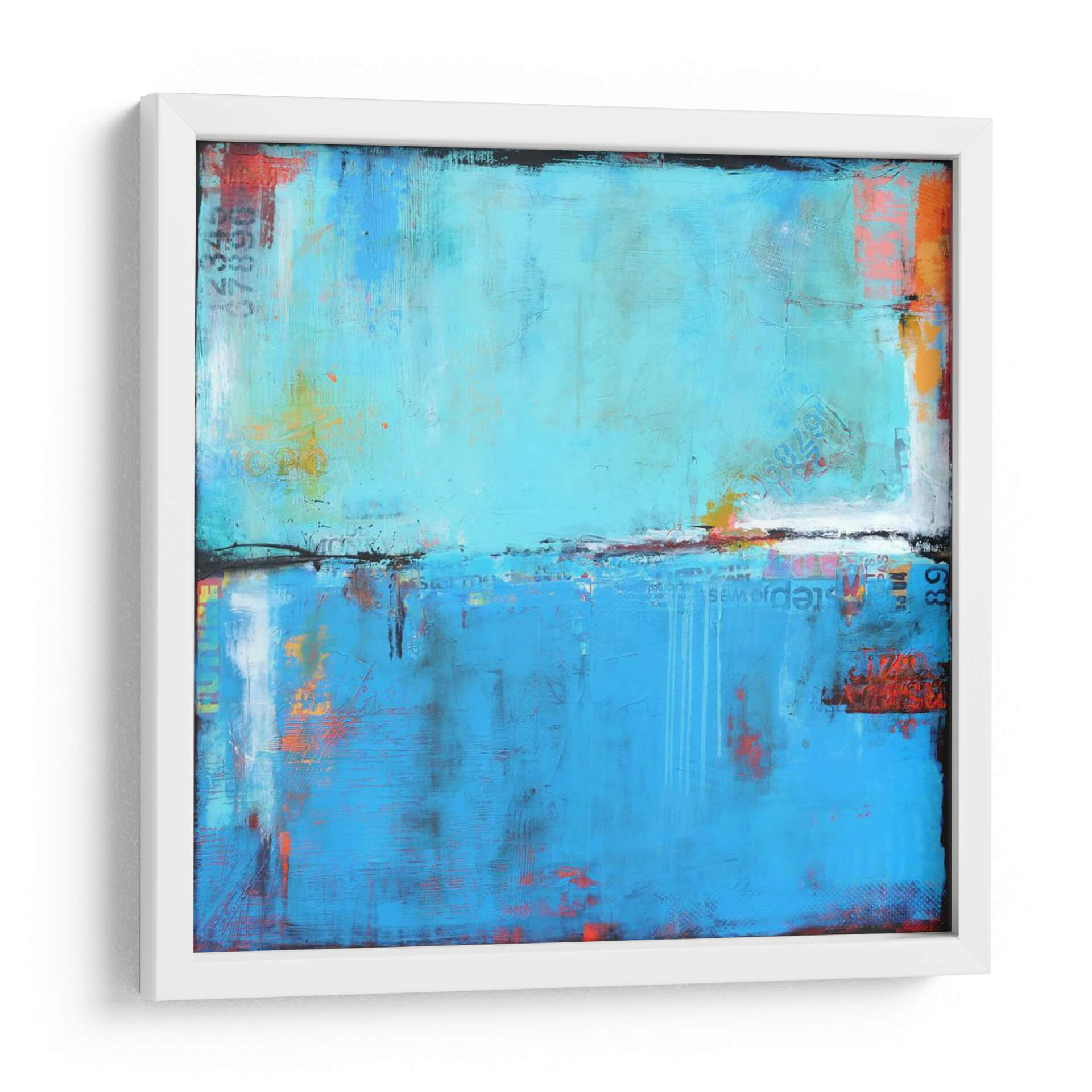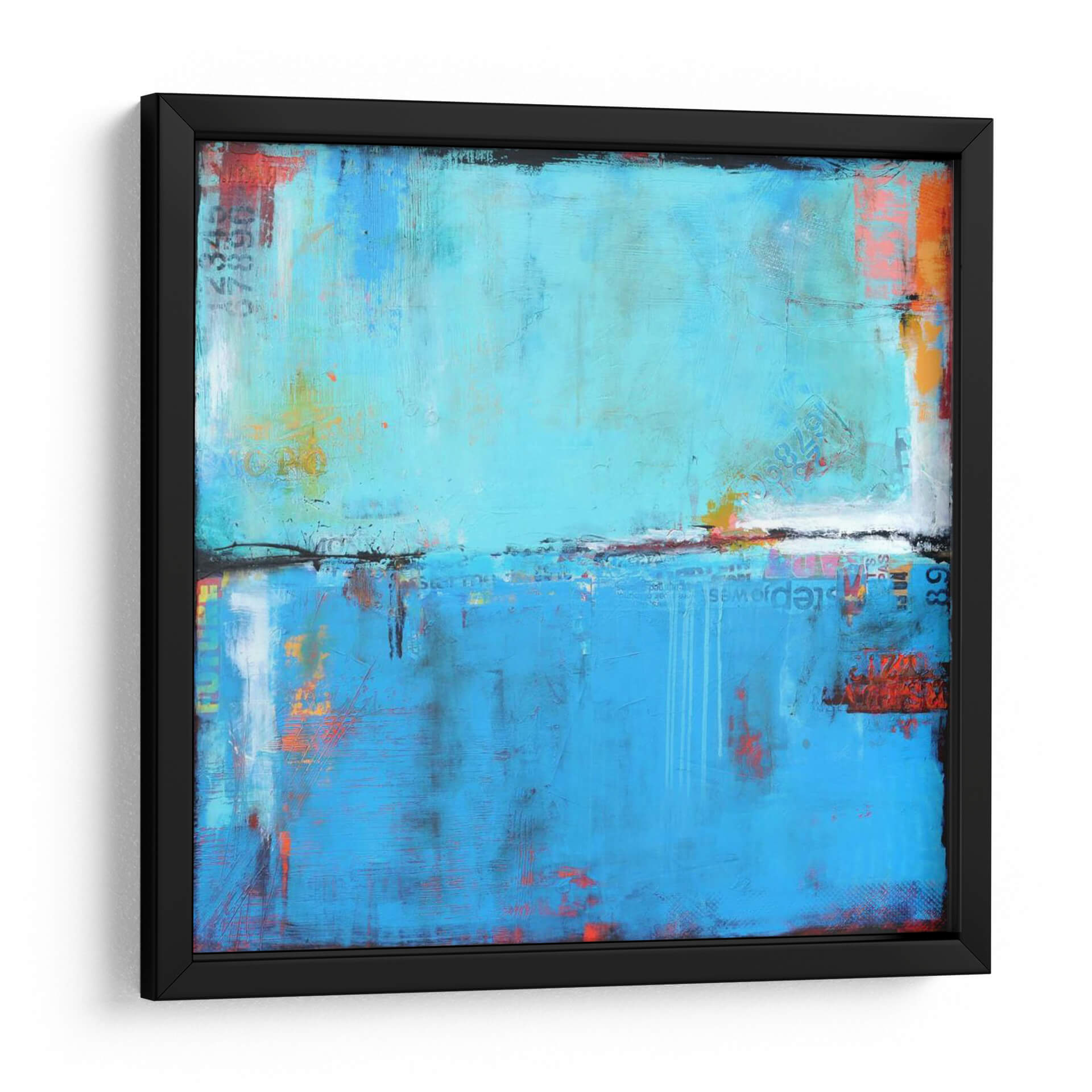 Sumérgete en la vibrante profundidad de 'Matchbox Blues 5', una obra de arte abstracto contemporáneo de Erin Ashley que evoca la serenidad del océano y la energía de los tonos vibrantes. Este cuadro decorativo presenta una cautivadora paleta de azules intensos, salpicada con toques de naranja, rojo y blanco, creando un contraste dinámico que atrae la mirada. La composición, dividida sutilmente por una línea horizontal que recuerda a un horizonte sereno, combina texturas ricas y elementos superpuestos, incluyendo sutiles impresiones de texto, que añaden una capa de intriga y profundidad. La técnica mixta y el estilo expresivo de Ashley infunden a la pieza una cualidad táctil, invitando a la contemplación. 'Matchbox Blues 5' es ideal para transformar cualquier espacio, desde una sala de estar moderna hasta un tranquilo dormitorio o una oficina inspiradora. Su carácter abstracto permite una interpretación personal, convirtiéndolo en un punto focal versátil que aporta calma y sofisticación. Añade un toque de arte contemporáneo a tu hogar con esta pieza única que fusiona la contemplación con una explosión de color.