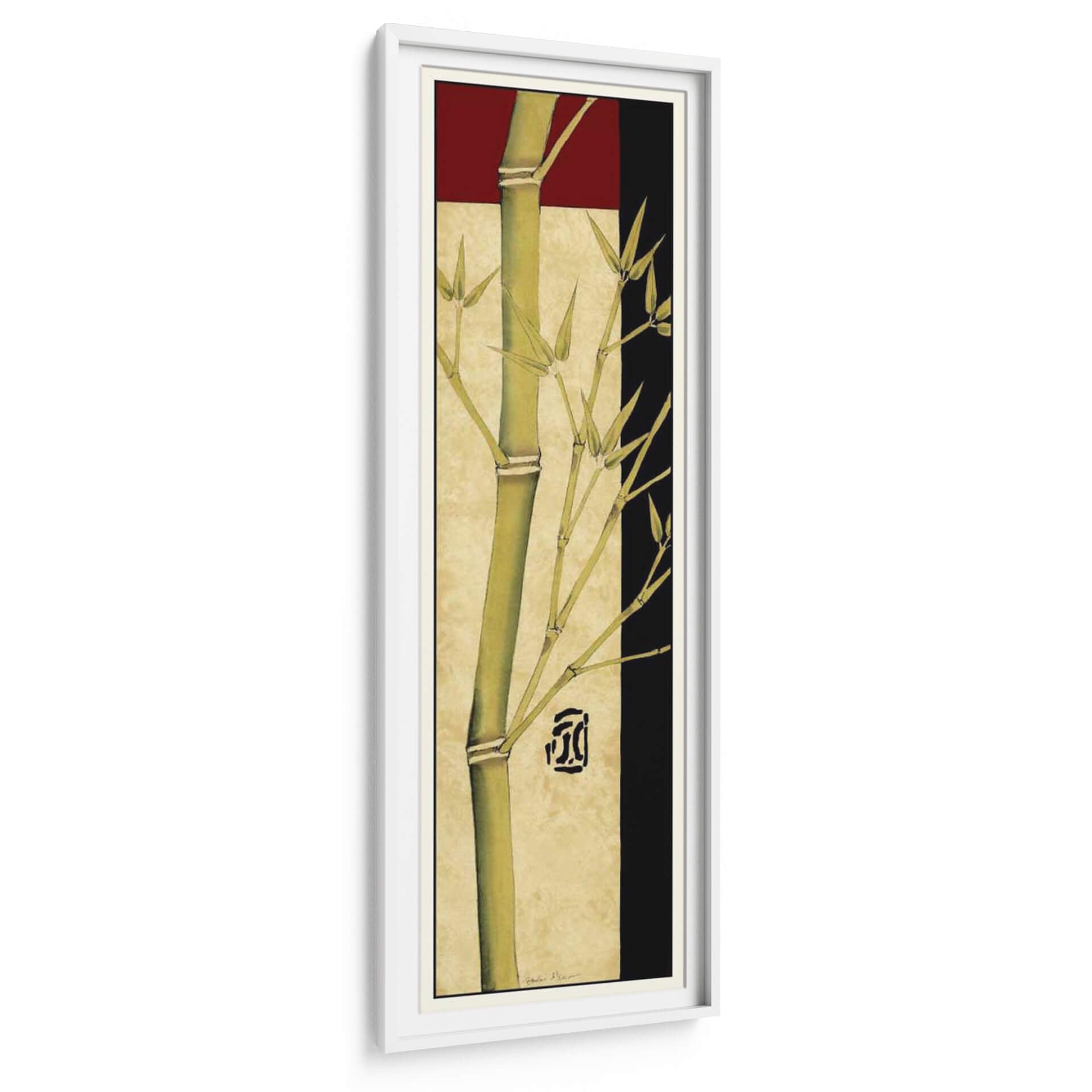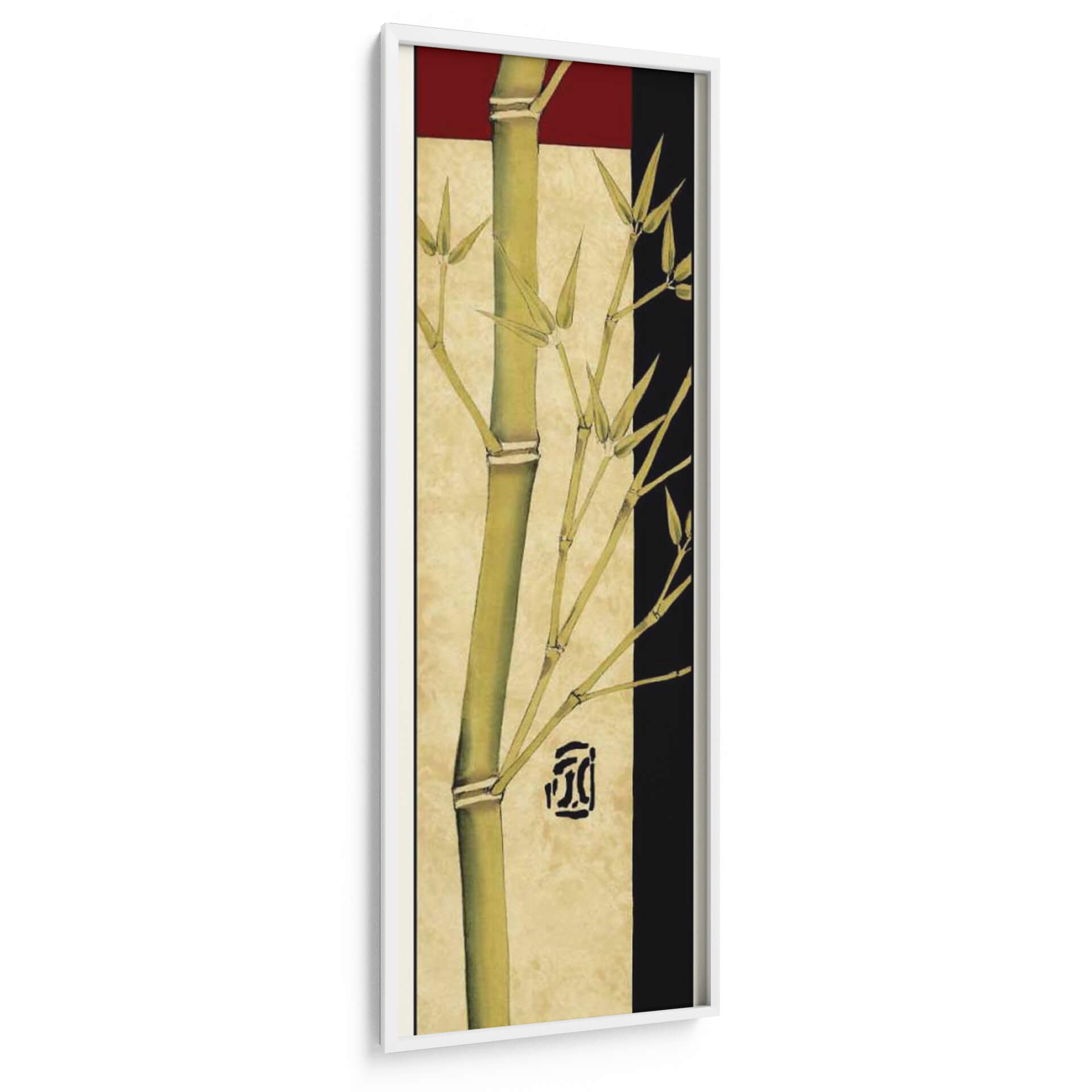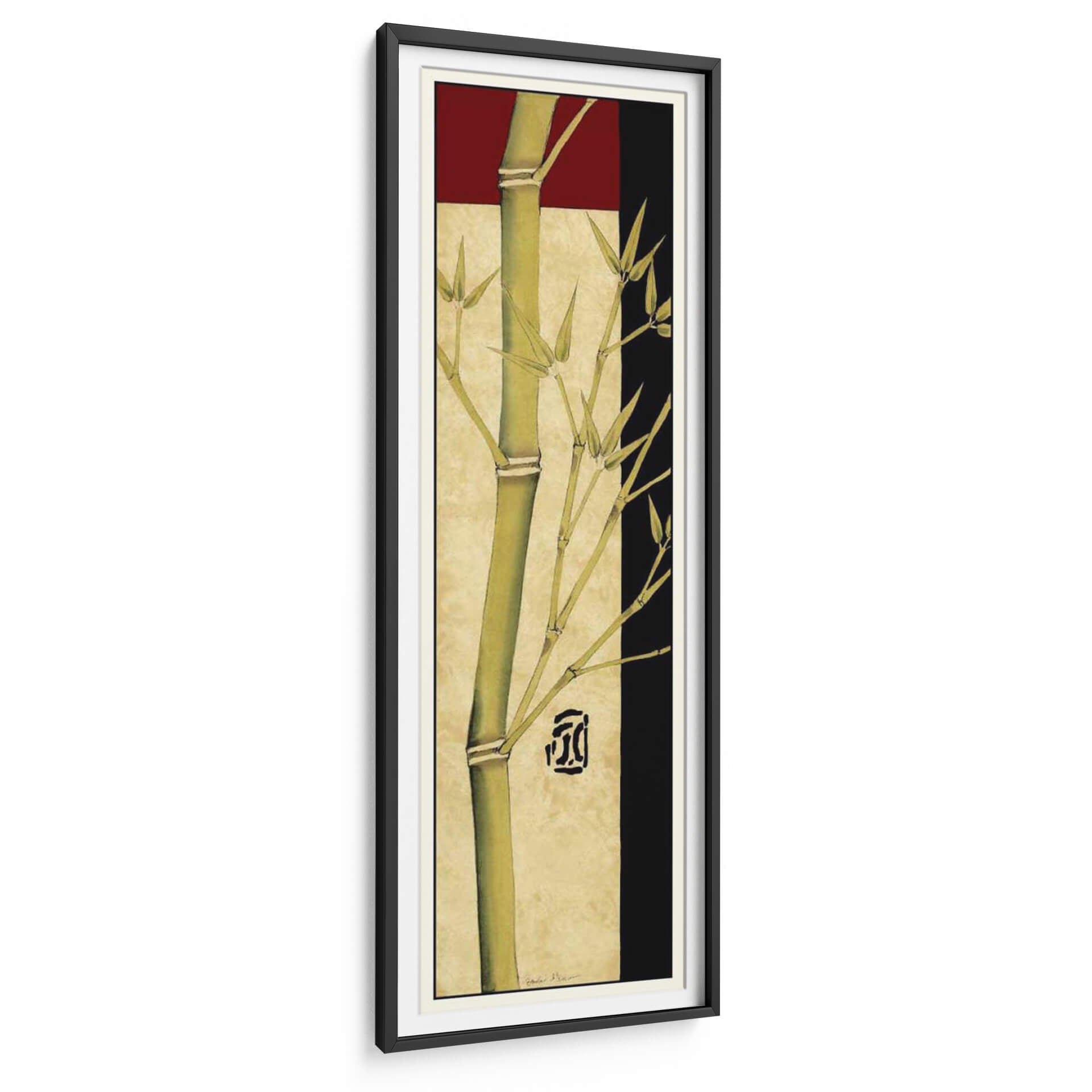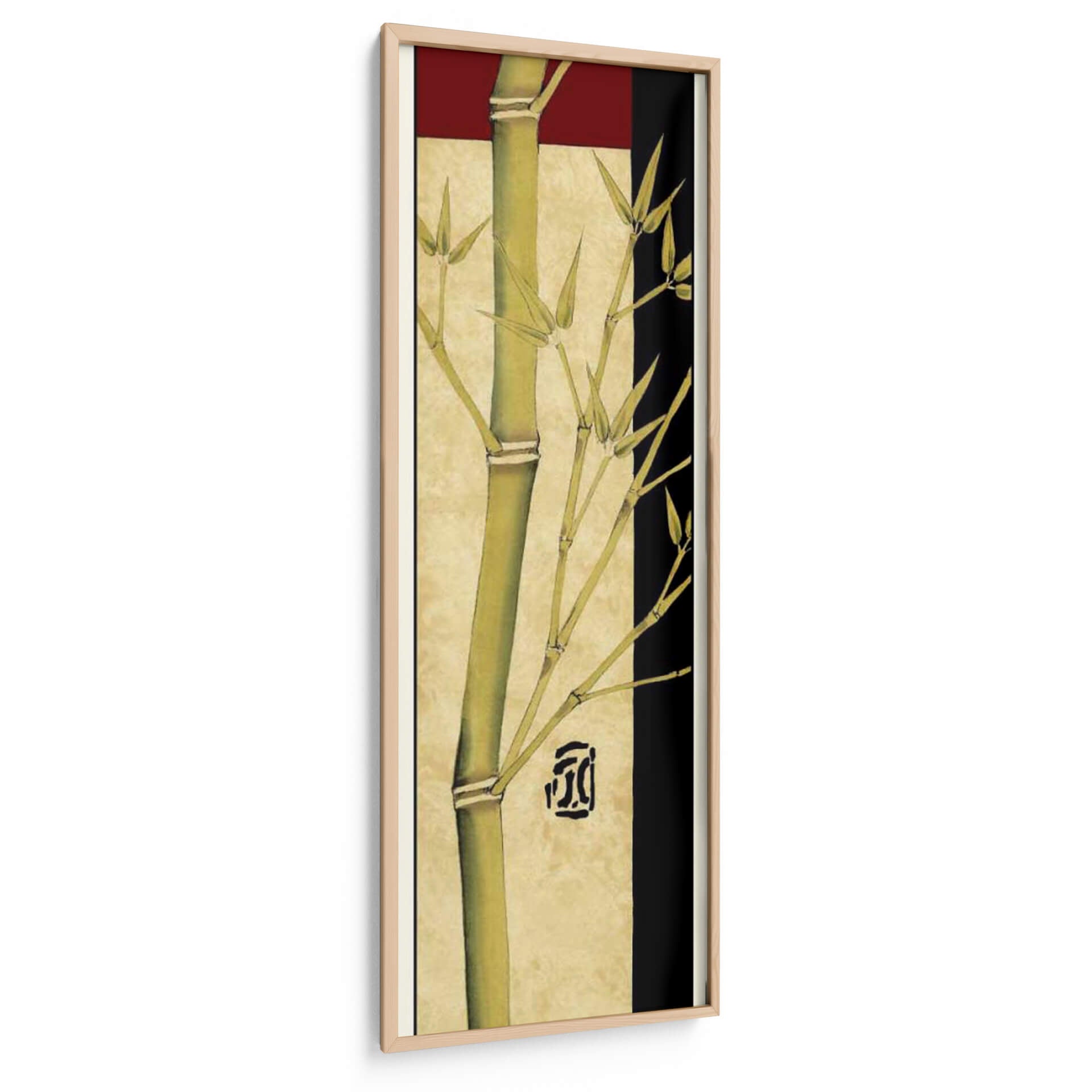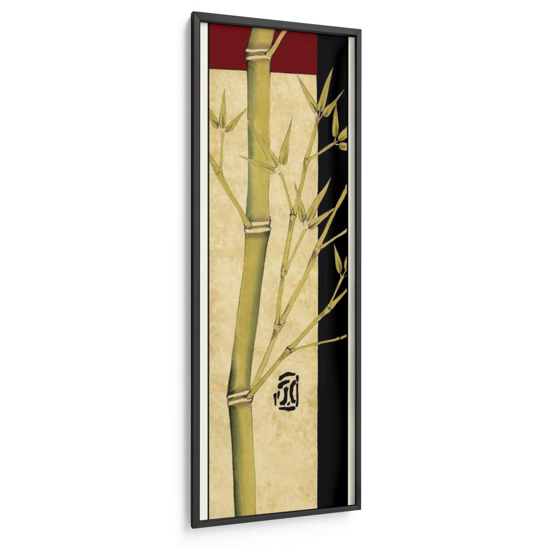 Sumérgete en la serenidad y la elegancia natural con nuestro cuadro decorativo "Meditación De Bambú Panel I", una obra maestra de Jennifer Goldberger. Esta pieza evoca la calma y la pureza de la naturaleza a través de su detallada representación de tallos de bambú verde vibrante sobre un fondo texturizado en tonos tierra y contrastes de rojo y negro. La composición vertical y estilizada crea una sensación de ascensión y equilibrio, perfecta para infundir tranquilidad en cualquier espacio. Los sutiles matices de verde, beige y ocre, junto con los bloques de color sólido, aportan un toque moderno y sofisticado que complementa una amplia gama de estilos decorativos, desde el minimalista hasta el oriental. Ideal para tu sala de estar, dormitorio o estudio, este cuadro decorativo es una invitación a la meditación y la contemplación, transformando tu hogar en un santuario de paz y armonía. Descubre la belleza atemporal del bambú y deja que esta obra de arte inspire momentos de introspección y serenidad diaria. Un elemento decorativo que no solo embellece, sino que también eleva el espíritu.