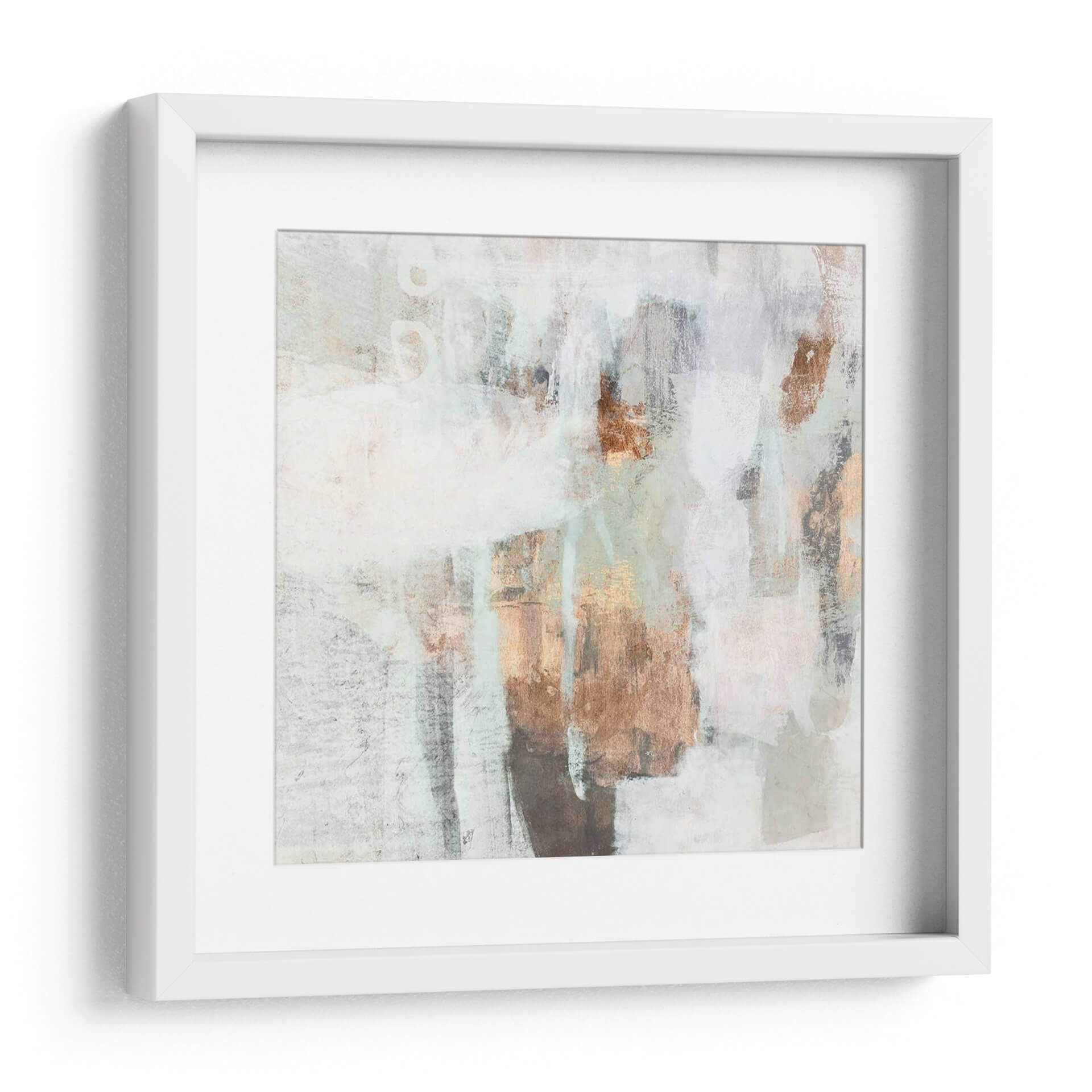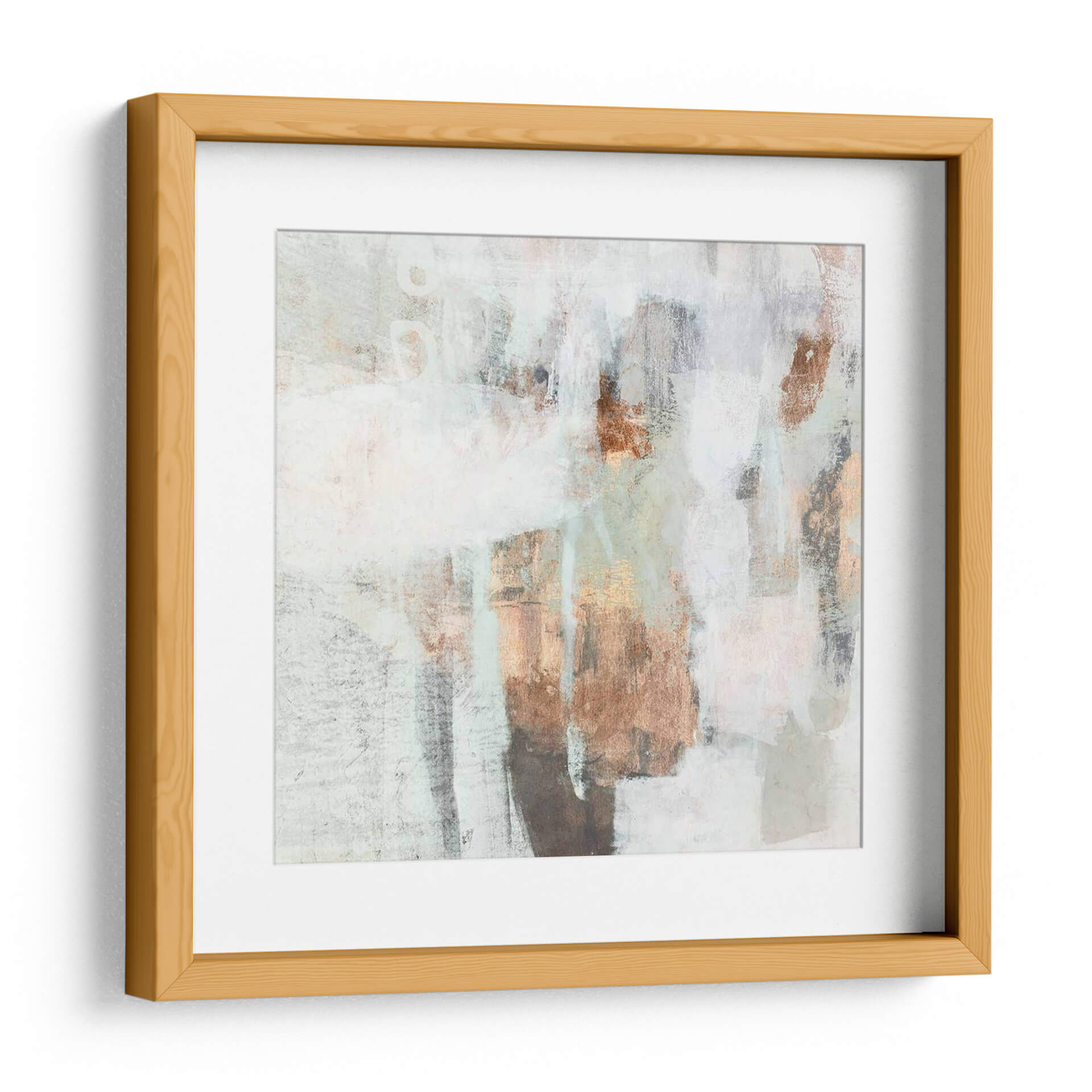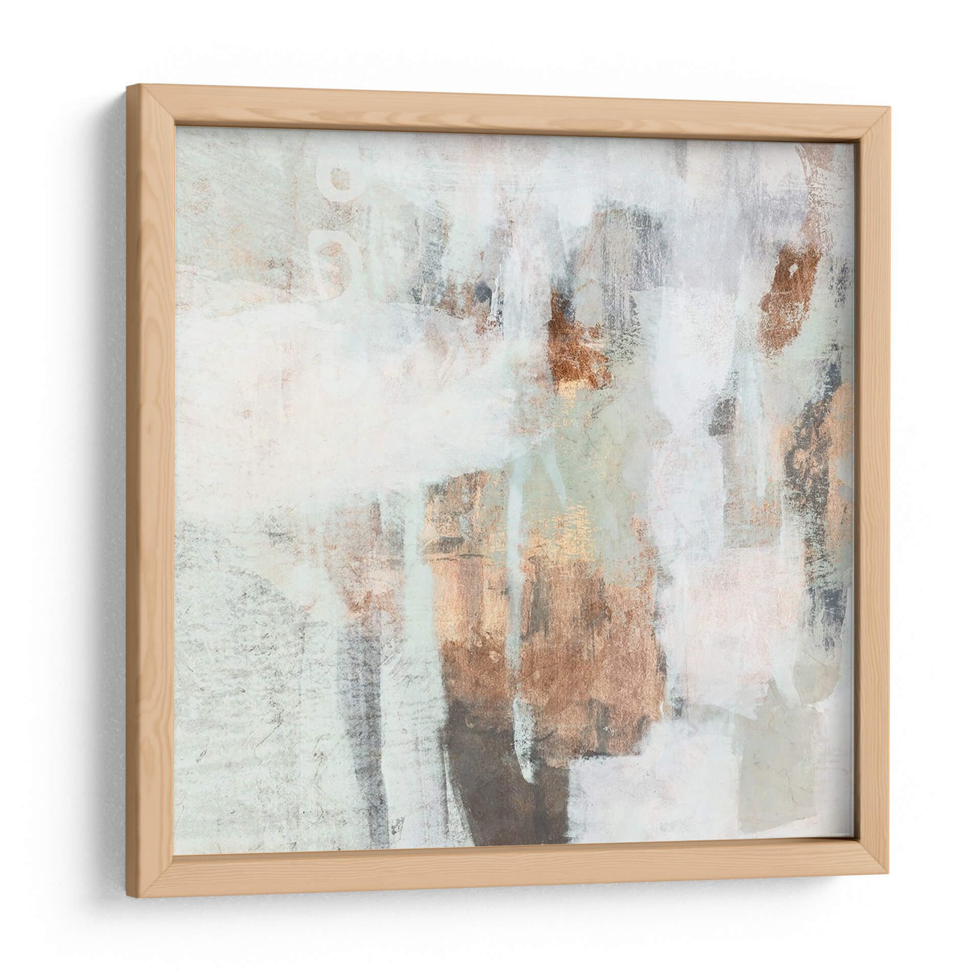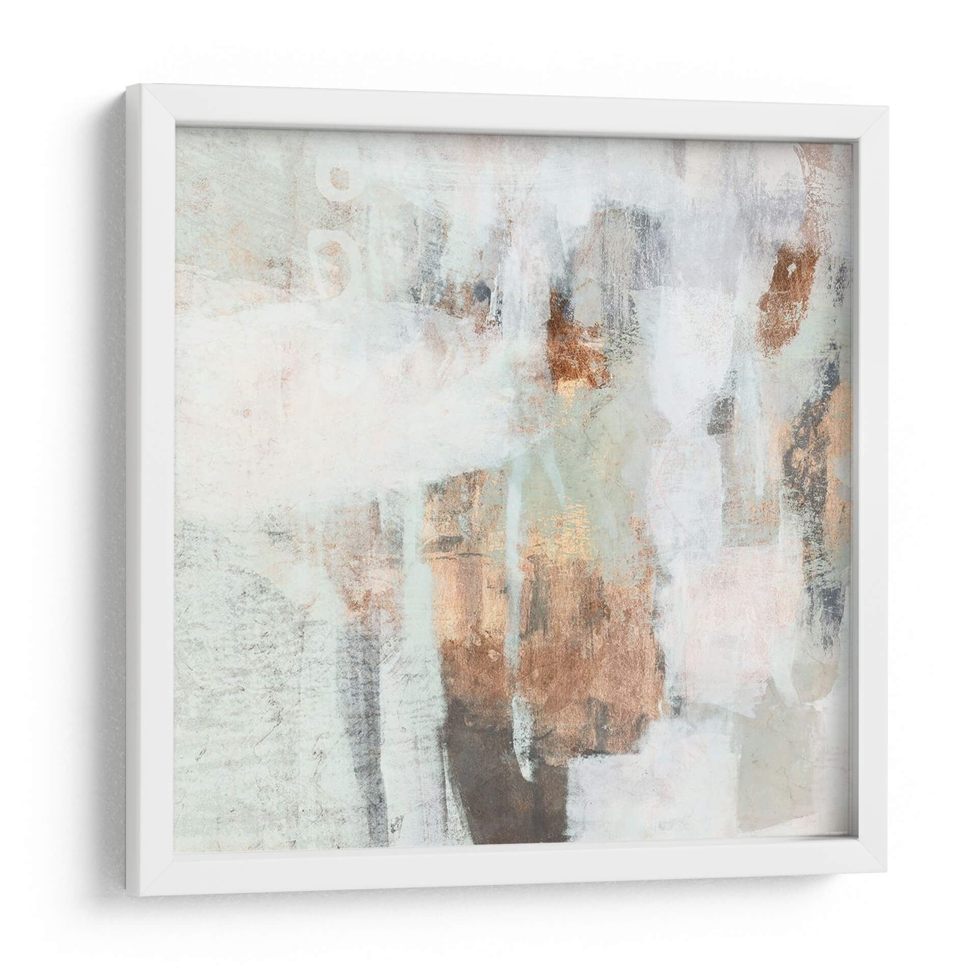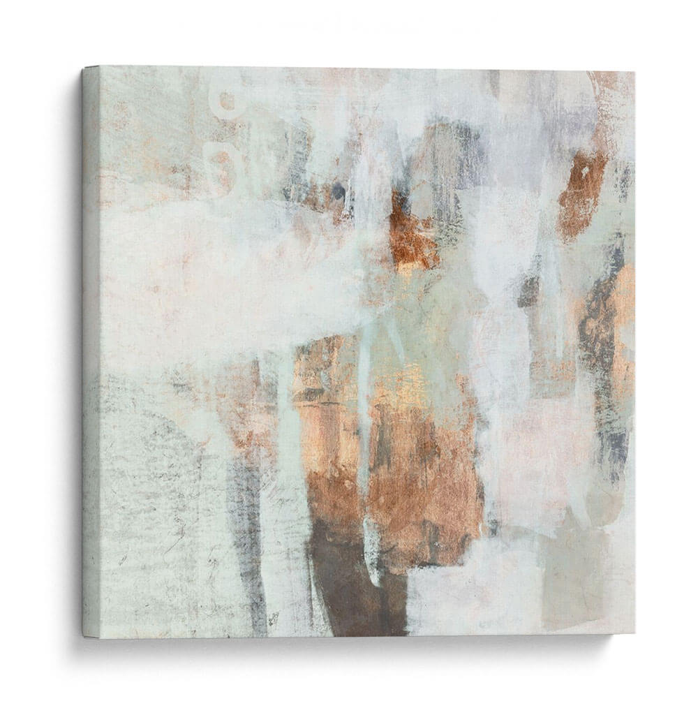 Sumérgete en la serenidad etérea de "Menta Bruñida Yo", una obra de arte abstracto contemporáneo que evoca una atmósfera de calma y reflexión. La pieza se caracteriza por su composición texturizada y la delicada interacción de colores. Predominan los tonos suaves de blanco roto y gris pálido, que se entrelazan con vetas de un verde menta apagado y toques sutiles de cobre bruñido y dorado. Estas tonalidades crean una sensación de profundidad y un brillo sutil, aportando una elegancia discreta a cualquier espacio. Las pinceladas parecen gestuales, con capas superpuestas que sugieren movimiento y espontaneidad, pero que a la vez mantienen un equilibrio visual armonioso. Es un cuadro decorativo que no impone, sino que invita a la contemplación, perfecto para añadir un toque de sofisticación sutil a un salón moderno, un dormitorio o una oficina que busque transmitir paz y creatividad. Su diseño abstracto permite que se integre fluidamente en diversas decoraciones, convirtiéndose en un punto focal inspirador sin abrumar.