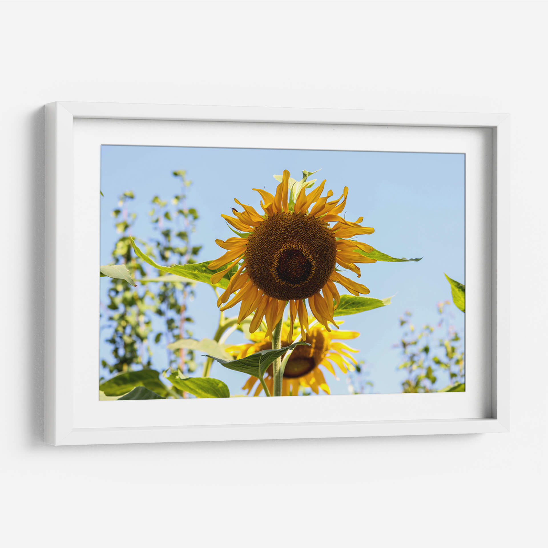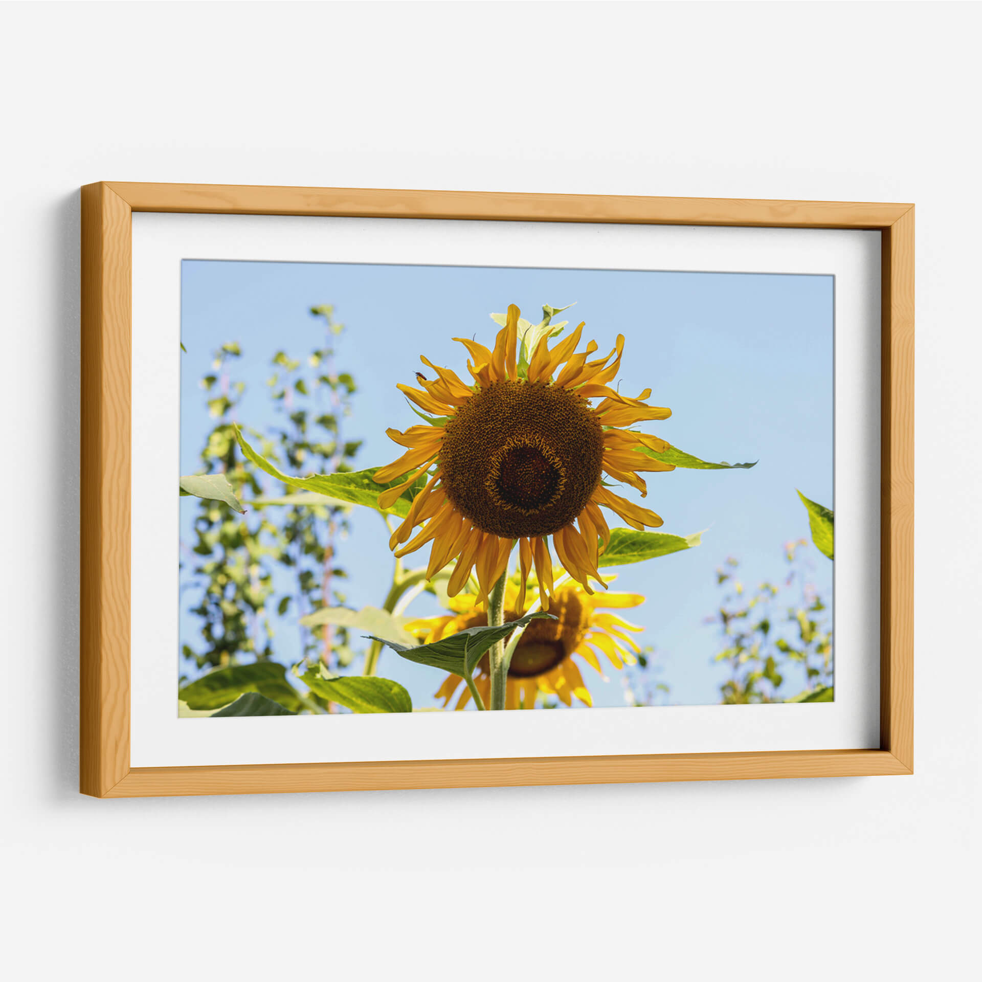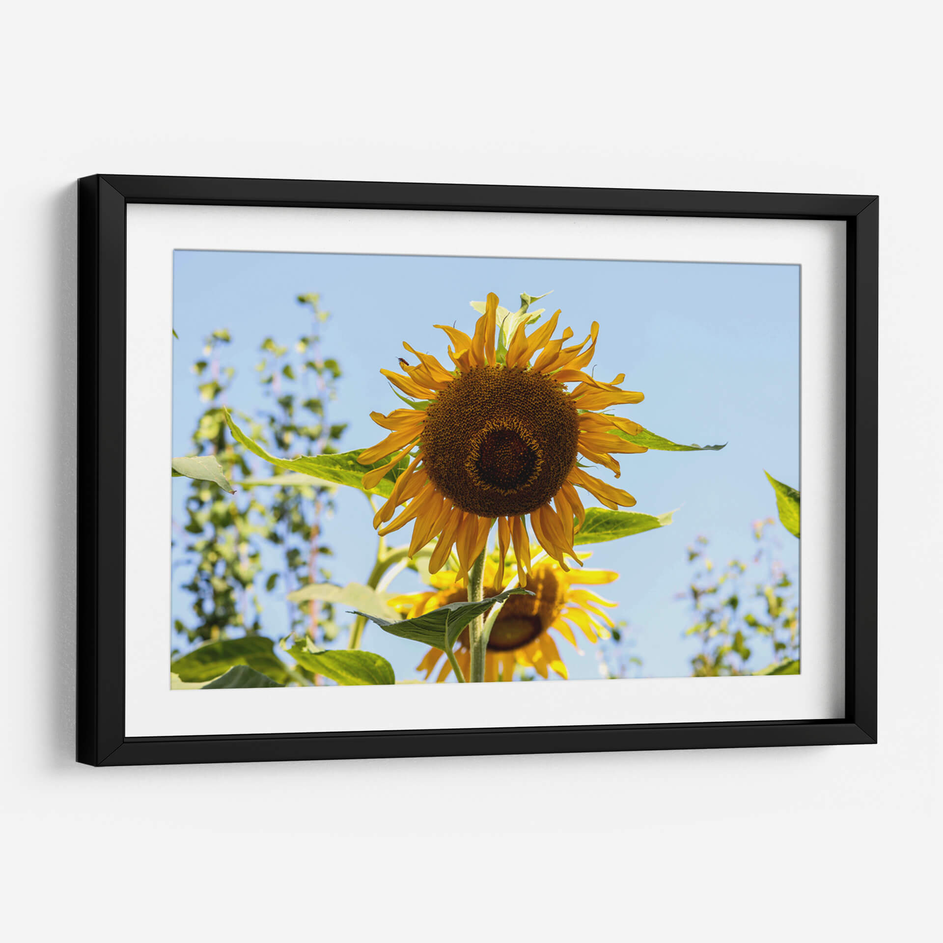 Captura la esencia del verano y la vitalidad con "Mira Mirasol", una obra de arte que celebra la majestuosidad de los girasoles. Esta pieza fotográfica, con un enfoque cercano y nítido en una flor radiante bajo un cielo azul despejado, irradia alegría y calidez. Los pétalos dorados y el centro oscuro del girasol principal crean un contraste visual cautivador, mientras que las hojas verdes vibrantes y el fondo ligeramente desenfocado de otras flores y follaje añaden profundidad y contexto. El estilo fotográfico resalta la textura y la forma natural de la flor, evocando una sensación de paz y conexión con la naturaleza. "Mira Mirasol" es perfecta para añadir un toque de optimismo y luz a cualquier espacio, ya sea una sala de estar, un dormitorio o una oficina. Su paleta de colores brillantes y su composición centrada en la belleza botánica la convierten en una adición inspiradora para aquellos que buscan infundir energía positiva y un recordatorio de los días soleados en su decoración.
