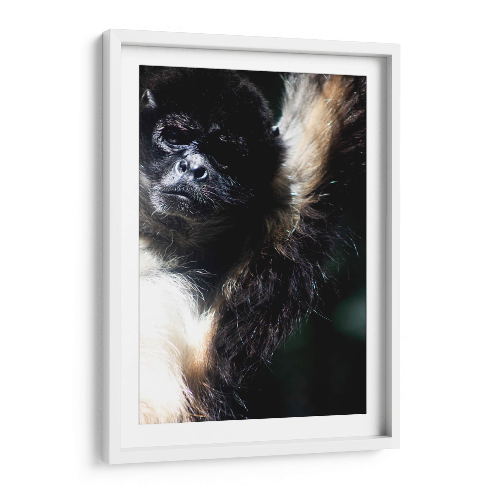 Sumérgete en la cautivadora 'Mirada Animal' de Paulo Ávila, una obra de arte que captura la esencia salvaje y la profundidad de la conexión con la naturaleza. Este cuadro decorativo presenta un primer plano íntimo de un mono araña, cuyos ojos penetrantes parecen reflejar una inteligencia ancestral y una profunda introspección. La paleta de colores se centra en tonos oscuros y terrosos, con contrastes sutiles entre el pelaje negro azabache y las áreas más claras y cremosas, creando una atmósfera de misterio y realismo crudo. La composición, centrada en el rostro del animal, invita a una contemplación pausada, resaltando la textura detallada de su pelaje y la expresividad de su mirada. Ideal para los amantes de la fauna y el arte que busca evocar emociones primarias, esta pieza es perfecta para añadir un toque de sofisticación naturalista a cualquier espacio, ya sea una sala de estar moderna, un estudio personal o una oficina que busque inspirar reflexión y un vínculo con el mundo natural. Deja que la mirada de esta criatura te hable y transforme tu entorno con su presencia magnética y salvaje. Una pieza que trasciende la decoración para convertirse en una ventana a la vida salvaje.