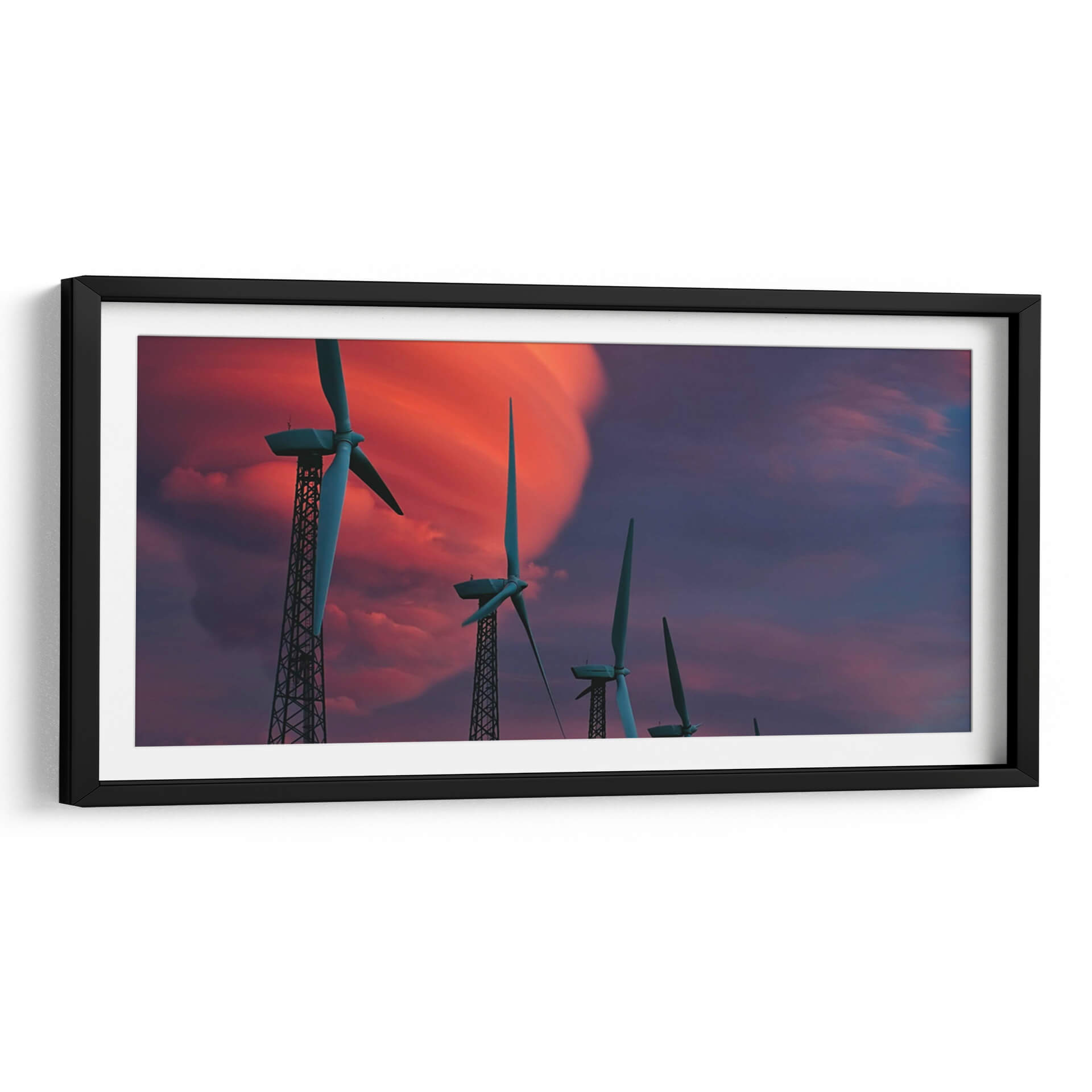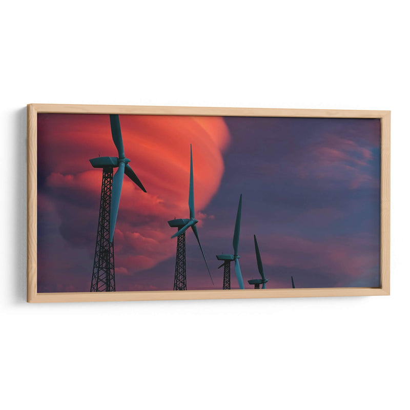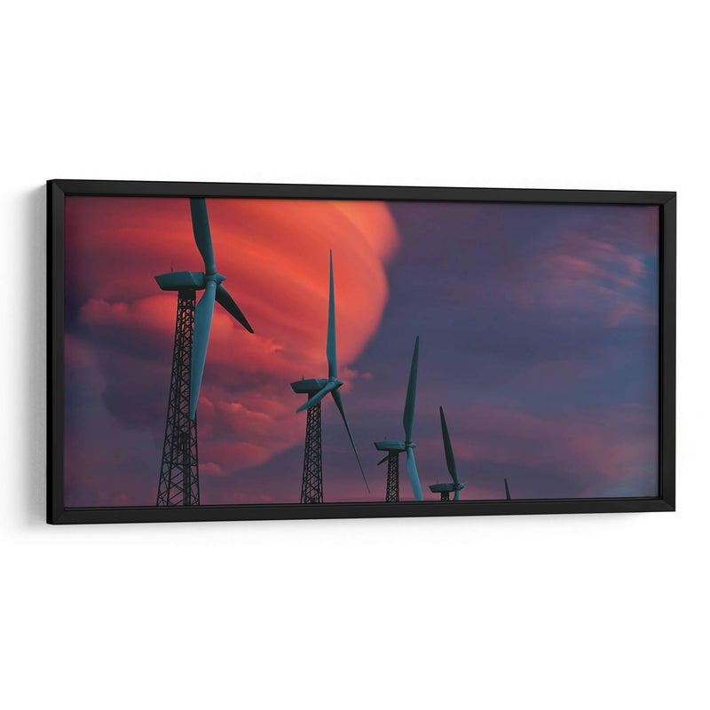 Sumérgete en la fuerza y la belleza de la naturaleza con nuestro impresionante cuadro decorativo "Molinetes". Esta obra captura la majestuosidad de las turbinas eólicas al atardecer, con un cielo dramático que estalla en tonos vibrantes de rojo intenso y púrpura profundo. La composición, dominada por las siluetas esbeltas de los molinos contra este telón de fondo celestial, evoca una sensación de poder industrial y armonía natural. Las torres metálicas, con su intrincada estructura de celosía, contrastan con la suavidad etérea de las nubes iluminadas por los últimos rayos del sol. Es una pieza que no solo embellece tu pared, sino que también inspira reflexión sobre la energía, el progreso y la coexistencia humana con el entorno. Ideal para espacios modernos, oficinas o salas de estar que buscan un toque de carácter y una atmósfera de contemplación. Transforma tu hogar en una galería personal con esta impactante representación de la energía renovable y la belleza del crepúsculo, creando un punto focal que invita a la conversación y al asombro. Añade un toque de dinamismo y conciencia ecológica a tu decoración.