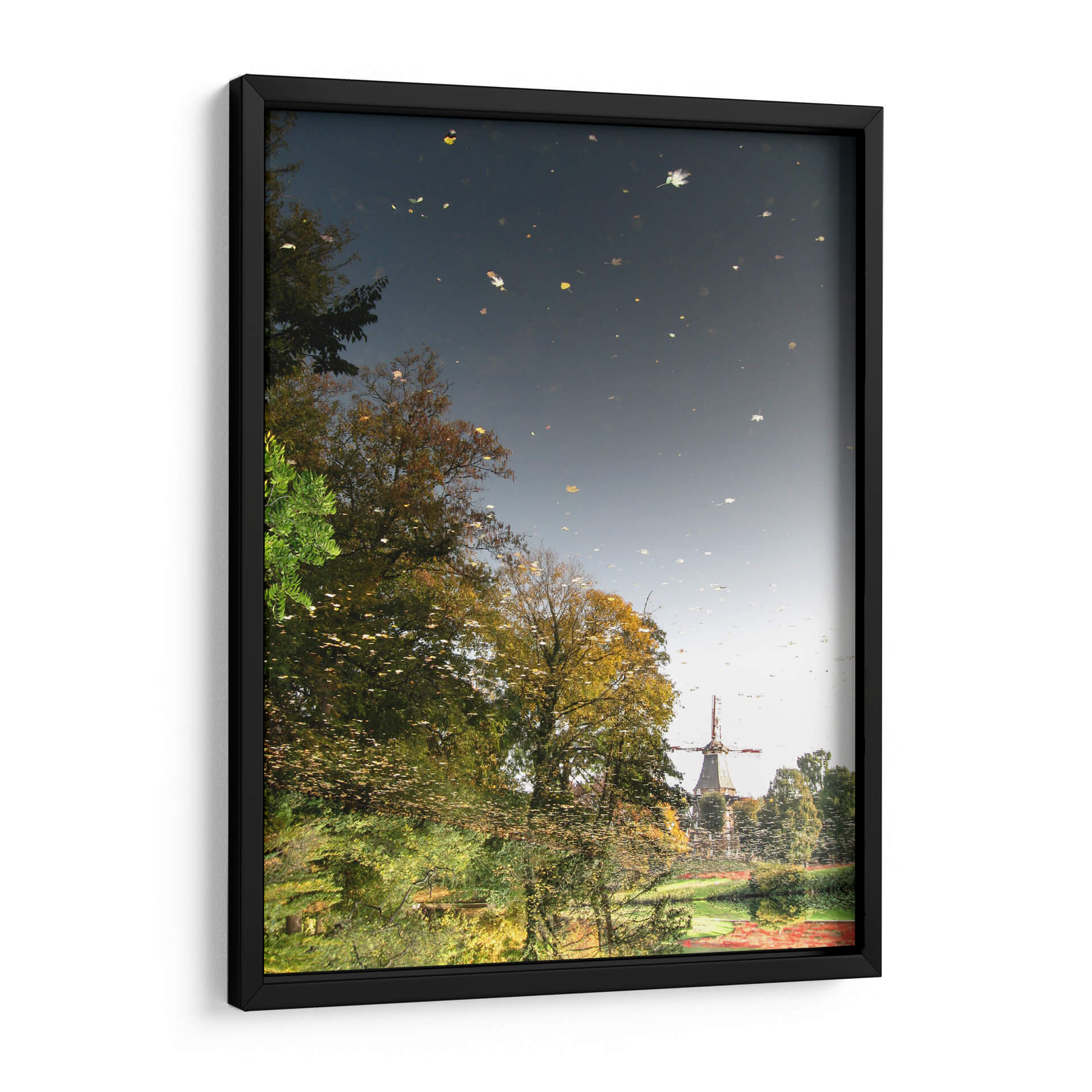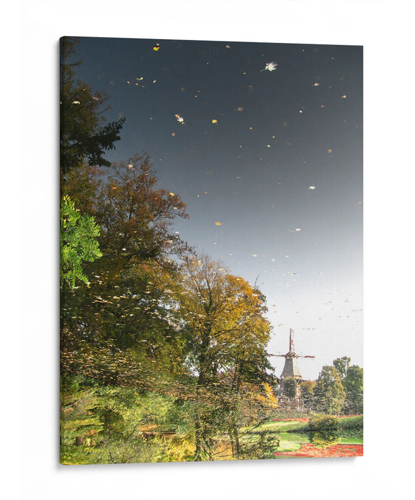 Sumérgete en la serena belleza de "Molino en Bremen", una obra de Emilio Santamaria que captura la esencia de un paisaje otoñal a través de un fascinante juego de reflejos. Este cuadro decorativo te transportará a un momento de calma, donde la naturaleza se despliega en una sinfonía de verdes profundos, ocres cálidos y amarillos vibrantes, contrastando con un cielo oscuro salpicado de hojas flotantes. El molino, símbolo de tradición y paso del tiempo, se alza majestuoso en la distancia, añadiendo un toque de historia y encanto a la composición. La técnica fotográfica utilizada, que juega con la perspectiva y el reflejo en el agua, crea una atmósfera onírica y etérea, ideal para quienes buscan añadir un toque de sofisticación y tranquilidad a su hogar u oficina. Cada detalle, desde la textura de los árboles hasta el suave movimiento del agua, está capturado con una maestría que invita a la contemplación. Este cuadro de pared es perfecto para salones, dormitorios o estudios, aportando una sensación de paz y una conexión con la naturaleza que revitalizará cualquier espacio. Una pieza única que combina realismo y abstracción para crear una experiencia visual inolvidable.