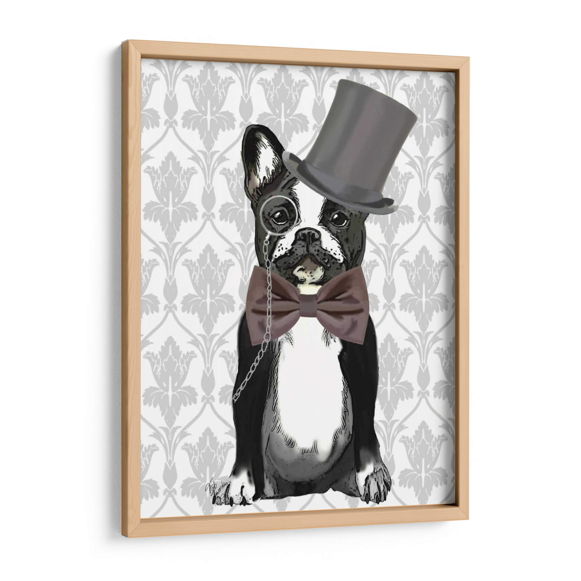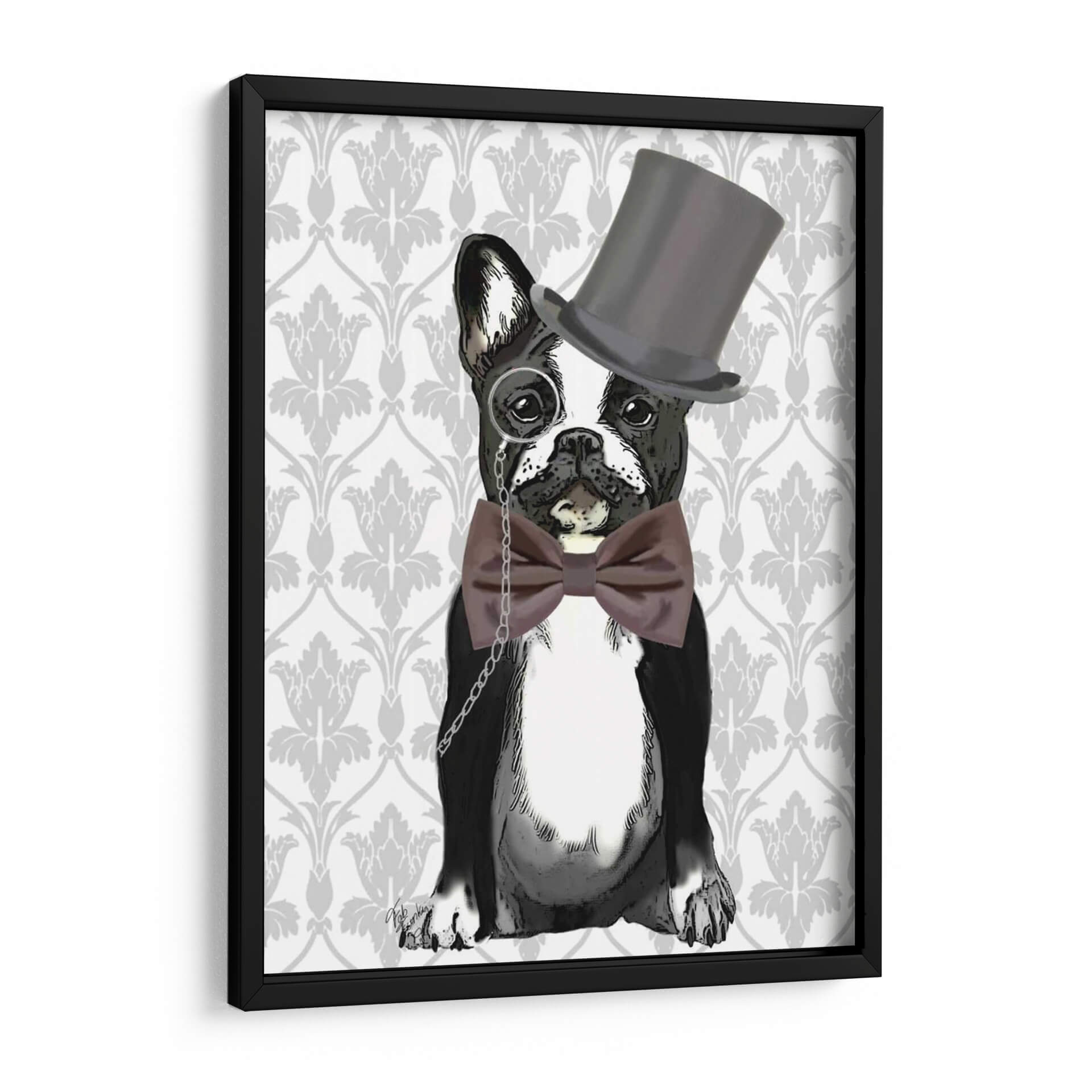 Transforma tu espacio con el carismático cuadro decorativo 'Monsieur Bulldog', una obra que combina elegancia y un toque de humor. Este cautivador retrato de un bulldog francés vestido con monóculo, sombrero de copa y pajarita, evoca una sensación de sofisticación juguetona. La paleta de colores predominantemente en grises y tonos tierra, sobre un fondo con un sutil patrón damasco, crea una atmósfera clásica y refinada. La composición se centra en la figura del perro, capturando su personalidad única y carisma. Este cuadro decorativo es ideal para añadir un punto de interés visual y carácter a cualquier habitación, desde una sala de estar moderna hasta un estudio o una oficina. Su estilo distintivo lo convierte en un excelente punto de partida para conversaciones y una pieza que resonará con amantes de los animales y del arte con un gusto por lo peculiar y distinguido. El arte de Fab Funky es una declaración de estilo, perfecta para quienes buscan decorar con piezas que cuenten una historia y aporten una dosis de personalidad a su decoración.