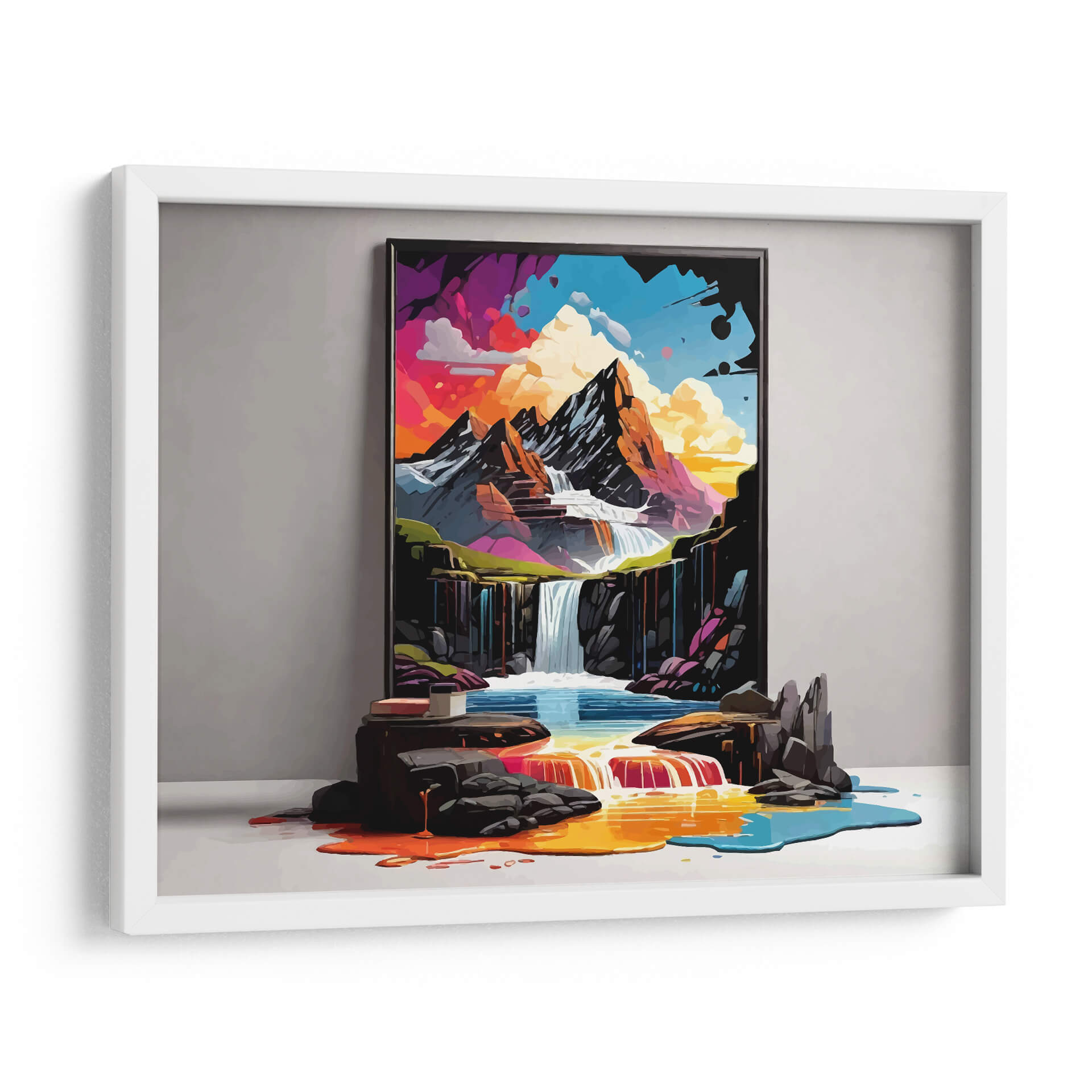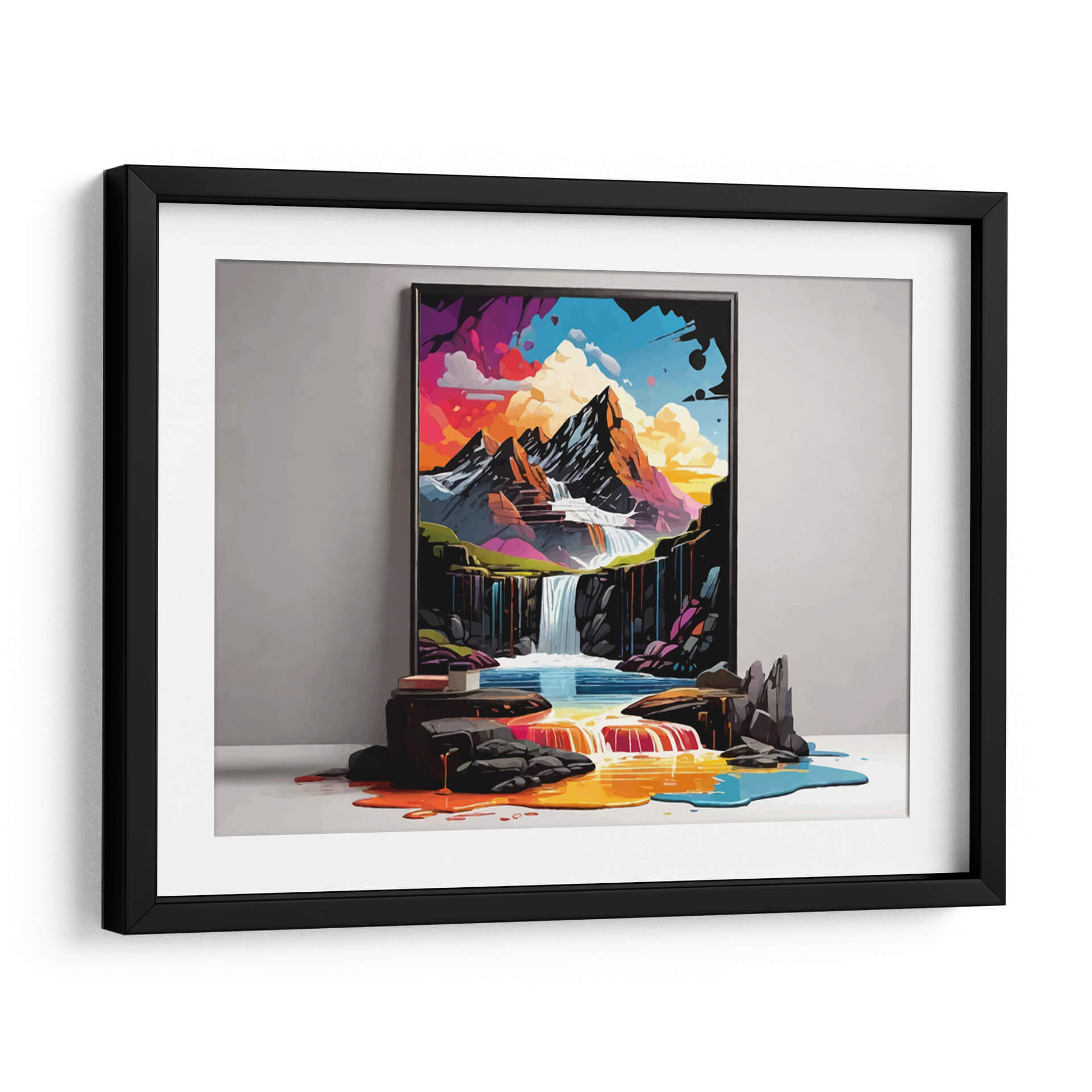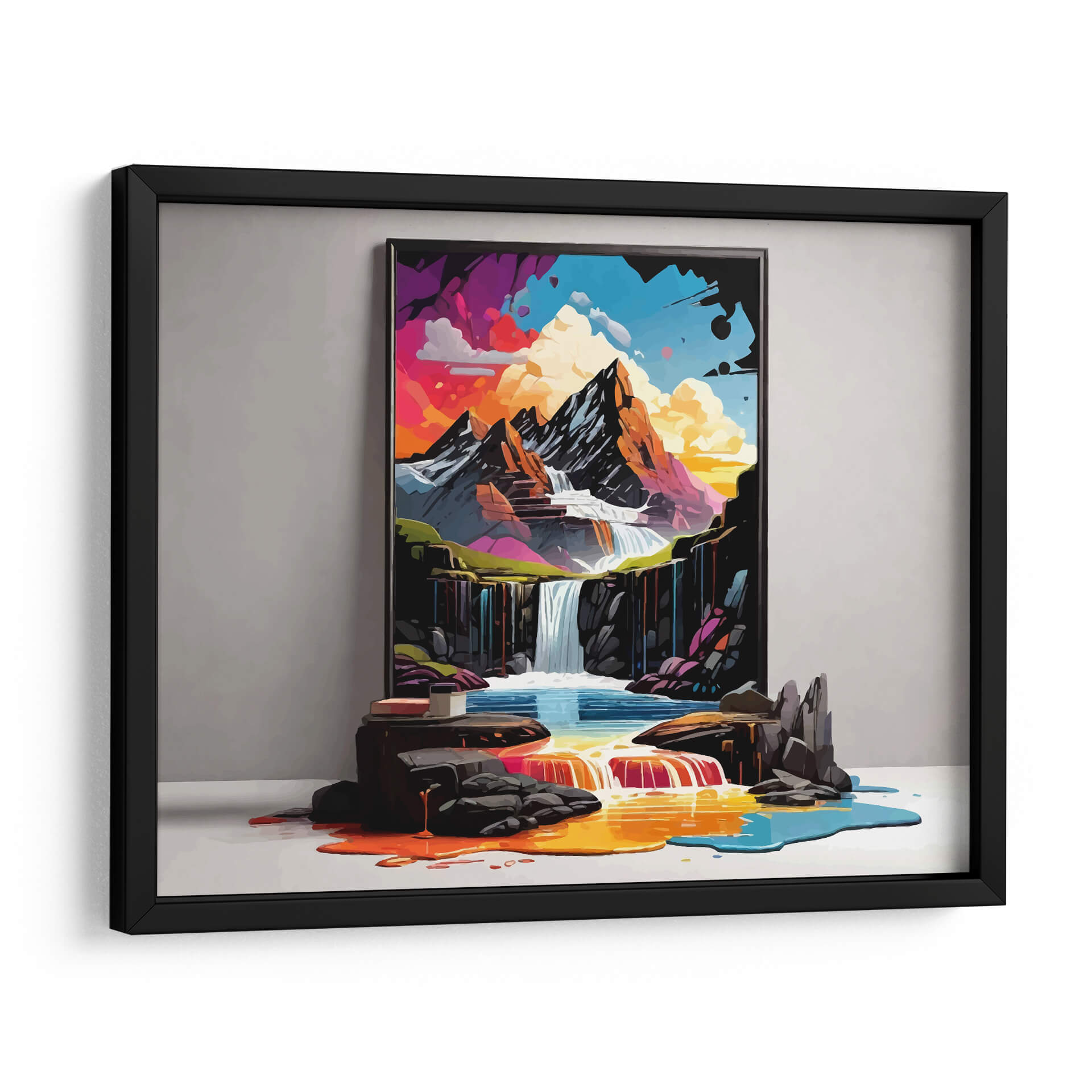 Sumérgete en la majestuosidad de "Montaña fuera del Marco", una obra de arte contemporáneo que redefine el paisaje natural con una explosión de color y energía. Esta pieza, creada por Infiniity Art, presenta una imponente montaña coronada por nubes vibrantes que se funden con un cielo de ensueño, donde tonos de naranja, rosa y azul danzan en un atardecer o amanecer espectaculares. La cascada central, con su caída de agua cristalina, desciende hacia un río sereno, mientras que el primer plano se adorna con cascadas secundarias que fluyen en vibrantes tonos de naranja y azul, añadiendo un toque surrealista y moderno. La composición audaz y el estilo abstracto-moderno invitan a la contemplación, evocando una sensación de aventura y maravilla ante la naturaleza en su máxima expresión. Este cuadro decorativo es ideal para espacios que buscan un punto focal dinámico y lleno de vida, como una sala de estar moderna, un estudio creativo o una oficina que inspire. Añade un toque de arte audaz y contemporáneo a tu decoración y deja que esta obra transporte a tus invitados a un mundo de imaginación y belleza.