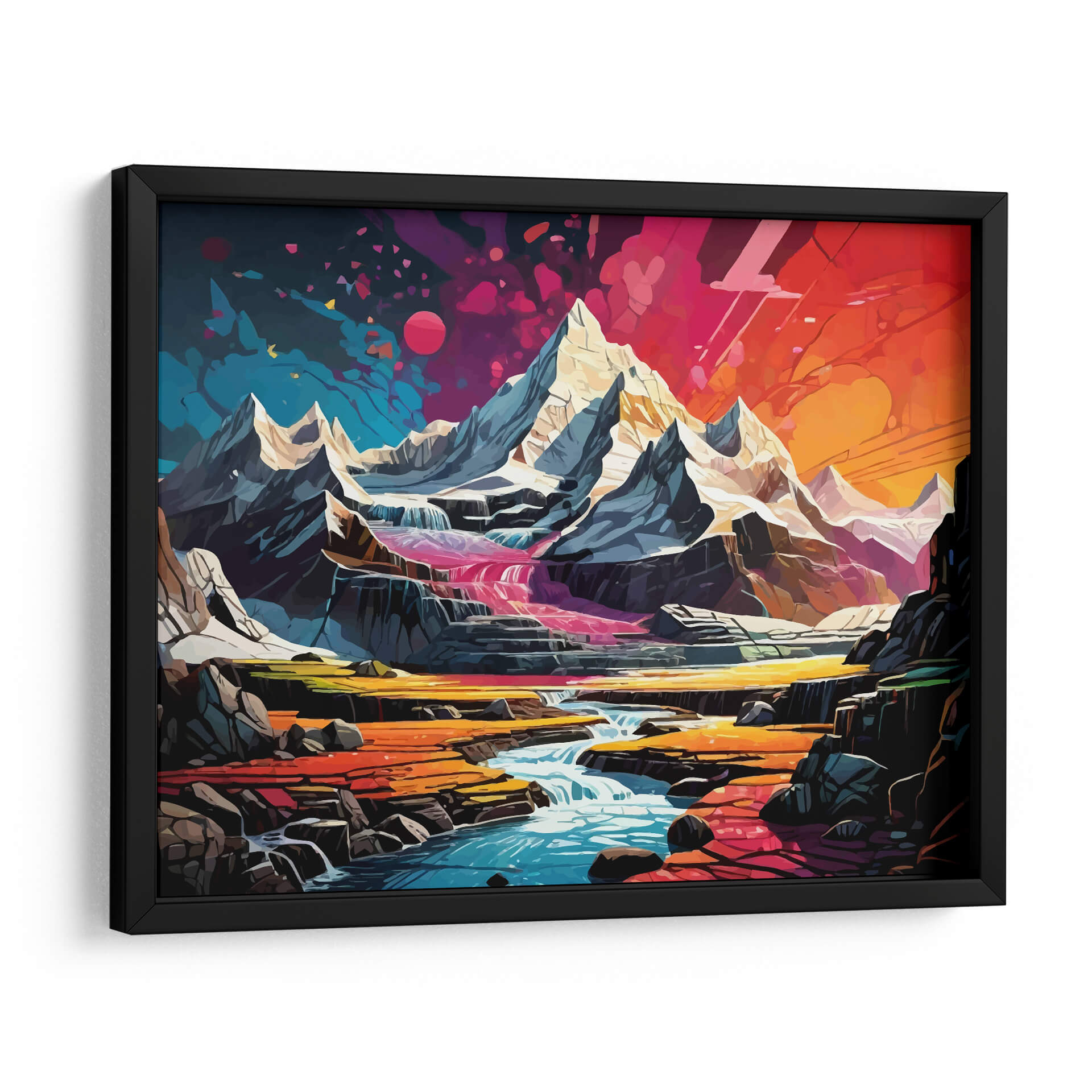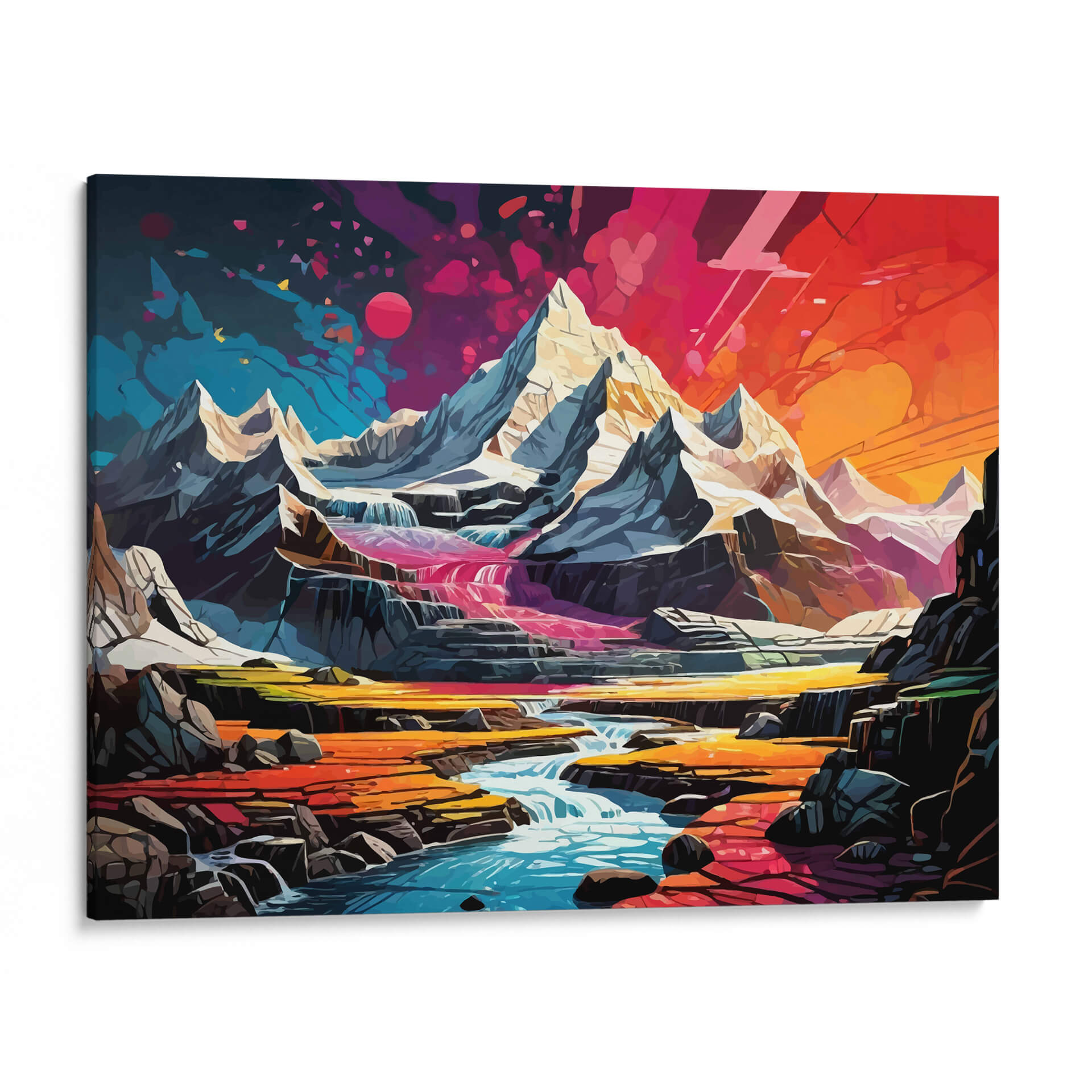 Sumérgete en la majestuosidad de "Montañas Congeladas", una obra de arte que captura la fuerza indómita de la naturaleza con una paleta de colores audaz y vibrante. Este cuadro decorativo presenta picos nevados imponentes que se elevan hacia un cielo dramático, donde tonos de azul profundo, morado intenso y un ardiente naranja se fusionan en una explosión cósmica. Cascadas de un rosa vibrante descienden por las laderas rocosas, contrastando con el naranja cálido del paisaje inferior y el turquesa sereno del río que fluye. El estilo distintivo de Infiniity Art fusiona elementos realistas con un toque abstracto y expresionista, creando una composición dinámica que evoca tanto la serenidad de la montaña como la energía de la vida. "Montañas Congeladas" es más que una simple imagen; es una invitación a explorar la belleza salvaje y a traer un soplo de aire fresco y color a tu hogar u oficina. Ideal para salas de estar modernas, oficinas creativas o cualquier espacio que busque un punto focal inspirador y lleno de carácter. Transforma tu pared en una ventana a un paisaje surrealista y lleno de vida.