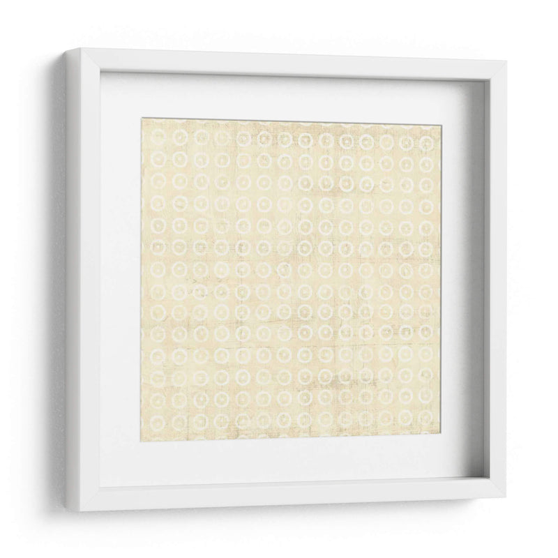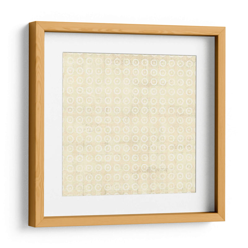 Sumérgete en la sutileza geométrica de "Motivo Étnico Vi", una obra de arte contemporáneo que redefine la elegancia minimalista. Este cuadro decorativo presenta un patrón hipnótico de círculos concéntricos en un suave tono marfil, creando una textura visual rica y una atmósfera de serenidad. La composición se basa en una cuadrícula meticulosamente dispuesta, donde cada círculo, ligeramente desgastado y con un toque artesanal, parece vibrar con energía contenida. La paleta de colores, dominada por tonos cálidos y neutros, aporta una sensación de calma y sofisticación, ideal para complementar una variedad de estilos decorativos, desde el escandinavo hasta el moderno o bohemio. "Motivo Étnico Vi" es más que una simple decoración; es una invitación a la contemplación, una pieza que añade profundidad y carácter a cualquier espacio. Perfecto para iluminar salones, dormitorios o estudios, este cuadro decorativo funciona como un punto focal sutil pero impactante, evocando una sensación de orden y armonía. Su diseño atemporal y su ejecución impecable lo convierten en una adición valiosa a tu colección de arte de pared, aportando un toque de distinción y un aire de tranquilidad a tu hogar u oficina.