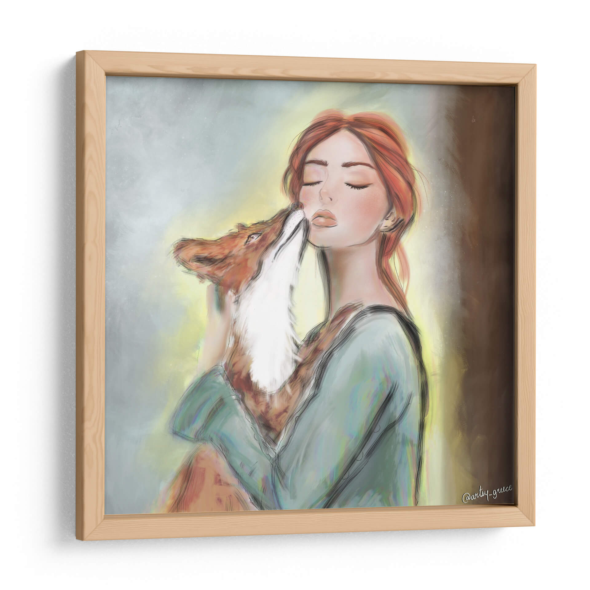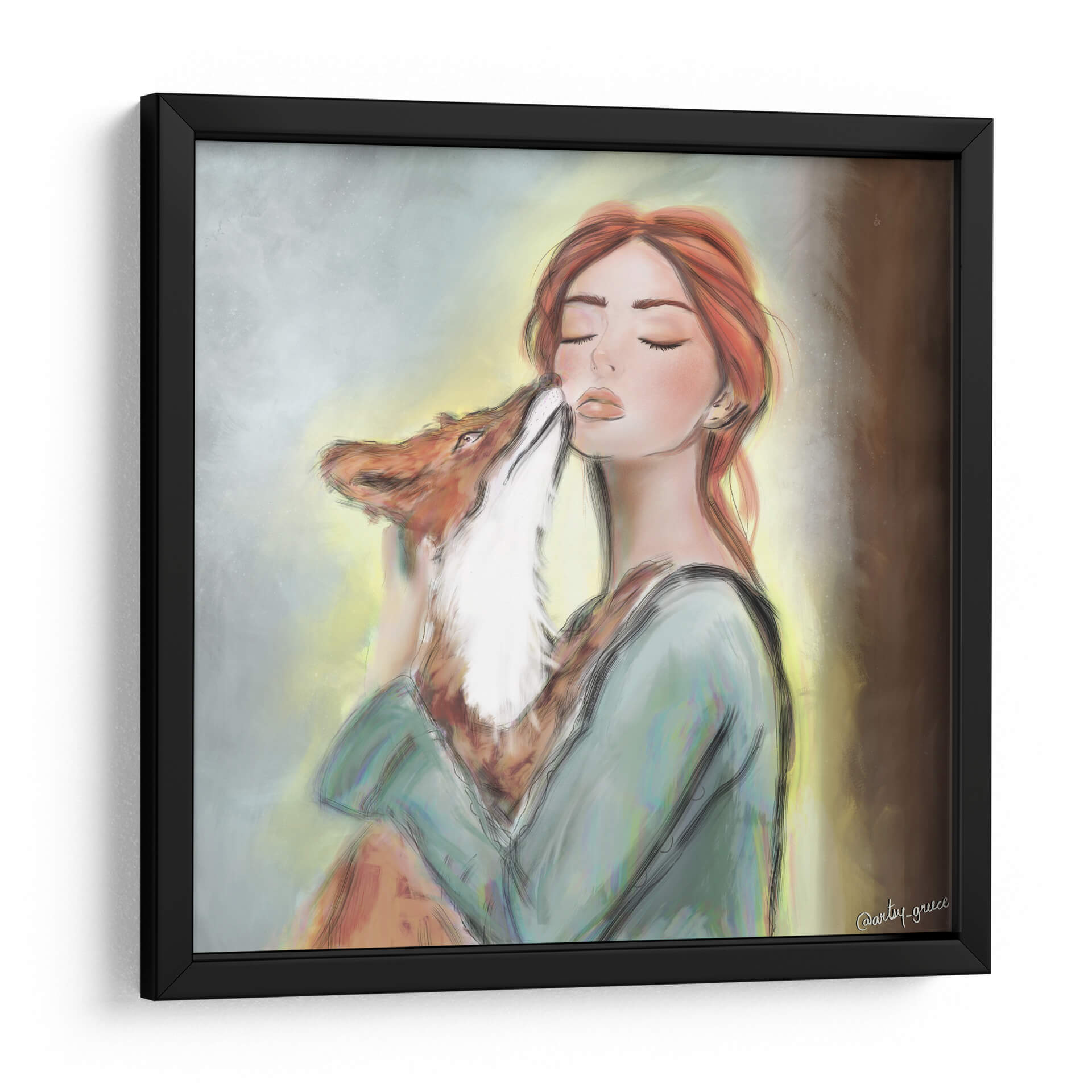 Captura la dulzura y la conexión en tu hogar con este cautivador cuadro decorativo, "Mujer Fuerte", del artista Artsy Greece. La obra presenta una delicada ilustración de una joven mujer de cabello rojizo, abrazando tiernamente a un zorro. La escena transmite una profunda sensación de paz y armonía, con la mujer con los ojos cerrados, recibiendo un suave gesto del animal. La paleta de colores, dominada por tonos suaves y terrosos con sutiles acentos de luz cálida, crea una atmósfera serena y acogedora. El estilo artístico, con sus trazos fluidos y un enfoque en la expresión emocional, se sitúa entre lo figurativo y lo estilizado, evocando un aire de cuento o fantasía. Este cuadro decorativo es una pieza excepcional para añadir un toque de ternura y conexión con la naturaleza a cualquier espacio. Ideal para dormitorios, salas de estar o rincones de lectura donde se busque un ambiente de calma y belleza. Su temática de fortaleza y vínculo afectivo lo convierte en un regalo significativo y una adición inspiradora a tu colección de arte mural.