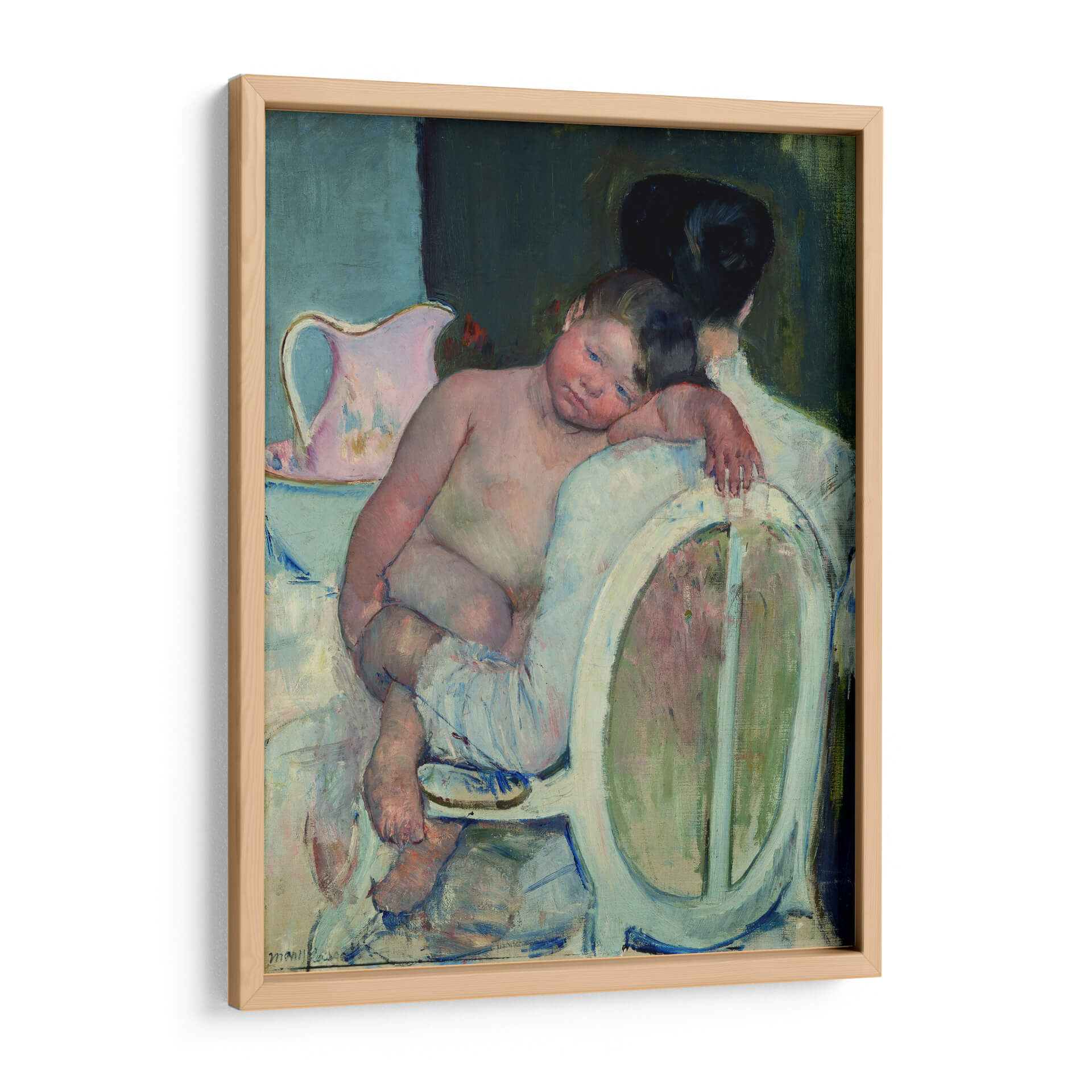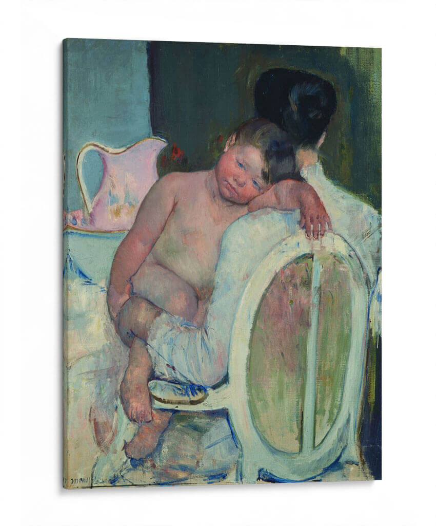 Sumérgete en la ternura y la intimidad con este exquisito cuadro decorativo, una obra maestra que captura la profunda conexión entre una madre y su hijo. La artista Mary Cassatt, con su característico estilo impresionista, nos transporta a un momento de serena contemplación, donde las pinceladas sueltas y la paleta de colores suaves crean una atmósfera de calma y afecto. La figura del niño, recostado con dulzura en el hombro de la madre, irradia una inocencia conmovedora, mientras que la figura materna, aunque representada de espaldas, transmite una presencia reconfortante y protectora. Los tonos pastel y los sutiles toques de color, como el rosa de la jarra en el fondo, añaden una delicadeza visual que invita a la reflexión y al sosiego. Este cuadro decorativo es perfecto para añadir un toque de calidez y emotividad a cualquier espacio, ya sea un dormitorio acogedor, una sala de estar familiar o incluso un rincón tranquilo en una oficina. Su belleza atemporal y su temática universal lo convierten en una pieza de arte mural que perdurará y será apreciada por generaciones, evocando sentimientos de amor, seguridad y paz en quienes lo contemplen. Una adición inspiradora para tu hogar.