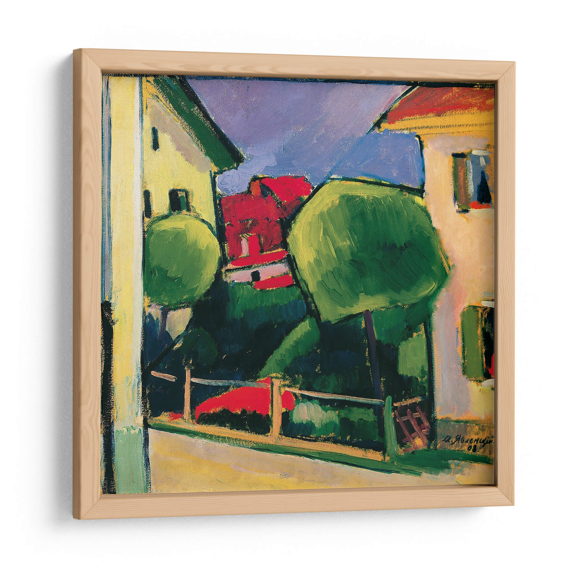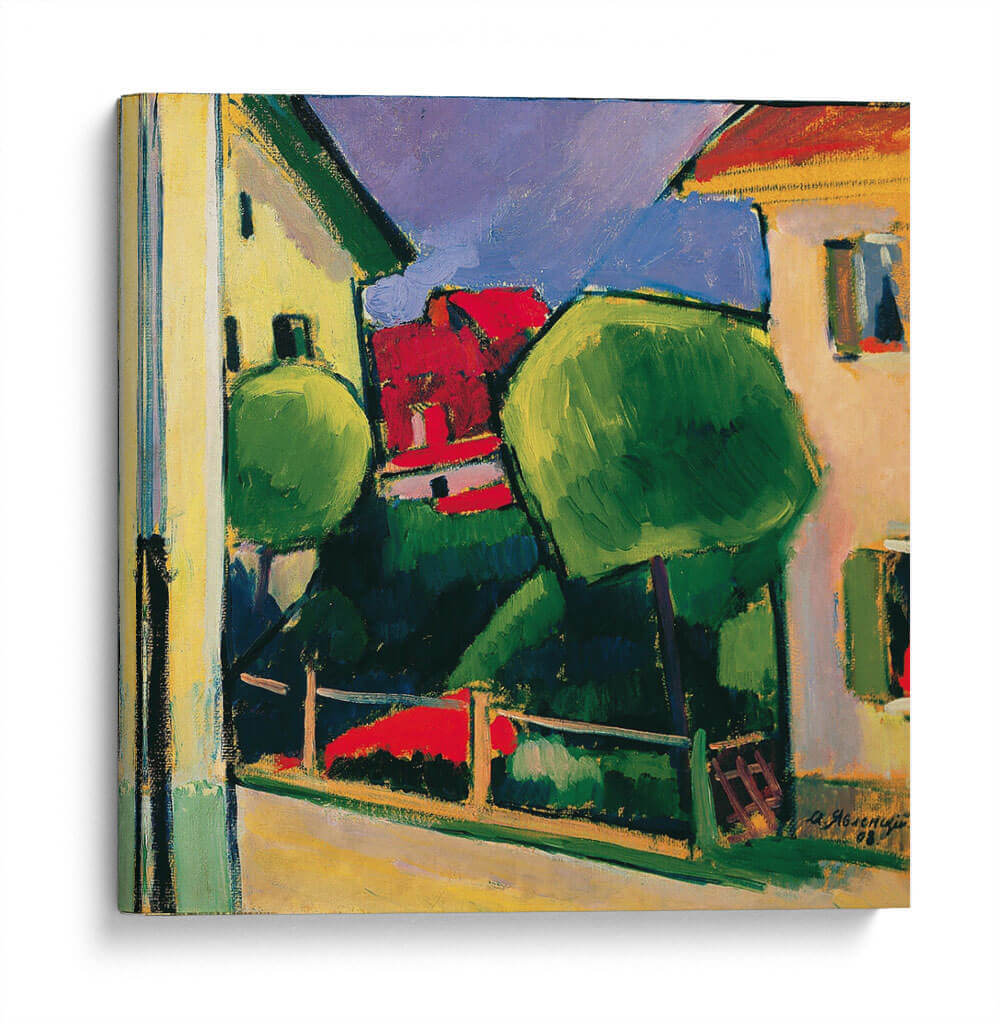 Sumérgete en la vibrante escena de "Murnau", una obra maestra de Alexej von Jawlensky que captura la esencia de un paisaje rural con una explosión de color y forma. Este cuadro decorativo te transportará a un día soleado, donde las casas de tejados rojos y la exuberante vegetación verde cobran vida a través de pinceladas audaces y expresivas. La paleta de colores, dominada por amarillos cálidos, verdes intensos y toques de rojo vibrante, crea una atmósfera enérgica y alegre, perfecta para infundir vitalidad a cualquier espacio. El estilo fauvista de Jawlensky se manifiesta en la simplificación de las formas y la audacia cromática, invitando a una interpretación personal y emocional de la escena. "Murnau" no es solo una representación de un lugar, sino una invitación a sentir la luz, el aire y la vida de un rincón pintoresco. Ideal para salas de estar modernas, comedores o estudios que buscan un punto focal lleno de carácter y una conexión con el arte expresionista. Añade un toque de color y sofisticación a tu hogar con esta pieza única que evoca la alegría de los días de verano y la belleza de la naturaleza transformada por la visión artística.