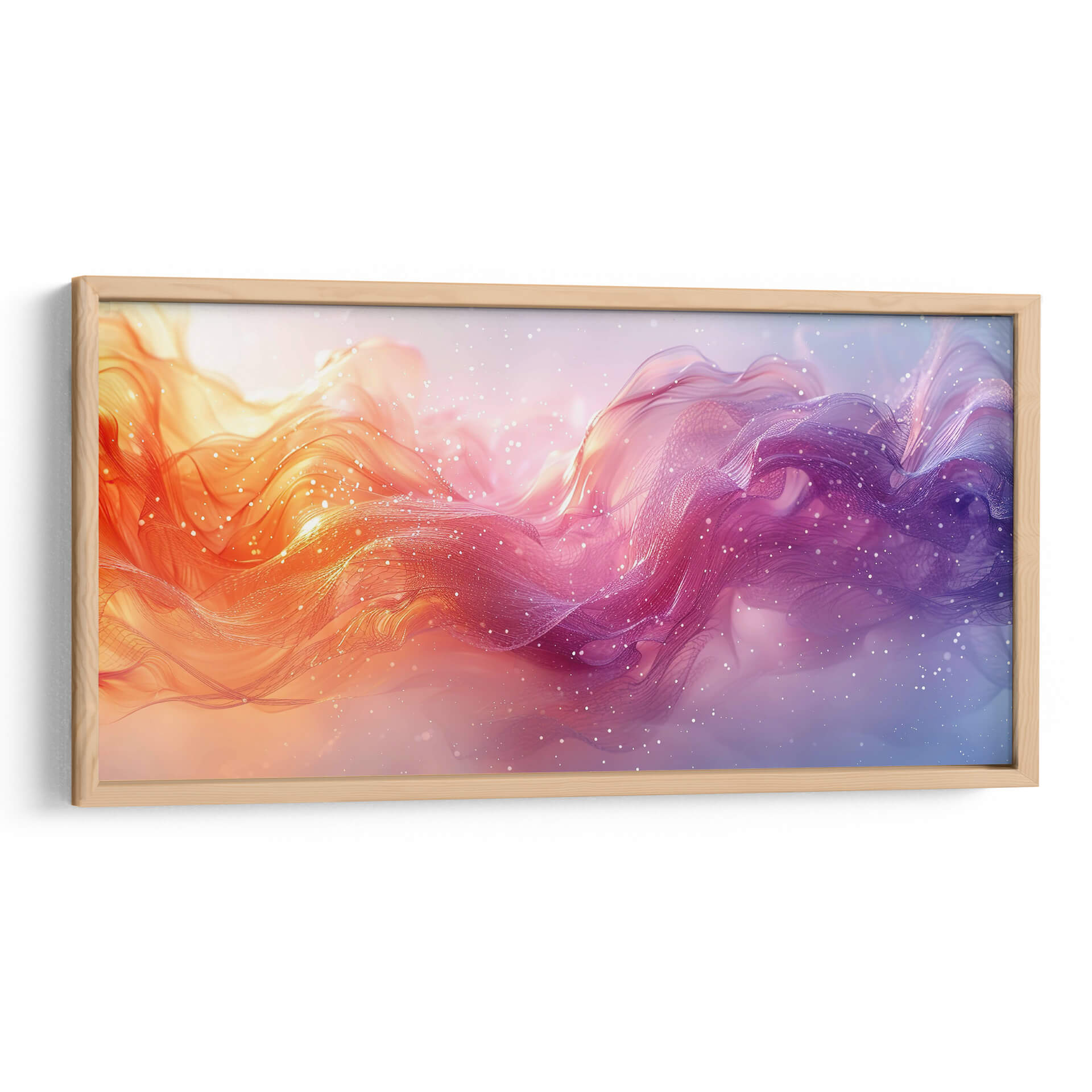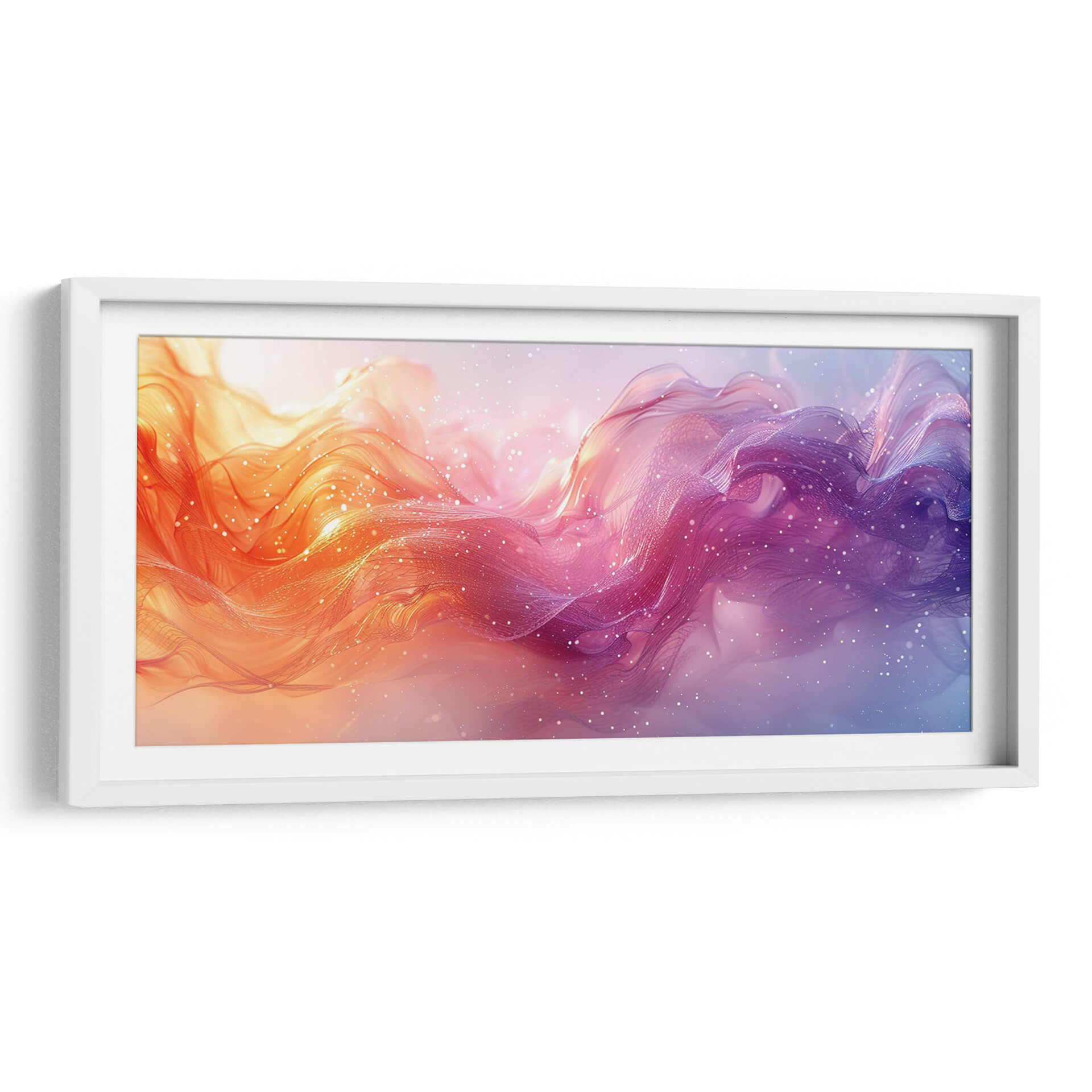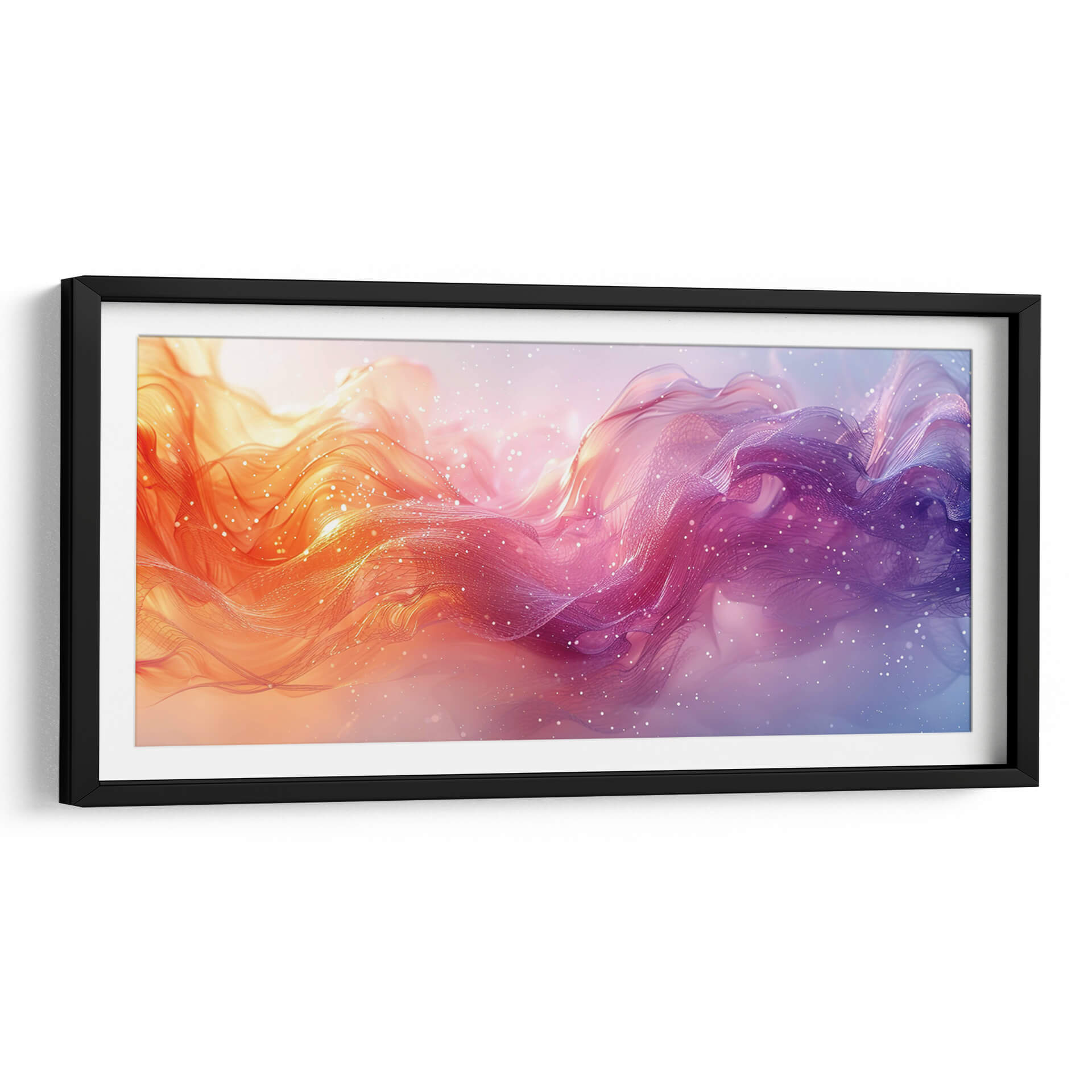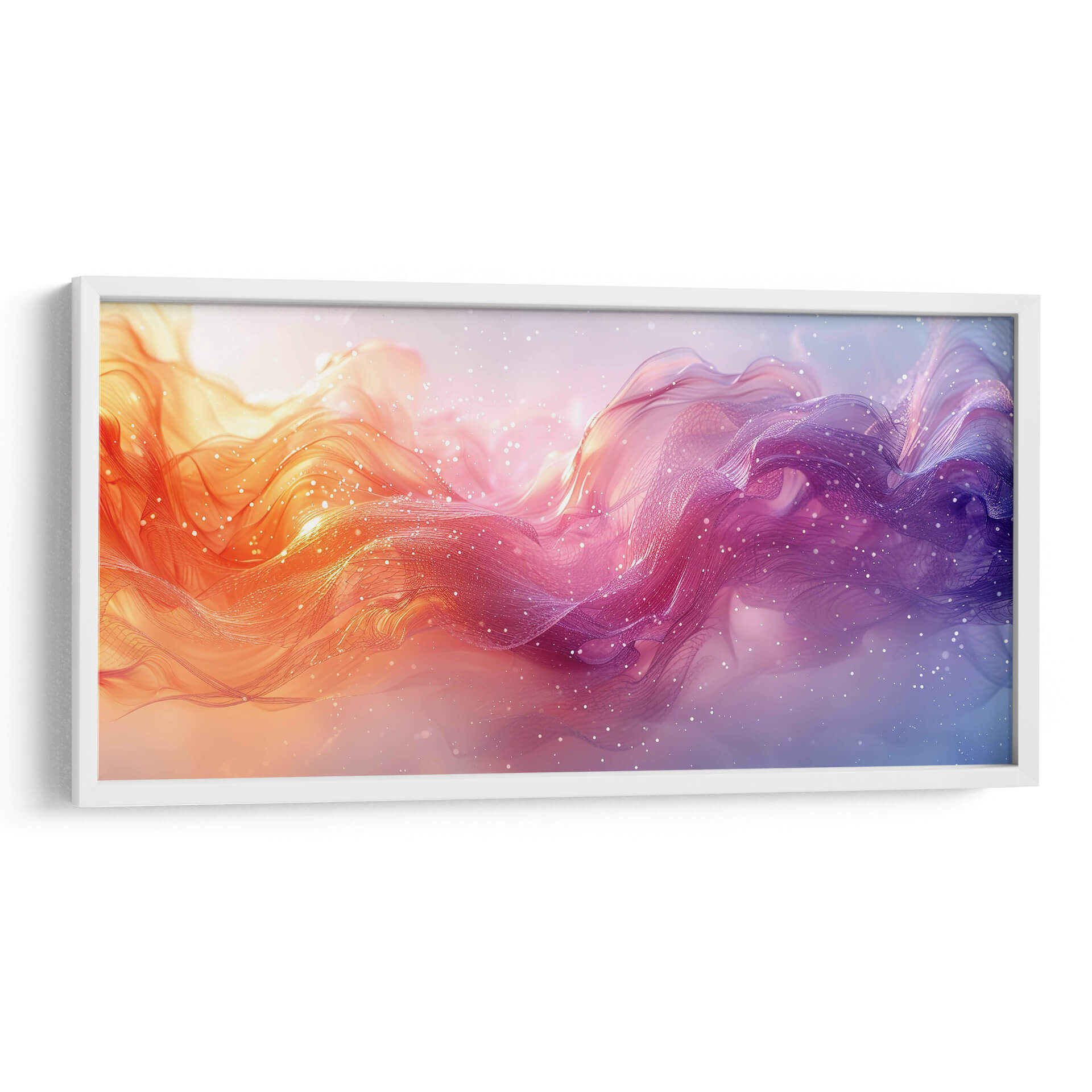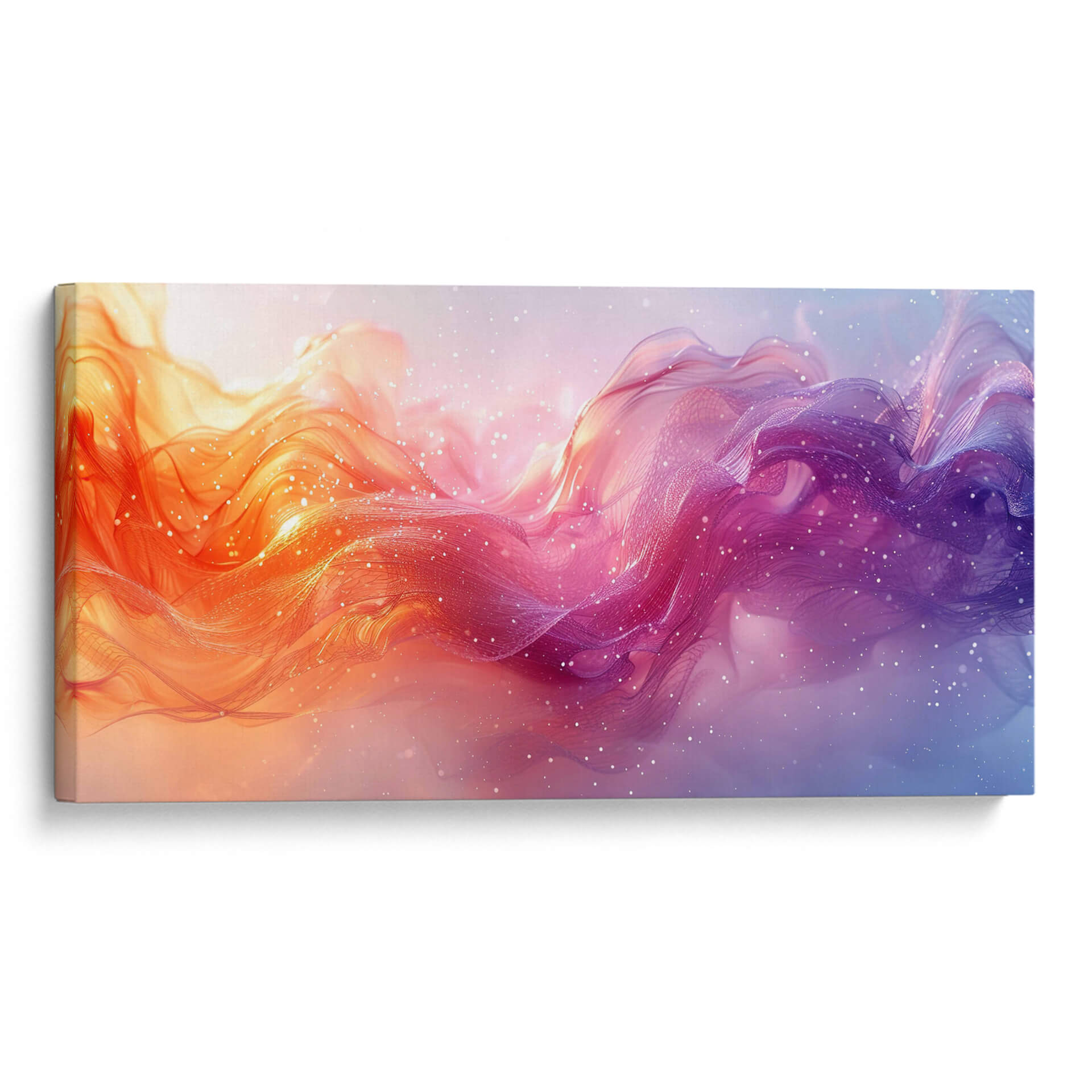 Sumérgete en la cautivadora obra de Cecilia Flores, "Nadando entre música", un cuadro decorativo que irradia energía y serenidad a partes iguales. Esta pieza abstracta presenta un flujo dinámico de formas etéreas y ondulantes, que evocan la sensación de movimiento a través de un líquido vibrante o una corriente cósmica. La paleta de colores transita suavemente desde cálidos tonos anaranjados y rosados en un lado hasta profundos morados y azules en el otro, creando un contraste visual fascinante. Finas partículas brillantes, similares a estrellas o burbujas, salpican la composición, añadiendo un toque de magia y profundidad. El estilo artístico se inclina hacia lo abstracto y lo fluido, con texturas que sugieren ligereza y transparencia, como velos o nubes de color. "Nadando entre música" es ideal para infundir vida y un toque contemporáneo a cualquier espacio, ya sea una sala de estar moderna, un estudio creativo o un dormitorio que busque un acento de color y movimiento. Deja que esta obra sea el punto focal que inspire conversaciones y transporte tu imaginación a un universo de creatividad y emoción. Una adición perfecta para quienes buscan arte abstracto que combine la fuerza del color con la delicadeza de la forma, transformando cualquier pared en una ventana a un mundo onírico y vibrante.