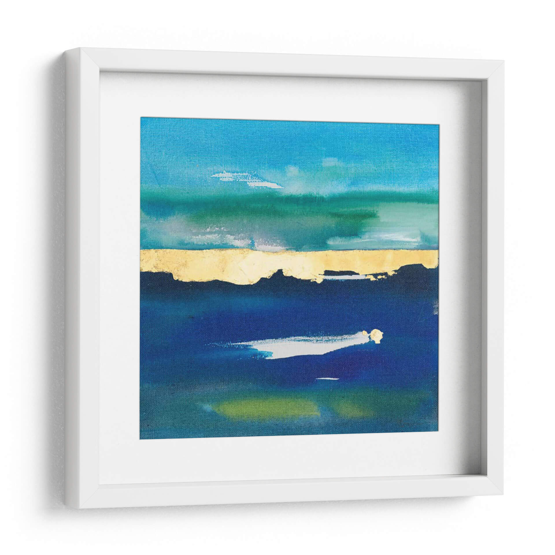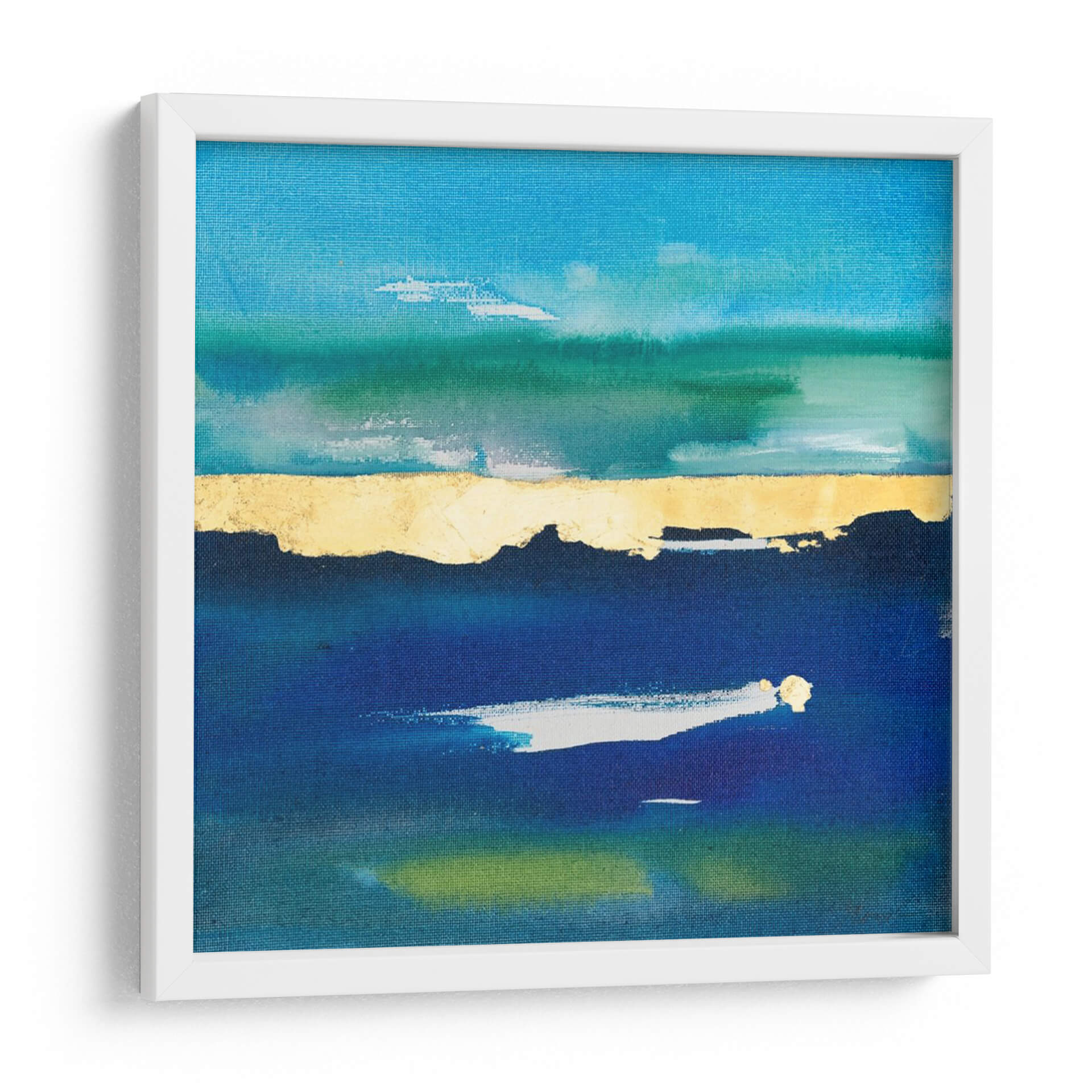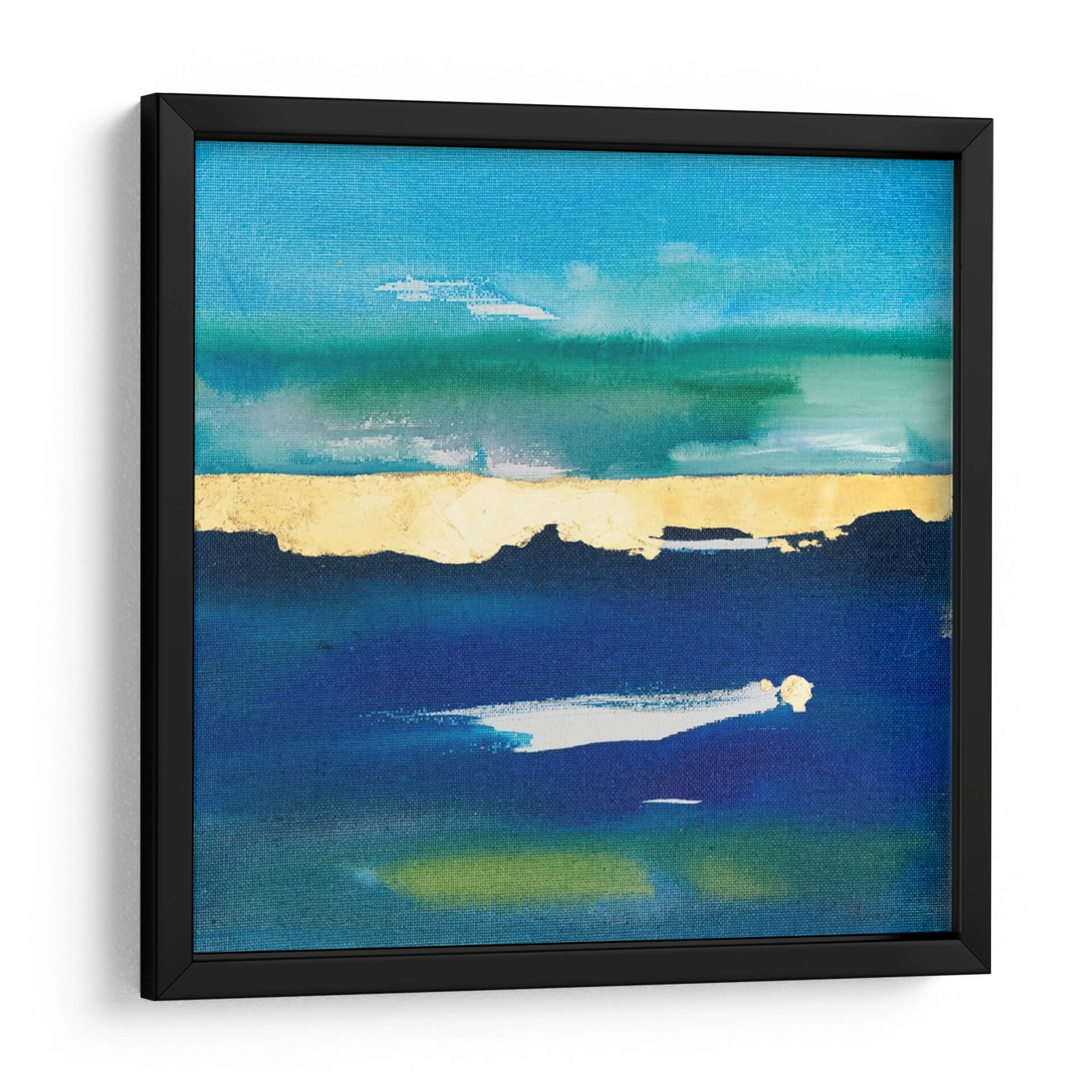 Sumérgete en la serenidad de "Naturaleza En La Paz Iv", una obra de arte contemporáneo que evoca la calma del mar y el cielo en un lienzo cautivador. Joyce Combs ha creado una composición abstracta donde las profundas tonalidades de azul se fusionan con vibrantes verdes y un impactante acento dorado que parece delinear un horizonte sereno. Las pinceladas sugieren movimiento y profundidad, invitando a la contemplación y al relax. Este cuadro decorativo es perfecto para añadir un toque de sofisticación y tranquilidad a tu hogar u oficina. Imagina este cuadro aportando una atmósfera de paz a tu sala de estar, transformando un dormitorio en un santuario personal o inspirando serenidad en tu espacio de trabajo. Su diseño abstracto y la cuidada paleta de colores lo convierten en una pieza versátil, ideal para interiores modernos, minimalistas o de inspiración costera. "Naturaleza En La Paz Iv" no es solo una pieza decorativa, es una invitación a encontrar tu propio oasis de calma en medio del ajetreo diario. Descubre la belleza del arte abstracto y eleva la estética de tus espacios con esta evocadora obra.