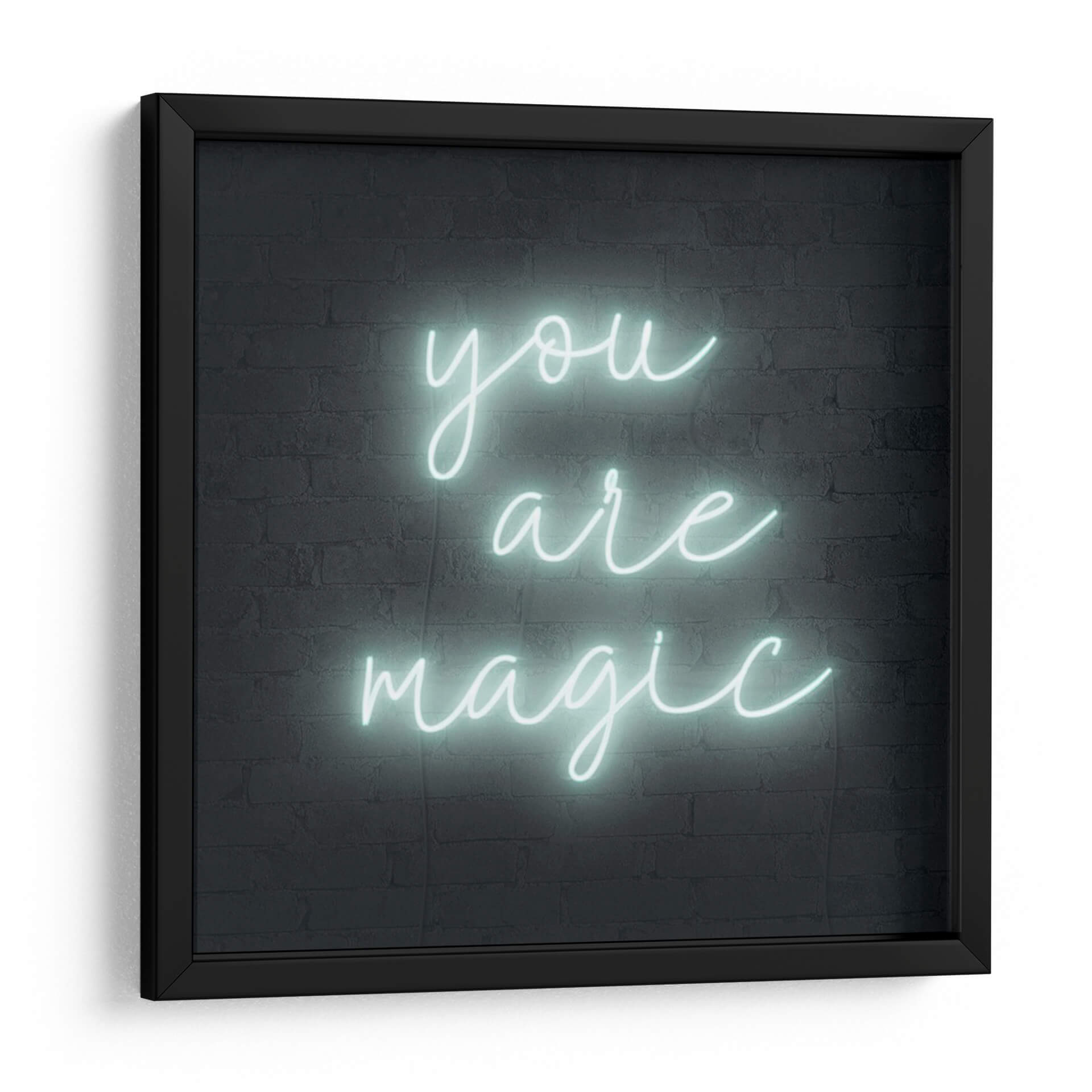 Inyecta una dosis de positividad y encanto a tu espacio con "Neon Inspo VI", una cautivadora obra de arte de Victoria Borges. Esta pieza presenta la inspiradora frase "you are magic" (eres magia) en un vibrante y moderno estilo de neón, contrastando elegantemente con un fondo texturizado que simula un muro de ladrillos oscuro. La elección de colores, un azul claro etéreo para el neón sobre un fondo casi negro, crea una atmósfera de misterio y sofisticación, pero a la vez de empoderamiento. La tipografía cursiva y fluida del neón añade un toque de delicadeza y movimiento a la composición. Este cuadro decorativo es perfecto para cualquier persona que busque un recordatorio diario de su propio valor y potencial. Ideal para colocar en una sala de estar moderna, un dormitorio acogedor, una oficina inspiradora o incluso un espacio creativo. "Neon Inspo VI" no es solo una pieza decorativa, sino una declaración de intenciones, un faro de luz que ilumina la confianza y la autovaloración, convirtiendo cualquier pared en un lienzo de posibilidades y positividad. Su diseño contemporáneo y el mensaje universal lo hacen un regalo perfecto para celebrar logros o simplemente para recordar a alguien especial cuánto brilla.