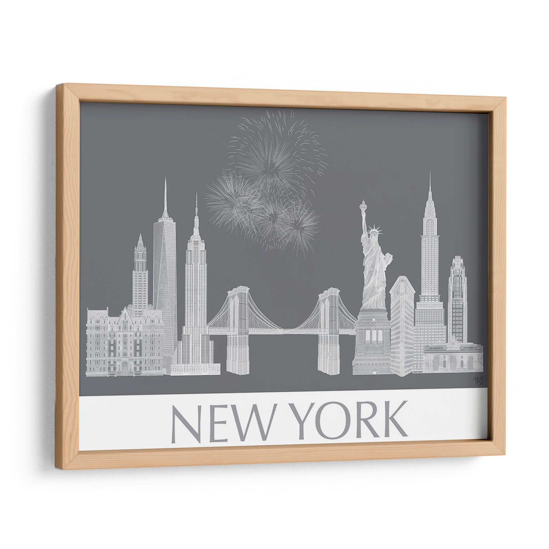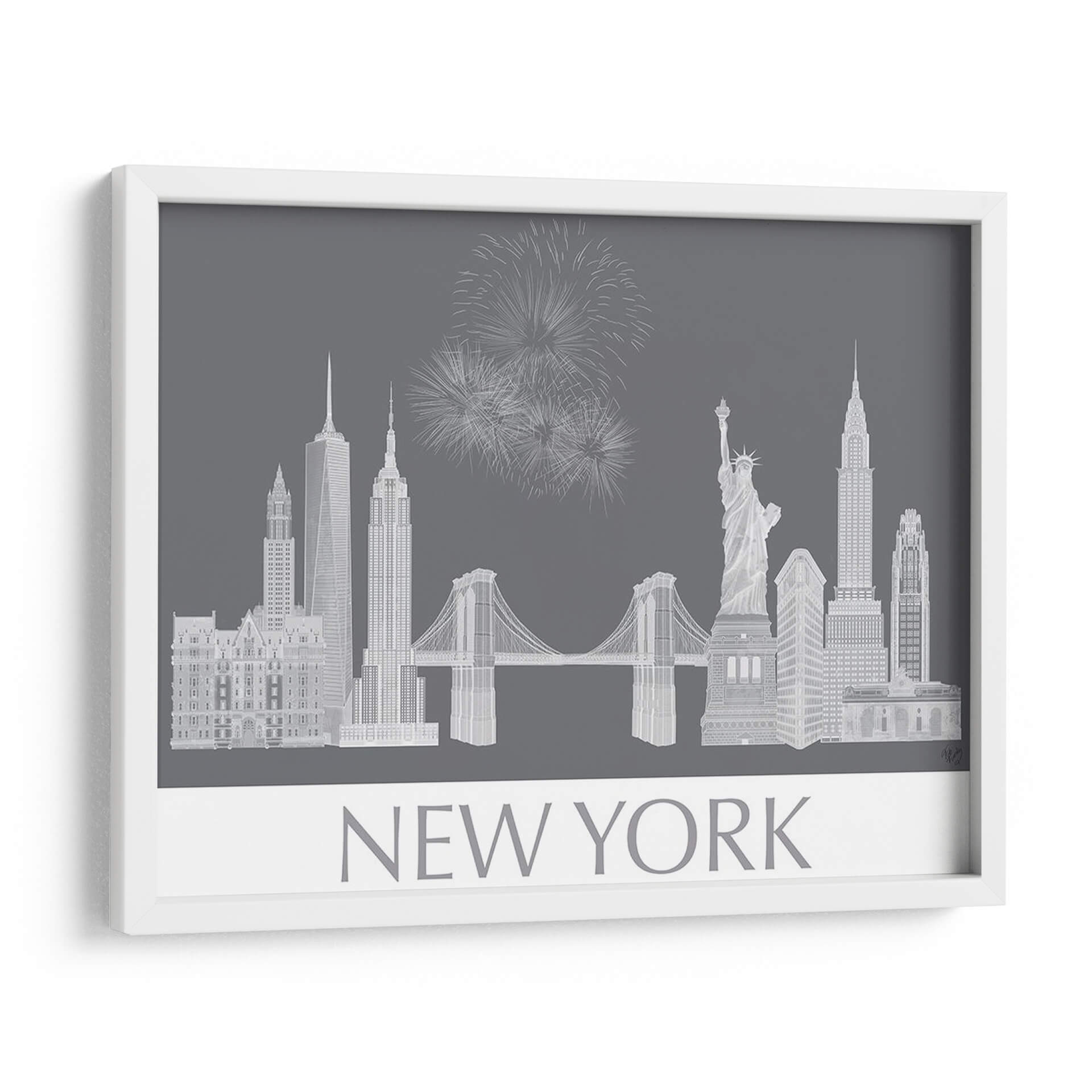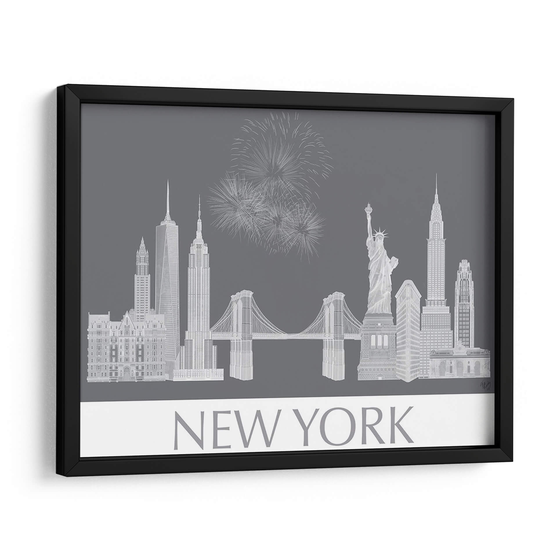 Captura la majestuosidad de la Gran Manzana con este evocador cuadro decorativo 'New York Skyline Monochrome'. Esta obra de arte presenta una silueta detallada del icónico horizonte de Nueva York, destacando emblemáticos rascacielos como el Empire State Building y el One World Trade Center, junto a la inconfundible Estatua de la Libertad y el imponente Puente de Brooklyn. Las fireworks en la parte superior añaden un toque festivo y dinámico a la composición, evocando momentos de celebración y la energía vibrante de la ciudad. La paleta de colores monocromática en tonos grises y blancos crea una atmósfera sofisticada y moderna, permitiendo que la pieza se integre armoniosamente en una amplia gama de estilos decorativos, desde el minimalista hasta el contemporáneo. Ideal para aquellos que aman las metrópolis, los viajes o simplemente buscan una pieza de arte con carácter y elegancia para su hogar u oficina. Este cuadro decorativo no solo embellece tu espacio, sino que también sirve como un recordatorio constante de la arquitectura impresionante y el espíritu indomable de Nueva York, convirtiéndose en un punto focal que inspira y cautiva a todos los que lo contemplan. Añade un toque de estilo urbano y atemporal a tu decoración.