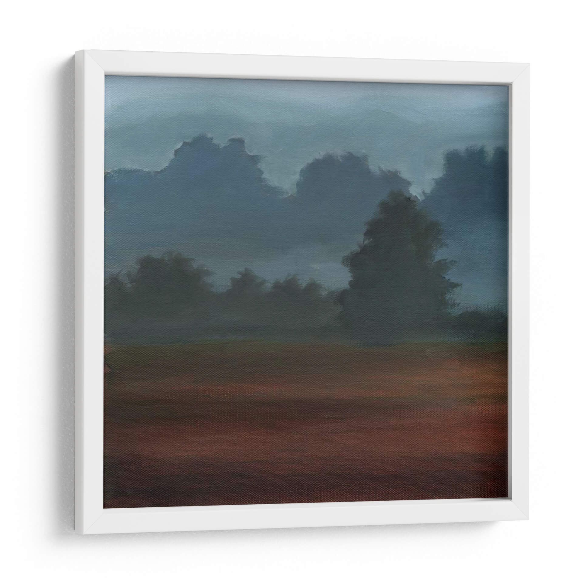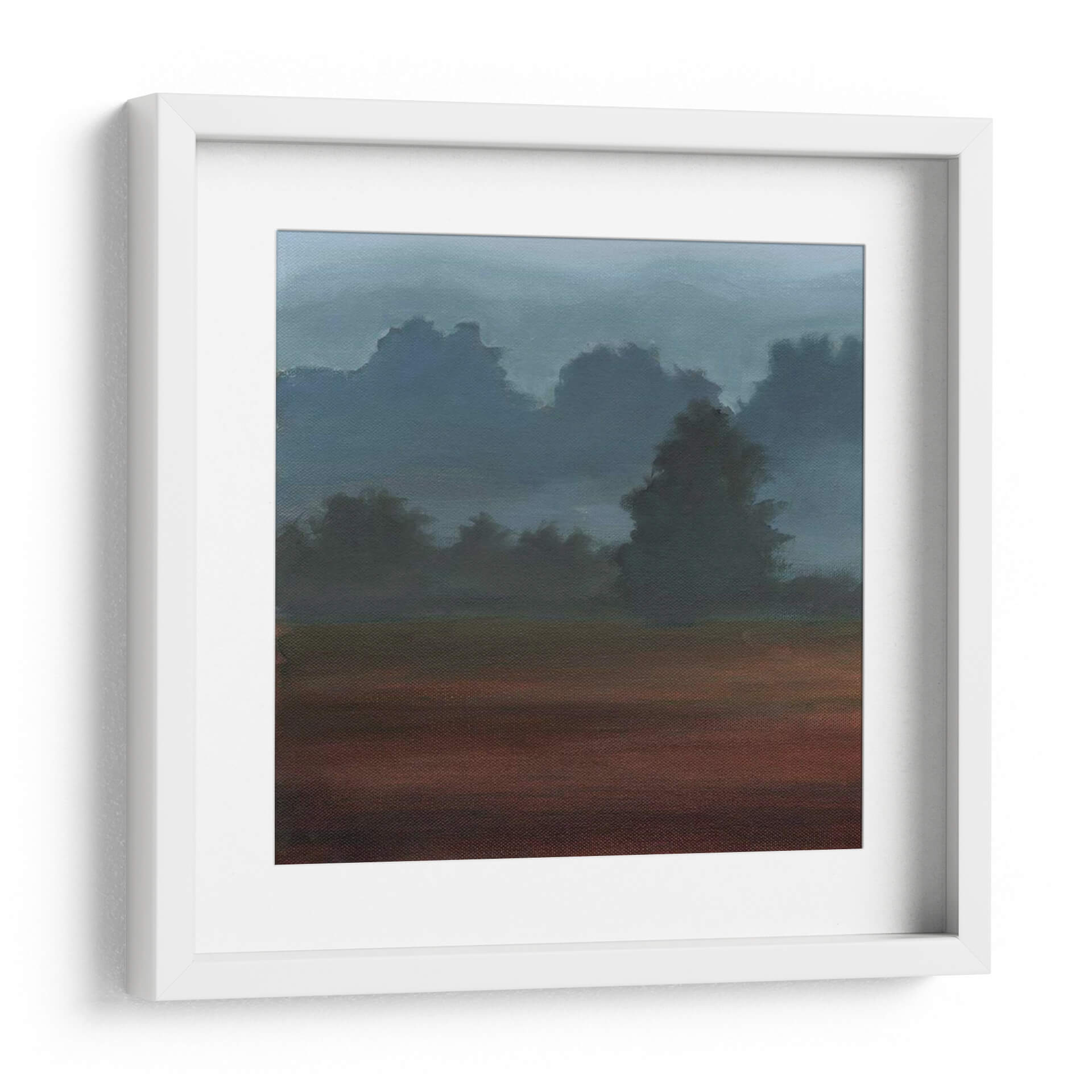 Sumérgete en la serenidad de "Niebla De La Madrugada Me", una obra de arte cautivadora del artista Ethan Harper. Este cuadro decorativo transporta al espectador a un paisaje etéreo, donde las siluetas de árboles se elevan sutilmente a través de una bruma matutina. La paleta de colores, dominada por tonos profundos de azul y gris en el cielo, contrasta armoniosamente con los tonos terrosos y rojizos del primer plano, creando una atmósfera de misterio y calma profunda. El estilo pictórico, con pinceladas que sugieren formas sin definirlas completamente, invita a la contemplación y a la interpretación personal. La composición, con capas de profundidad que se desvanecen en la distancia, evoca una sensación de tranquilidad y introspección, ideal para espacios que buscan un refugio de paz. Este cuadro es perfecto para añadir un toque de sofisticación y serenidad a tu sala de estar, dormitorio u oficina, invitando a la reflexión y al sosiego. Descubre la belleza sutil de este paisaje onírico y transforma tu entorno en un santuario de calma visual. Una pieza que captura la esencia efímera de la madrugada, ofreciendo una ventana a un momento de quietud y belleza natural.