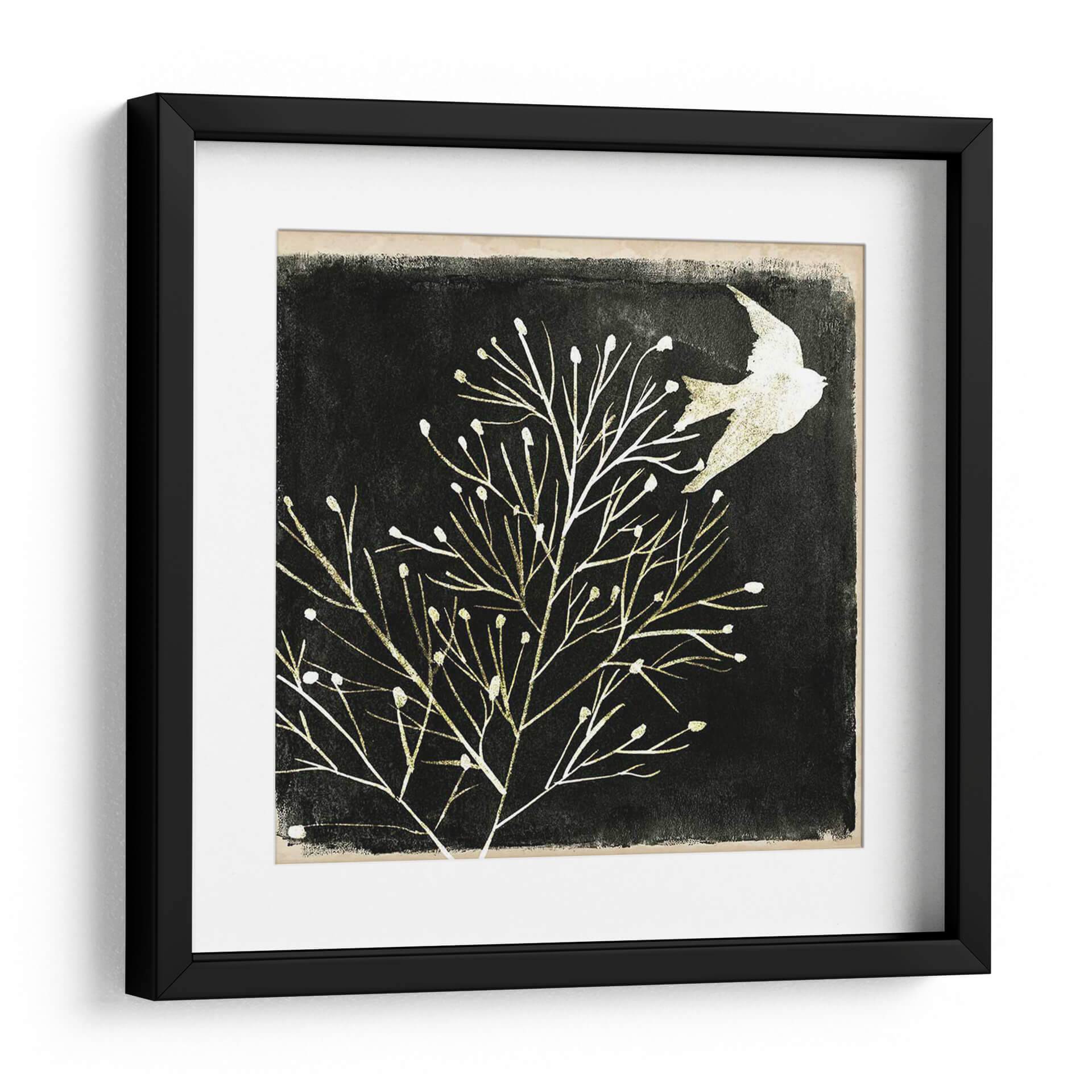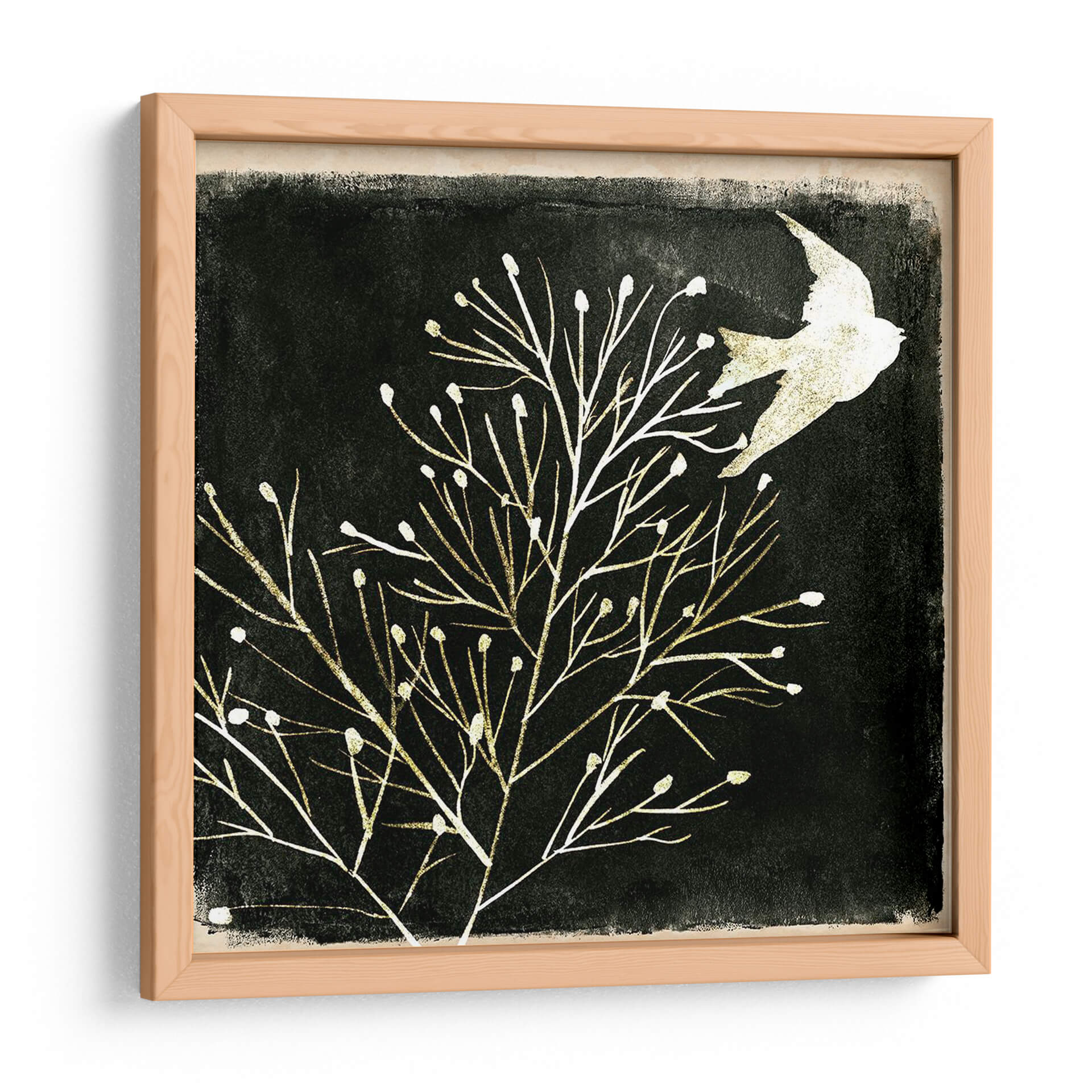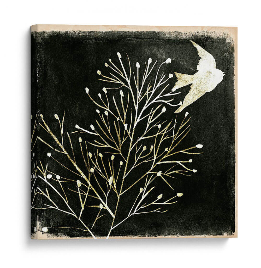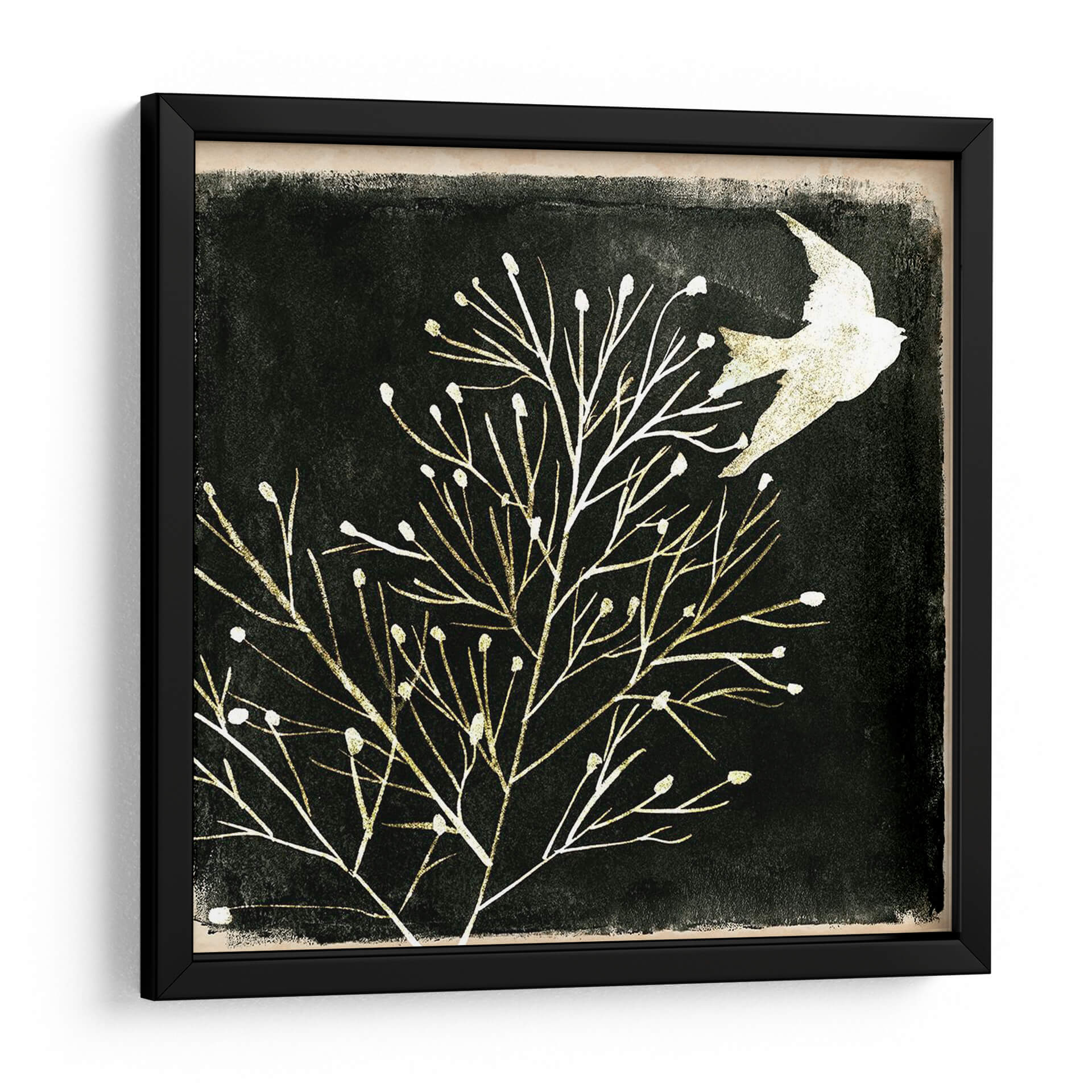 Sumérgete en la serena belleza de "Noche Negra I", una obra de arte cautivadora de Melissa Wang. Este cuadro decorativo abstracto presenta un delicado juego de ramas blancas y doradas sobre un profundo fondo negro, evocando una sensación de misterio y tranquilidad. La composición minimalista, con el vuelo elegante de un pájaro blanco como punto focal, crea un ambiente de calma y contemplación. Los sutiles toques de dorado añaden un aire de sofisticación y calidez, contrastando maravillosamente con la oscuridad circundante. Ideal para espacios que buscan un toque de naturaleza estilizada y elegancia discreta, este cuadro es perfecto para dormitorios, salas de estar o estudios, aportando una atmósfera de paz y conexión con el mundo natural. Su diseño atemporal lo convierte en una adición versátil a cualquier decoración, desde la moderna hasta la más clásica, invitando a la reflexión y a la apreciación de la sutil belleza de la vida silvestre y la flora en su máxima expresión.