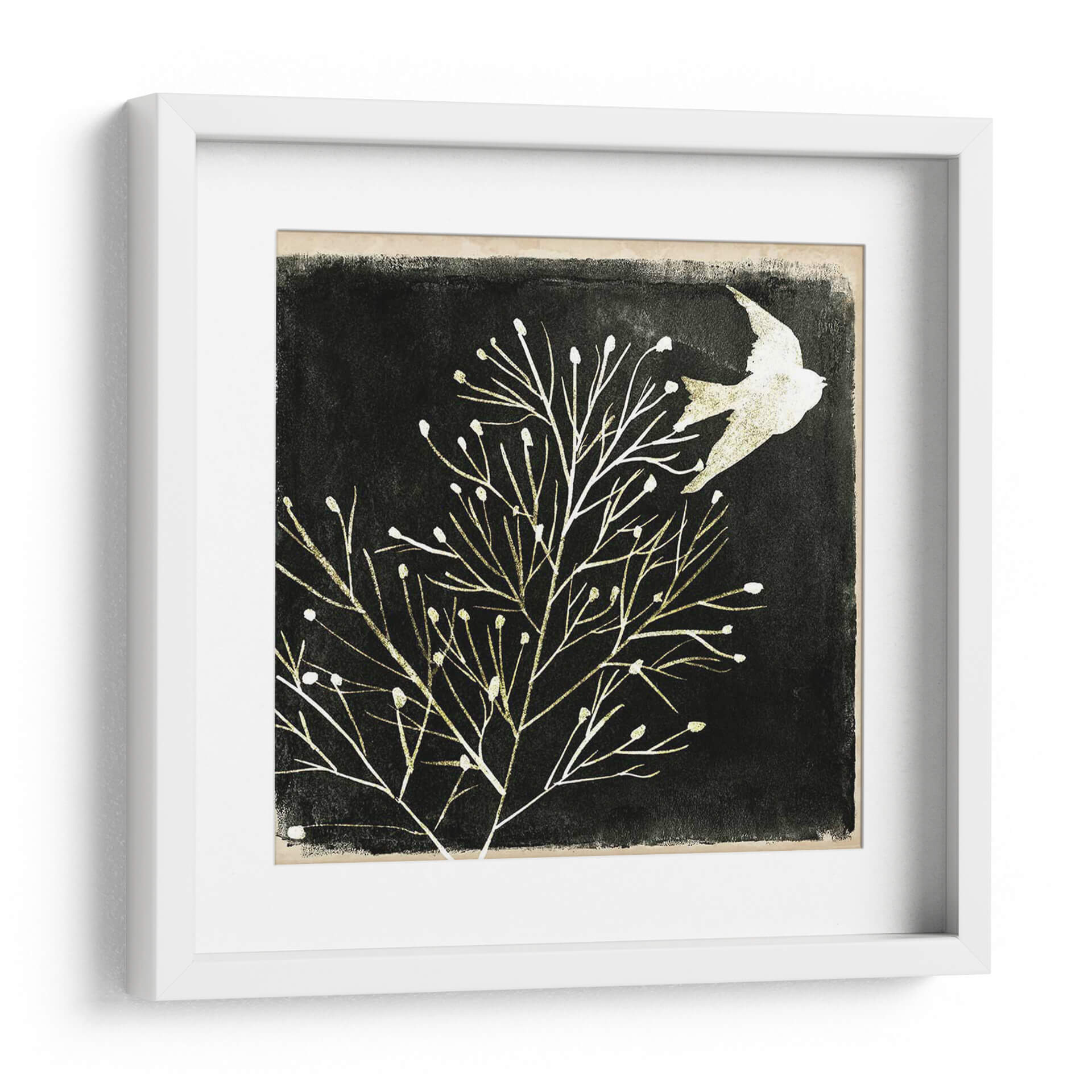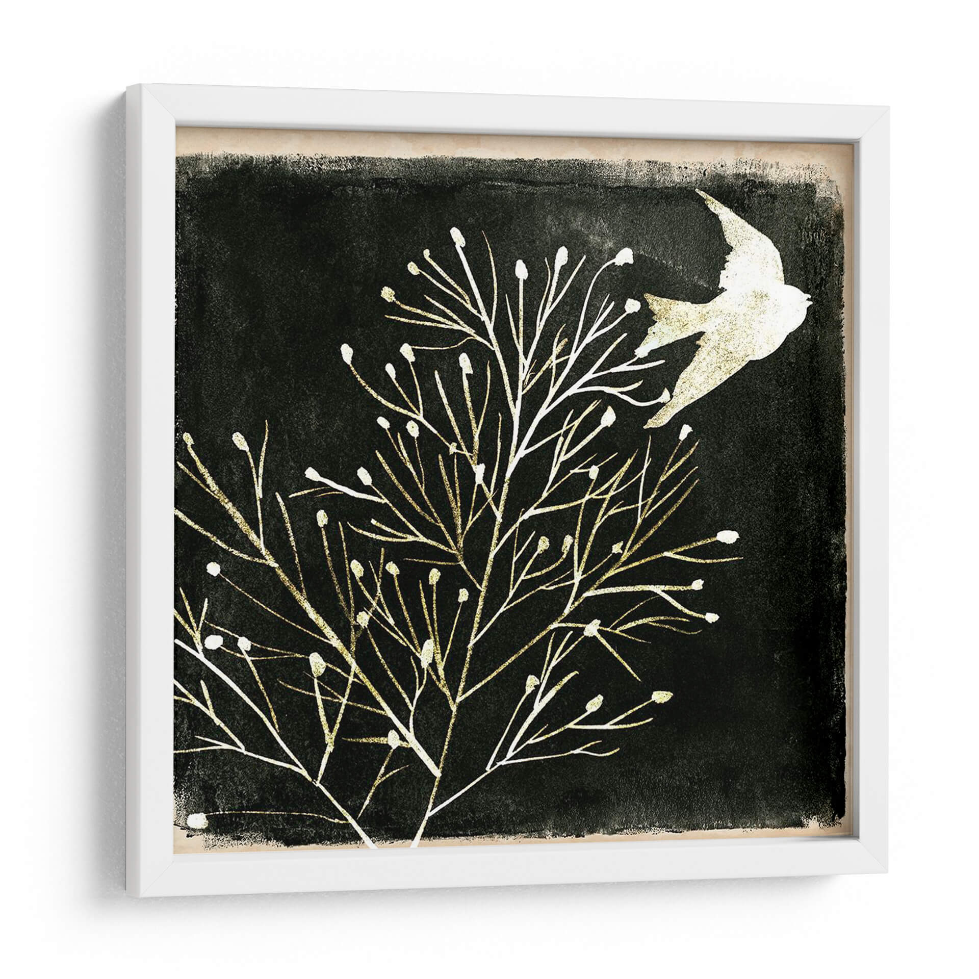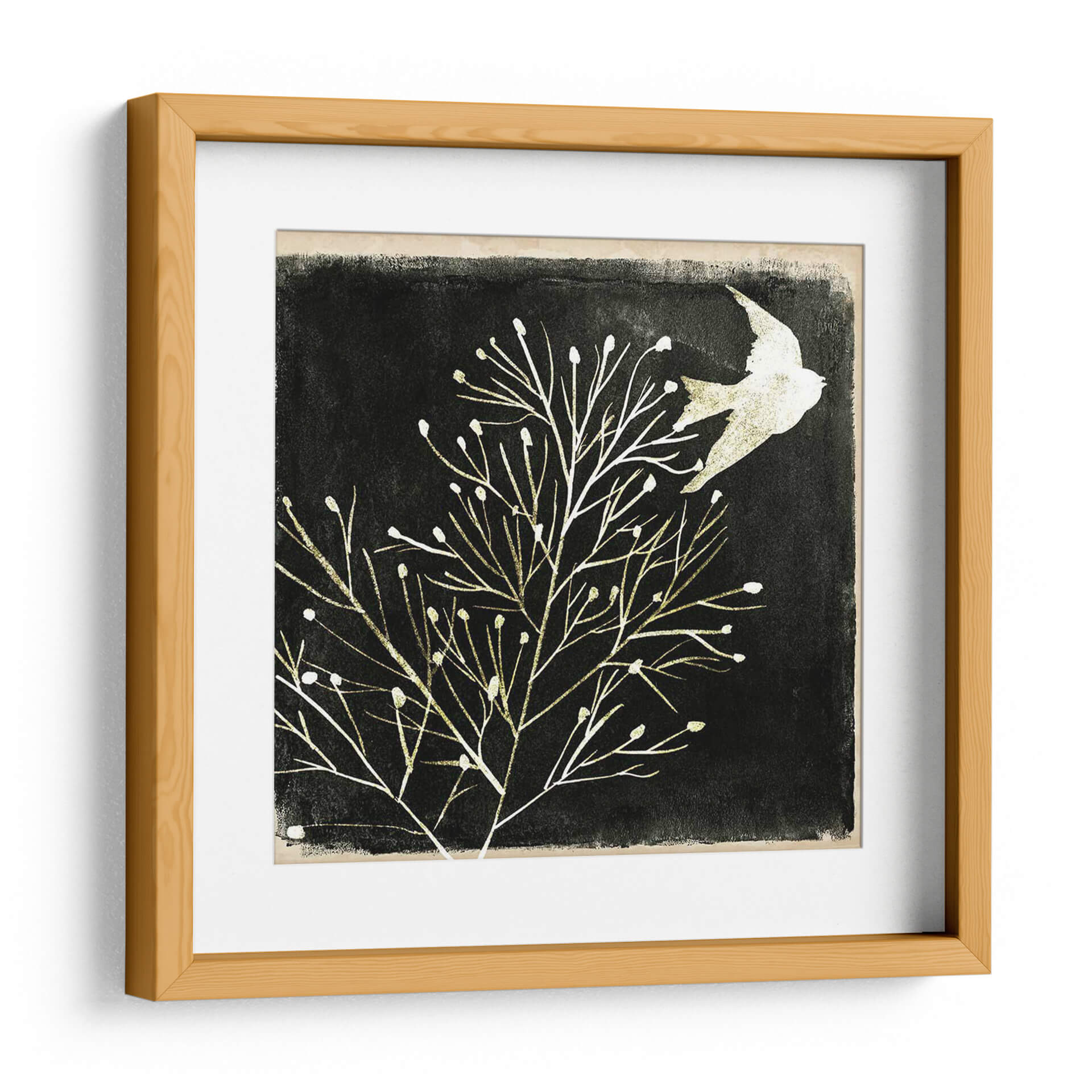 Sumérgete en la serena belleza de "Noche Negra I", una obra de arte cautivadora de Melissa Wang. Este cuadro decorativo abstracto presenta un delicado juego de ramas blancas y doradas sobre un profundo fondo negro, evocando una sensación de misterio y tranquilidad. La composición minimalista, con el vuelo elegante de un pájaro blanco como punto focal, crea un ambiente de calma y contemplación. Los sutiles toques de dorado añaden un aire de sofisticación y calidez, contrastando maravillosamente con la oscuridad circundante. Ideal para espacios que buscan un toque de naturaleza estilizada y elegancia discreta, este cuadro es perfecto para dormitorios, salas de estar o estudios, aportando una atmósfera de paz y conexión con el mundo natural. Su diseño atemporal lo convierte en una adición versátil a cualquier decoración, desde la moderna hasta la más clásica, invitando a la reflexión y a la apreciación de la sutil belleza de la vida silvestre y la flora en su máxima expresión.