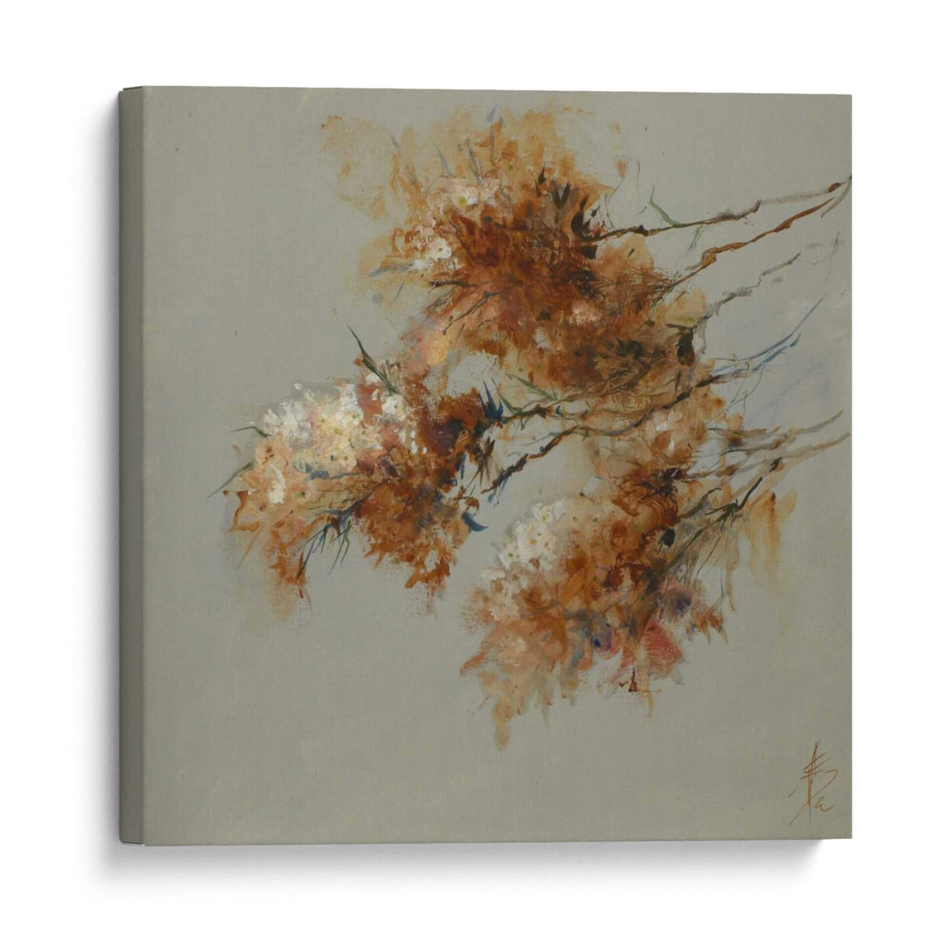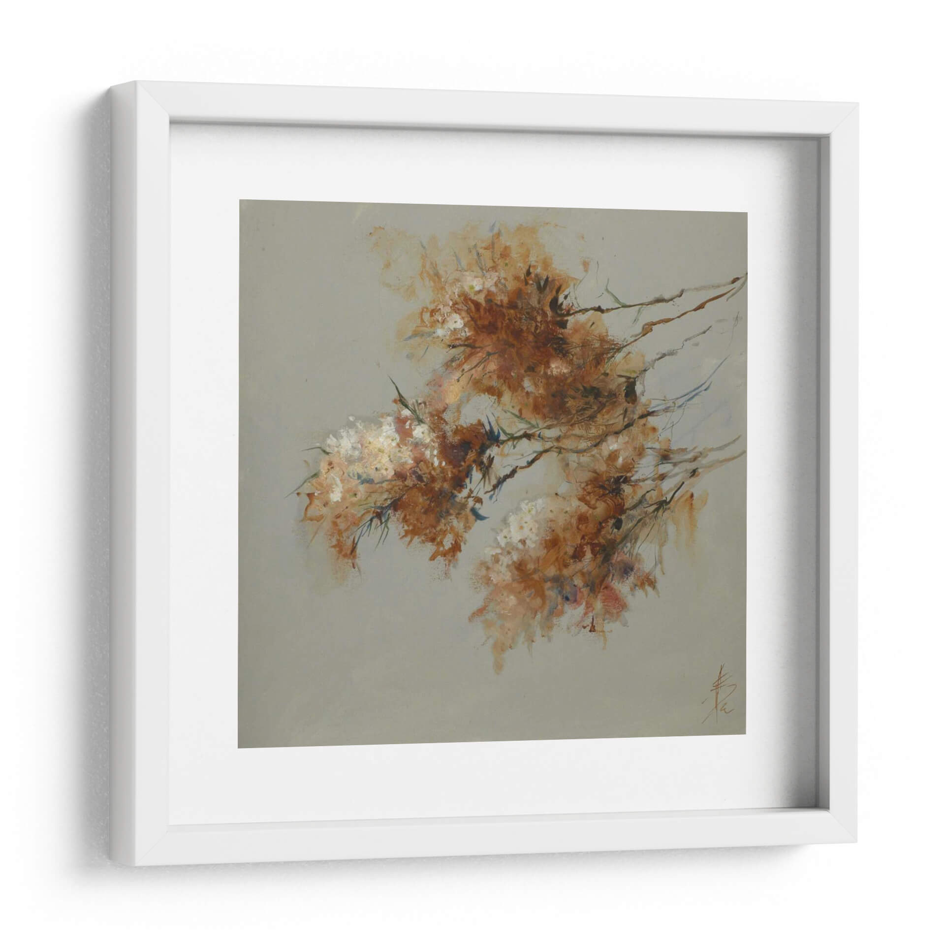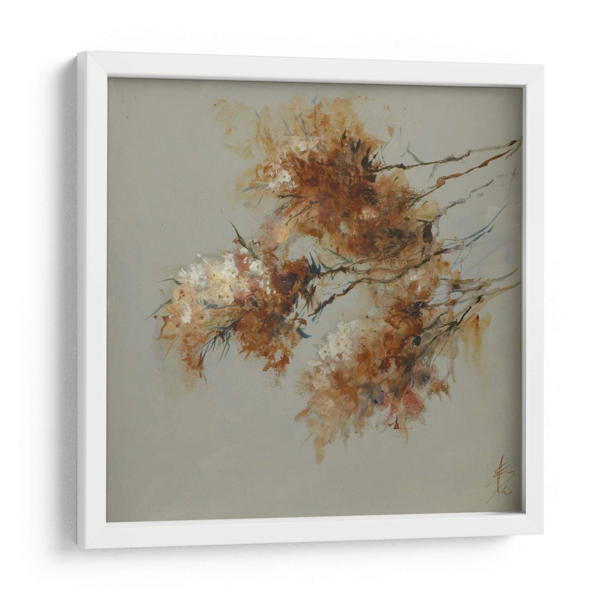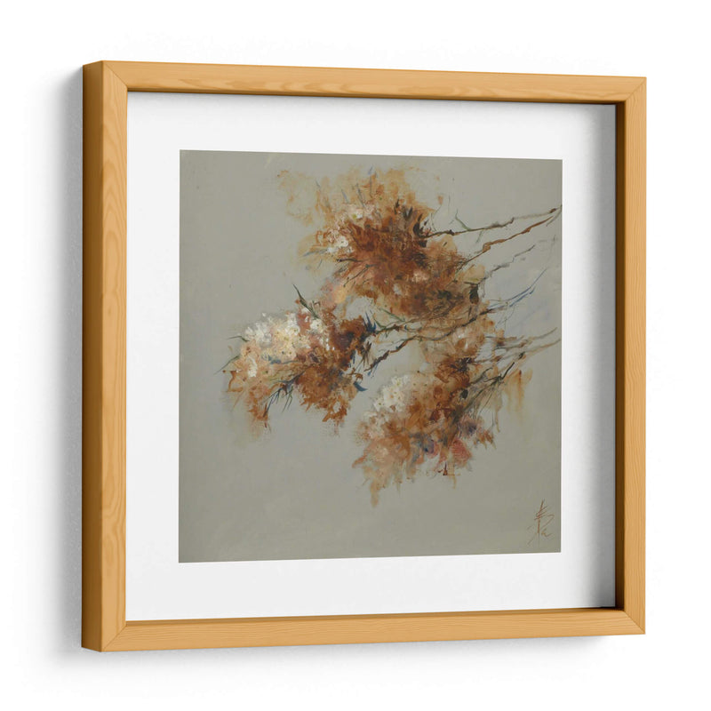 Sumérgete en la delicada belleza de "Nota Azul Iv", una obra de arte contemporáneo que captura la esencia etérea de la naturaleza con una técnica impresionista y abstracta. La pieza presenta un delicado arreglo de formas orgánicas que evocan flores o follaje, pintadas con una paleta de colores cálidos que transitan entre ocres, naranjas y toques de blanco y azul sutil. El fondo neutro, de un suave tono grisáceo, permite que los elementos centrales resalten, creando una sensación de profundidad y serenidad. La pincelada suelta y expresiva de Anne Farrall Doyle transmite movimiento y vitalidad, invitando a la contemplación. Este cuadro decorativo es ideal para añadir un toque de sofisticación y calma a cualquier espacio, ya sea una sala de estar, un dormitorio o una oficina. Su estilo abstracto pero reconocible lo convierte en una pieza versátil, capaz de complementar tanto decoraciones modernas como clásicas. "Nota Azul Iv" no es solo una adición estética, sino una invitación a sentir la delicadeza y la fuerza de la naturaleza a través del arte. Descubre cómo esta obra puede transformar tu hogar en un santuario de paz y belleza, convirtiéndose en un punto focal que inspira y eleva el espíritu, ideal para quienes buscan una conexión emocional con su entorno decorativo. Añade esta pieza única a tu colección y experimenta la sutileza del arte contemporáneo.